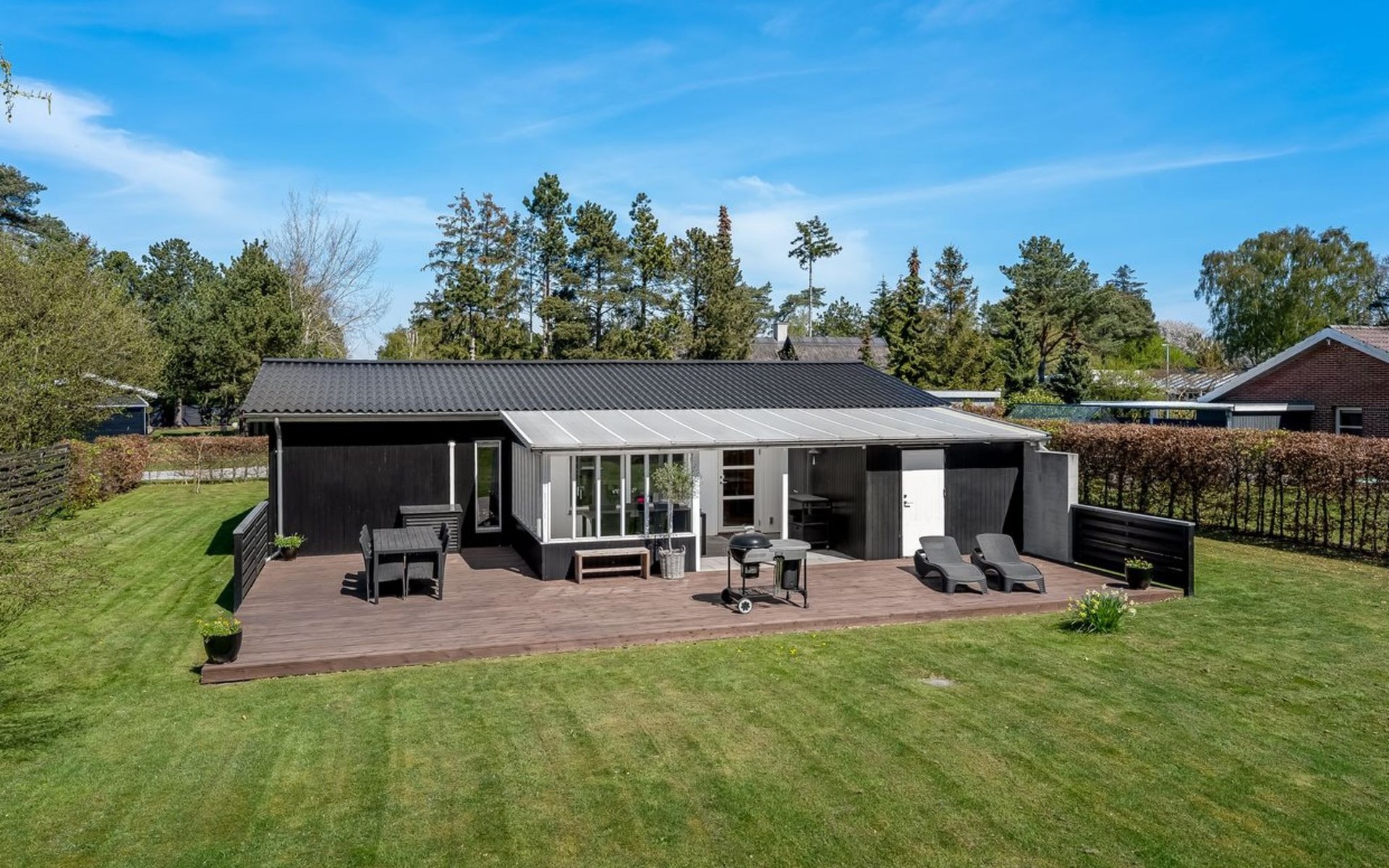 Einfamilienhaus, Baujahr 1969. 500 m vom Meer. Zur Alleinbenutzung: Grundstück 1'098 m2, gepflegter Garten. Grill. Im Hause: Waschmaschine. Parkplatz beim Haus. E-Ladestation. Lebensmittelgeschäft 1 km. Golfplatz 1.5 km. Der Besitzer akzeptiert keine Jugendgruppen.