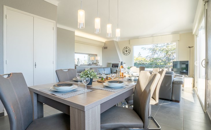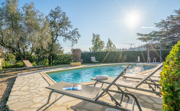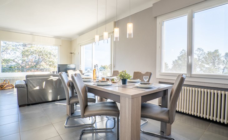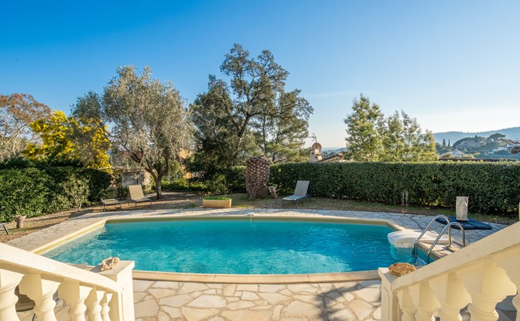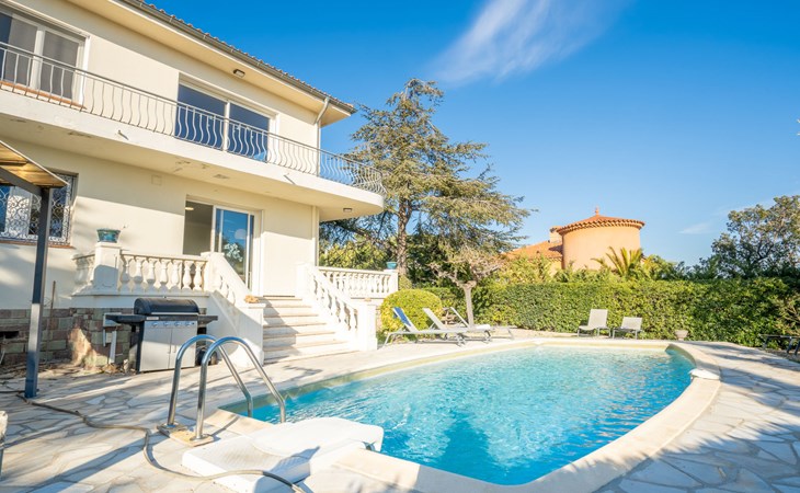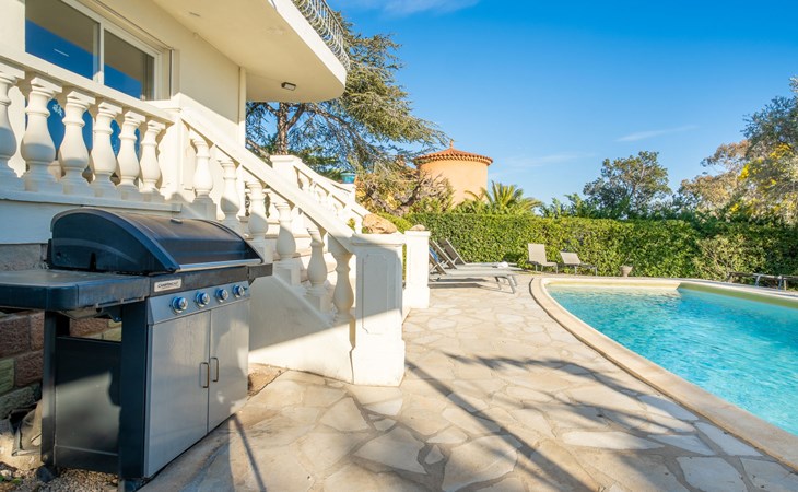 Zweifamilienhaus "Gisèle", auf 2 Stockwerken. 2.4 km vom Zentrum von Saint Aygulf, ruhige Lage in einem Wohnquartier, 1.5 km vom Meer, 3 km vom Strand. Zur Alleinbenutzung: naturbelassenes Grundstück 1'100 m2 (eingezäunt), Schwimmbad eckig (8 x 4 m, 80 - 170 cm tief, saisonale Verfügbarkeit: 15.Apr. - 15.Okt.) mit Alarmanlage. Aussendusche. Einkaufsgeschäft 2.4 km, Einkaufszentrum 7.5 km, Zentrum zu Fuss in 30 Minuten erreichbar, Bushaltestelle "Saint-Aygulf La Poste" 2.4 km, Bahnstation "Fréjus" 8.5 km, Sandstrand "Saint Aygulf" 4 km, Park "Areca" 2.6 km, Tauchzentrum 8.5 km, Thermalbad "Thalasso de Port Fréjus" 8.5 km. Sporthafen 3 km, Golfplatz (18 Loch) 11 km, Segelschule 10 km, Reitstall 4 km, Sportzentrum 2.5 km. Nahe gelegene Sehenswürdigkeiten: Aqualand, Luna Park 7 km, Fréjus 8 km, Saint Raphaël 9 km, Saint Tropez 30 km, Cannes 47 km, Nice 73 km. Bekannte Skigebiete sind gut erreichbar: Auron, Isola 2000 150 km. Bekannte Seen in der Umgebung sind gut erreichbar: Lac de St Cassien 45 km, Lac du Du Verdon 90 km. Wandergebiete: Estérel 18 km, Sentier du Littoral 2.5 km. Bitte beachten: Fahrzeug empfohlen. Der Besitzer akzeptiert keine Jugendgruppen. Die Schlüsselübergabe findet bei der Agentur Interhome in Saint Aygulf statt.