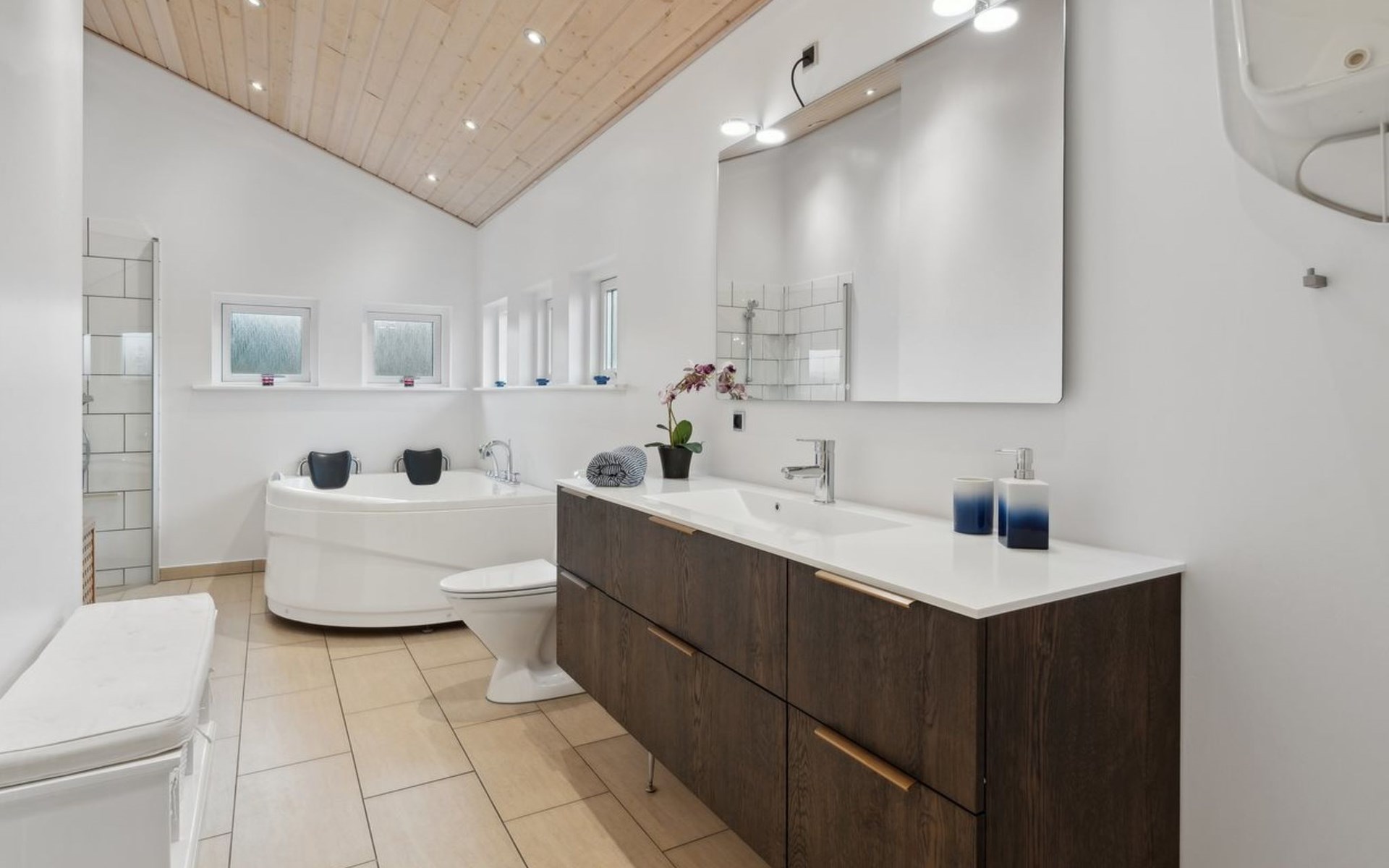 Einfamilienhaus, Baujahr 2007. 700 m vom Meer. Zur Alleinbenutzung: Grundstück 1'354 m2, gepflegter Garten. Terrasse (110 m2), Grill, Kinderspielplatz (Schaukel). Im Hause: Sauna, Waschmaschine, Wäschetrockner. Parkplatz beim Haus. E-Ladestation. Lebensmittelgeschäft 1 km. Der Besitzer akzeptiert keine Jugendgruppen.