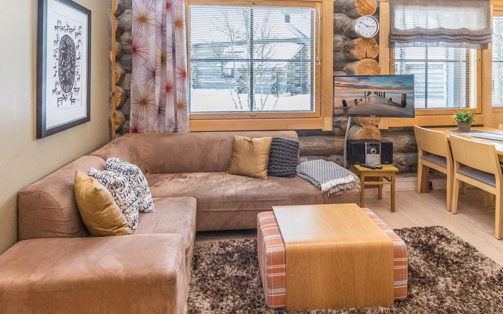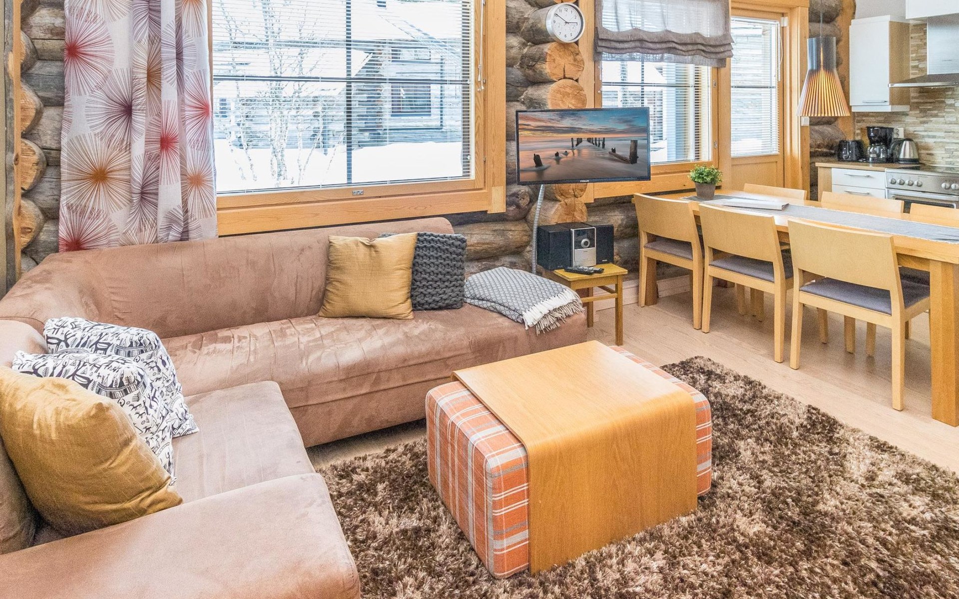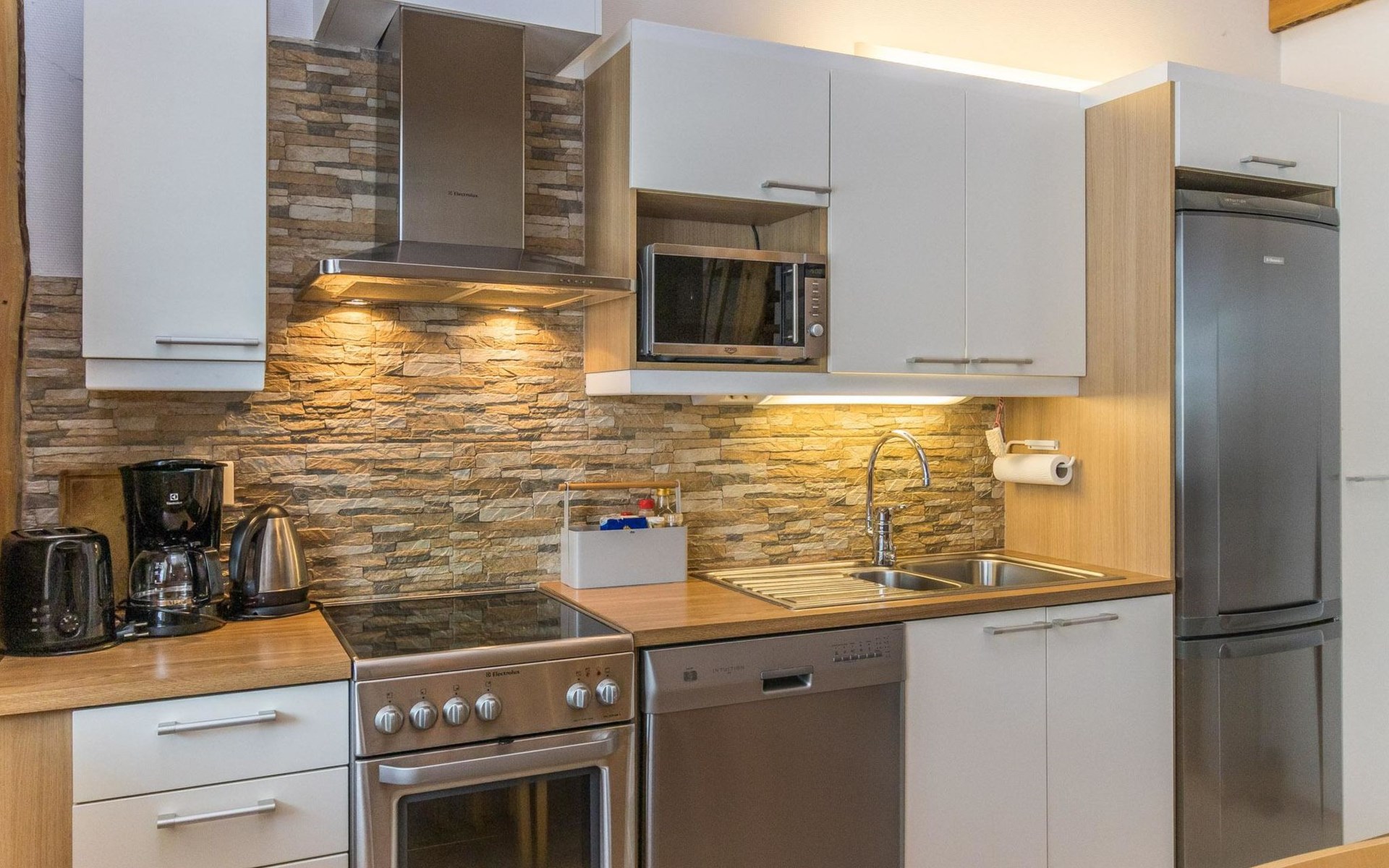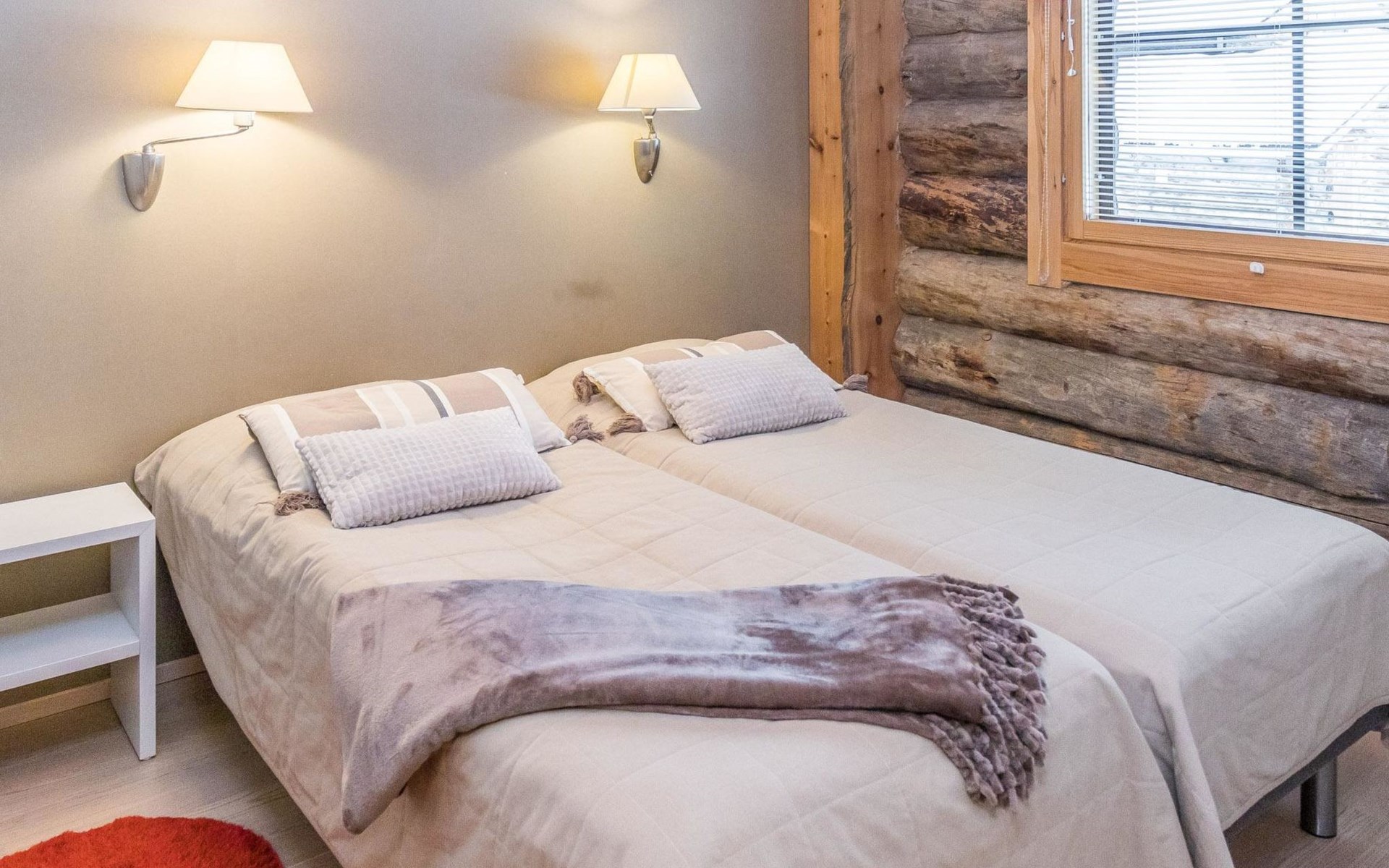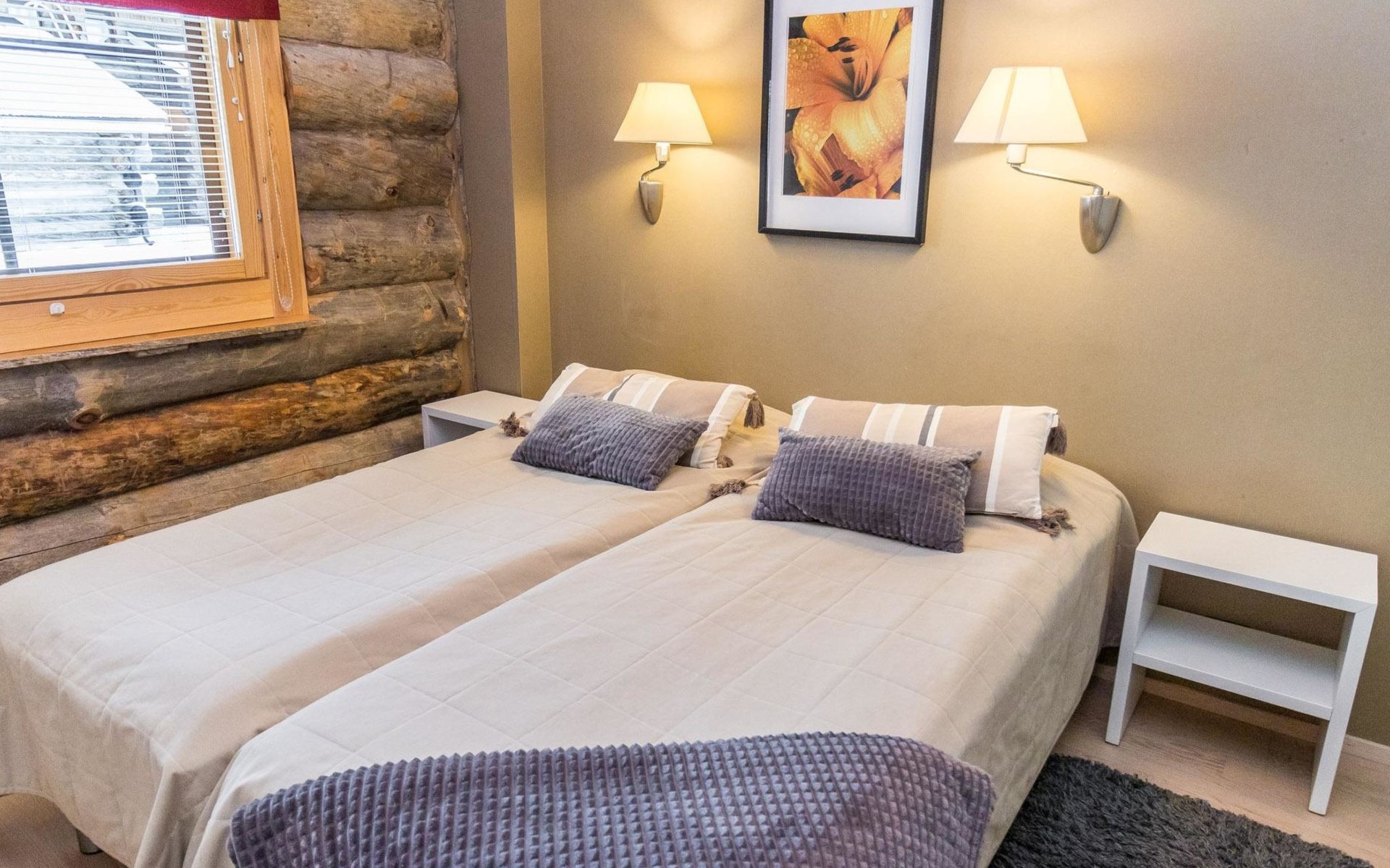 On the entrance floor there are two bedrooms, each with two beds. Additional sleeping accommodation is available on the loft, where there is an alcove with two beds. In addition to the alcove, the loft has a TV, DVD, sitting area with two beanbag chairs.
