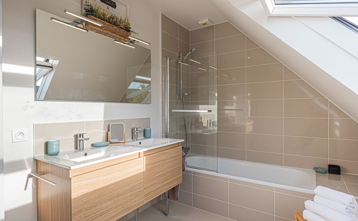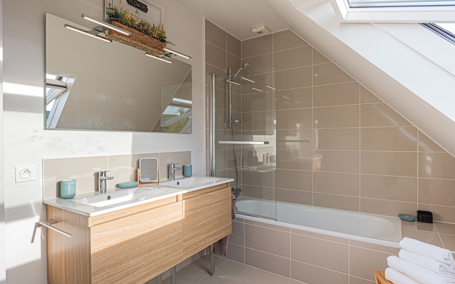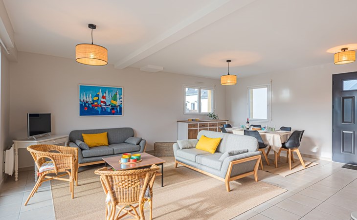 St Philibert 8 km von Carnac: Einfamilienhaus "Le Ponant", auf 2 Stockwerken, renoviert im Jahre 2020. Im Ort, 100 m vom Zentrum von Saint Philibert, in einem Wohnquartier, 800 m vom Meer, 1.9 km vom Strand. Zur Alleinbenutzung: gepflegter Garten 400 m2 (eingezäunt). Im Hause: Einstellraum für Fahrräder. Einkaufsgeschäft 100 m, Lebensmittelgeschäft, Supermarkt 2.5 km, Bäckerei 100 m, Zentrum zu Fuss in 2 Minuten erreichbar, Sandstrand "Plage de Men er Belleg" 1.9 km, Tauchzentrum 4 km, Thermalbad "Thalassothérapie Thalazur Carnac" 8 km. Sporthafen 4 km, Golfplatz (18 Loch) 15 km, Segelschule 1.9 km. Nahe gelegene Sehenswürdigkeiten: La Trinité Sur Mer 4 km, Carnac et ses alignements 8 km, Presqu'île de Quiberon 15 km, Vannes 30 km, Lorient 50 km, Belle ile en Mer, Houat, Hoedic. Wandergebiete: Le Golfe du Morbihan.