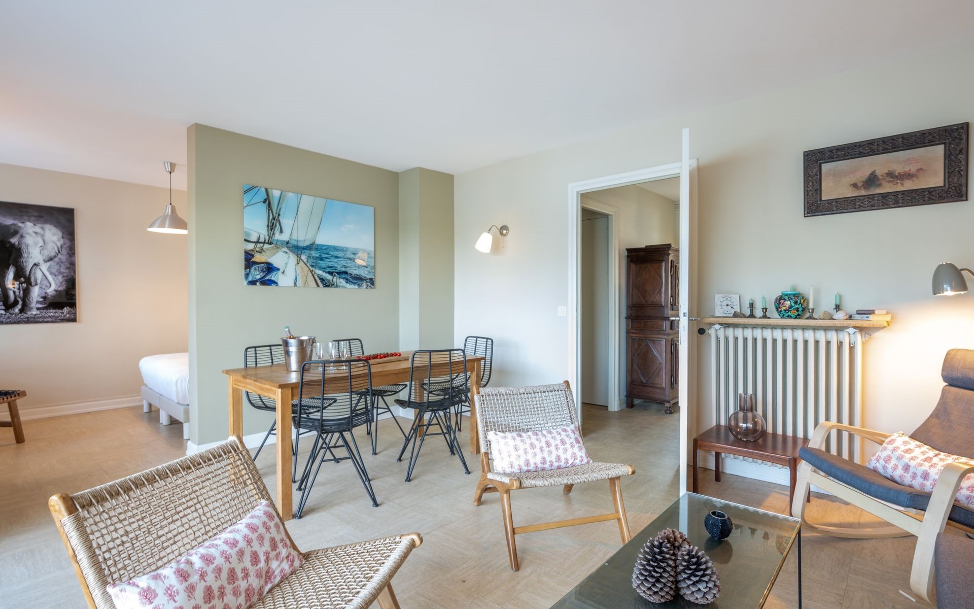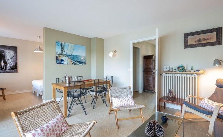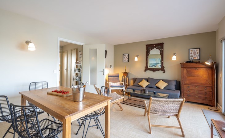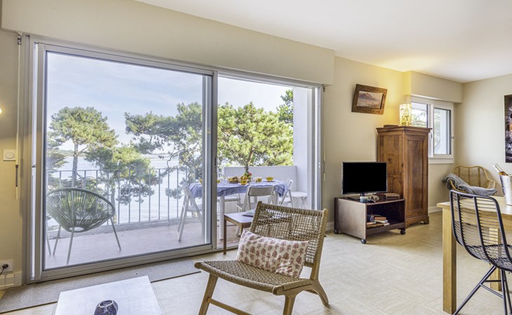 Residenz "Baie de Beaumer". In einem Wohnquartier, 50 m vom Meer, vom Strand, direkter Zugang zum Strand. Im Hause: Fahrstuhl. Parkplatz. Einkaufsgeschäft, Supermarkt, Restaurant, Café 850 m, Sandstrand "Beaumer" 20 m. Sporthafen 3.5 km, Golfplatz (18 Loch) 15 km, Segelschule 1 km. Nahe gelegene Sehenswürdigkeiten: Alignements dolmens et menhirs, Presqu'île de Quiberon 15 km, Vannes 30 km, Lorient 50 km.