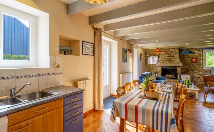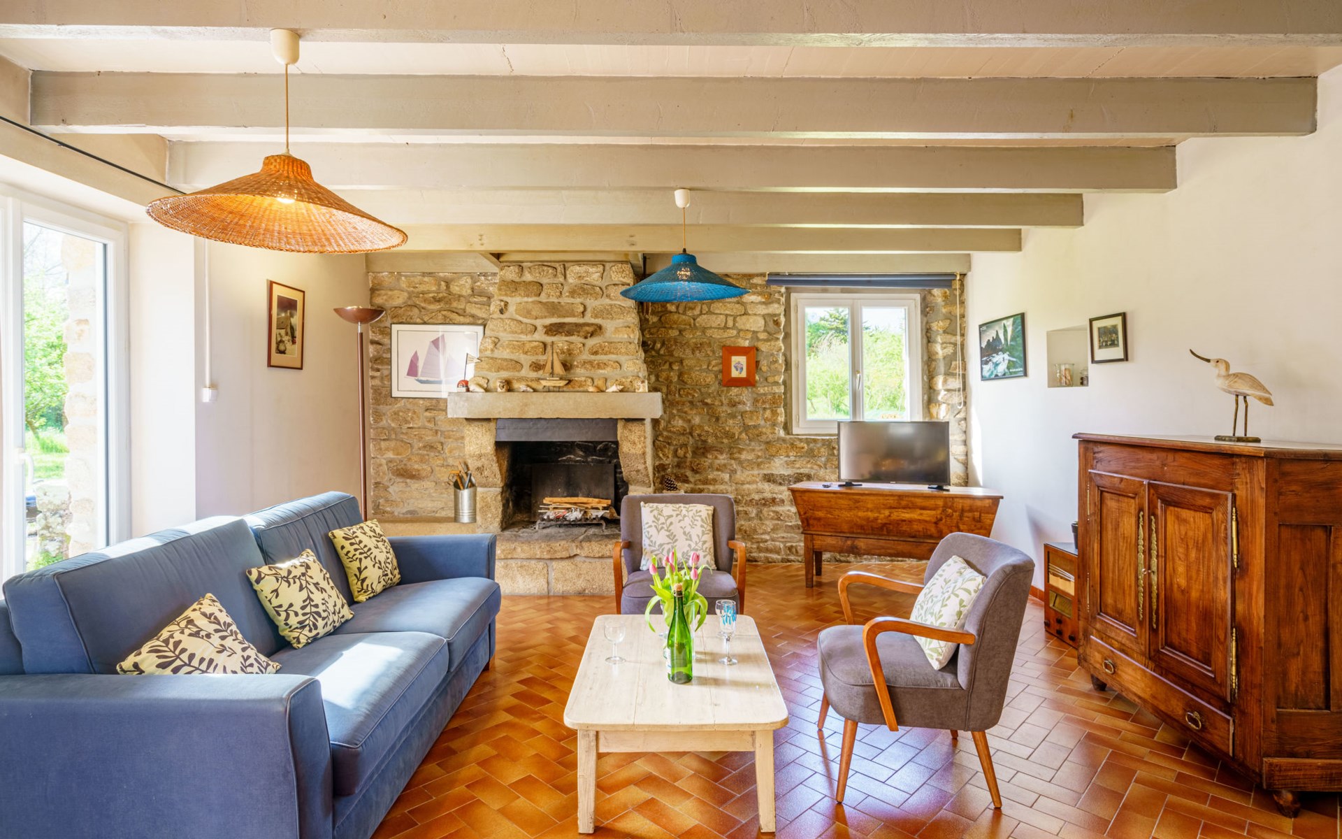 Saint Jean Trolimon 5 km von Ploneour Lanvern: Einfamilienhaus "Pen Ilis", umgeben von Wiesen. Im Ort, 4 km vom Zentrum von Pont L'Abbé, 5 km vom Meer, 5 km vom Strand, in einer Sackgasse. Zur Mitbenutzung: Obstgarten 6'000 m2, Liegewiese. Im Hause: Tischtennis. Parkplatz beim Haus. Einkaufszentrum 3 km, Bushaltestelle 4 km, Sandstrand "Baie d'Audierne" 5 km. Golfplatz (9 Loch) 15 km, Surfschule 5 km, Tennis 4 km. Nahe gelegene Sehenswürdigkeiten: Circuit VTT, Randonnées, Pointe de la Torche 8 km, Bénodet 16 km, Quimper 23 km, Douarnenez 36 km. Bitte beachten: Fahrzeug empfohlen. Der Besitzer wohnt auf dem gleichen Grundstück.