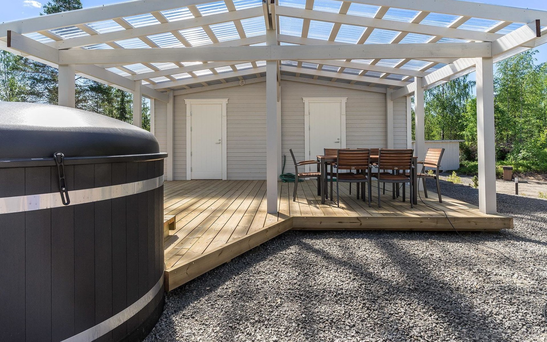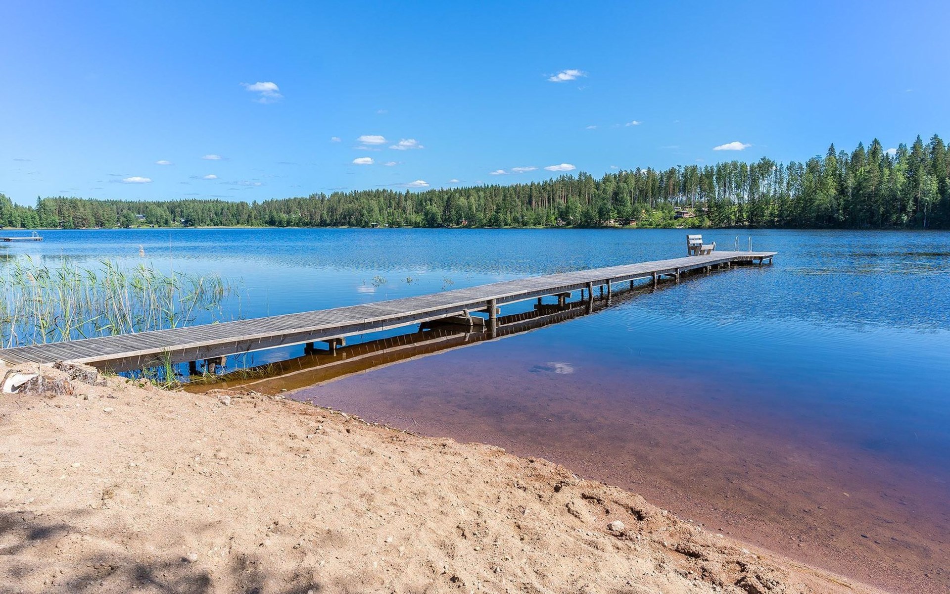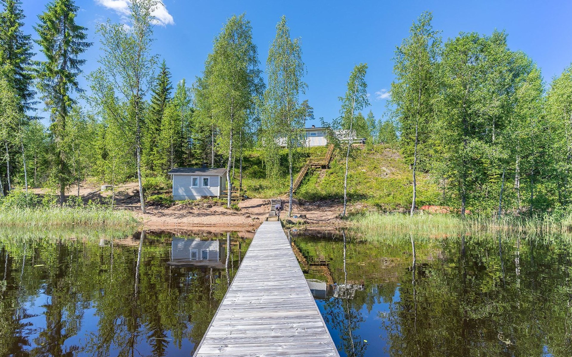 23 km nördlich von Kouvola, See Haukjärvi 25 m (Länge 1 km, Breite 0.35 km), harter Sandboden, gleichmässige Vertiefung, Anlegestelle und Ruderboot. Holzferienhaus, Baujahr 1971, renoviert 2020, Wohnküche mit klappbarem Sofa für zwei Personen, Schlafzimmer mit zwei Betten, zweites Schlafzimmer mit zwei Betten, Toilette, Waschraum und Sauna (Elektroherd). Luftwärmepumpe, WLAN-Verbindung (8 MB). Nur für den Sommergebrauch: Seeufersauna, Baujahr 1971, Holzofen, Ankleideraum, Wasser muss gebracht werden. Steile Treppe zum Seeufer. Spielzeug im Freien, Hofspiele, Lagerfeuerplatz, elektrischer Räucher auf vorherige Anfrage erhältlich. Whirlpool mit Holzofen gegen Aufpreis, kann ab 1.5. (1. Mai) bis 30.10. (October) jedes Jahr verwendet werden. Der Whirlpool kann in anderen Monaten nicht benutzt werden. Valonsäde ist ein wunderschön komplett renoviertes und neu dekoriertes altes Haus. Komfortables Ferienhaus z.B. für eine Familie oder für zwei Paare. Es gibt Gartenbereich mit Kies, Sand, Schotter, Pflanzen, keinen Rasen, aber Platz für z.B. Hofspiele. Reisebett und Hochstuhl werden auf vorherige Anfrage mitgebracht. Valkeala 13 km, erste Schneepiste in Valkeala 12 km, Reitstall Kiviharju Status 12.5 km, Aquapark 21 km, Tykkimäki 22 km, Verla 24 km, Repovesi-Nationalpark 21 km, Südostfinnlands grösstes Einkaufszentrum Veturi 27 km, KymiRing Motorsport Zentrum 36 km, Finnlands ältestes und grösstes Arboretum, Arboretum Mustila 50 km, Lahti 86 km, Mikkeli 87 km, Lappeenranta 90 km. Hinweis! Es gibt eine Kaution von € 150, die bei der Ankunft vor Ort bezahlt werden muss. Bringen Sie bitte den genauen Betrag in bar mit.