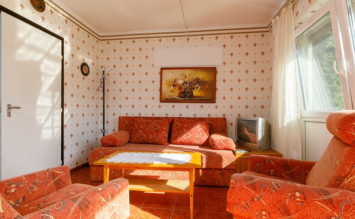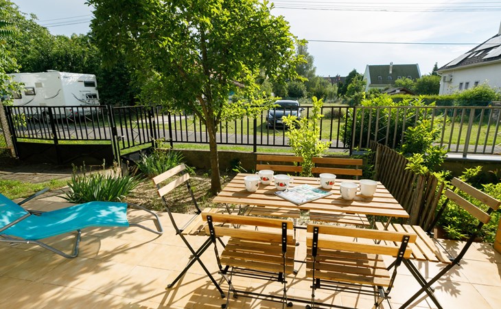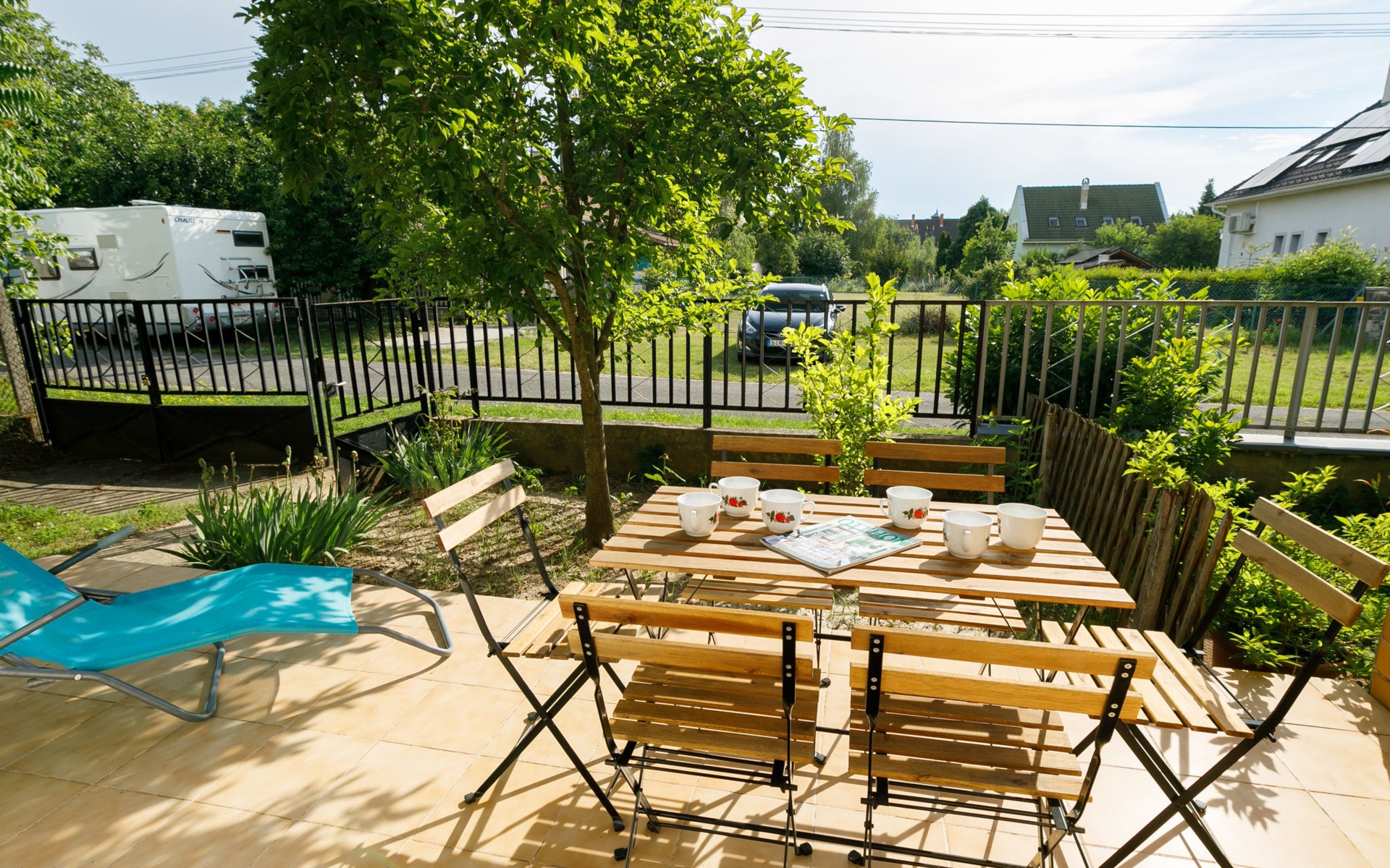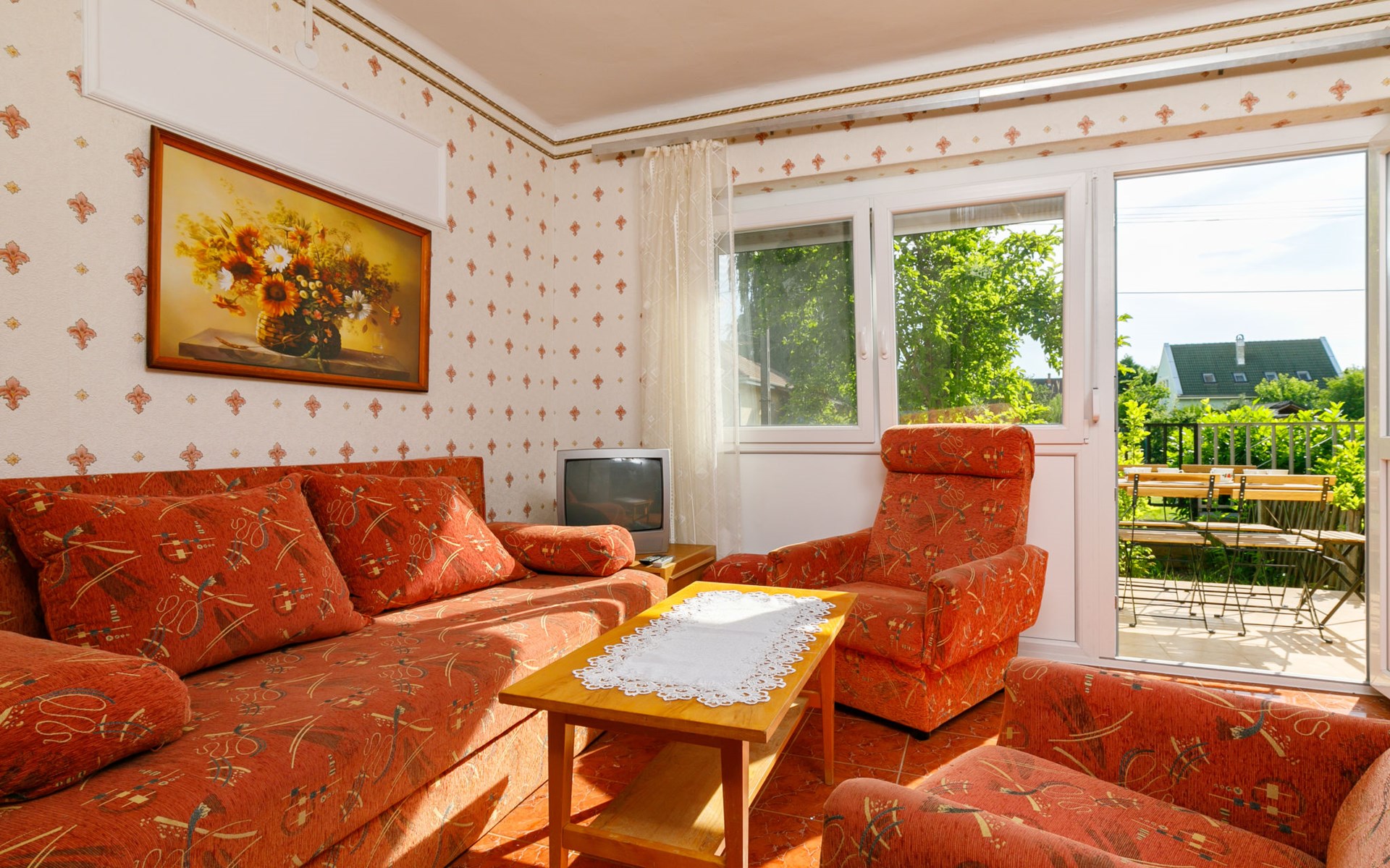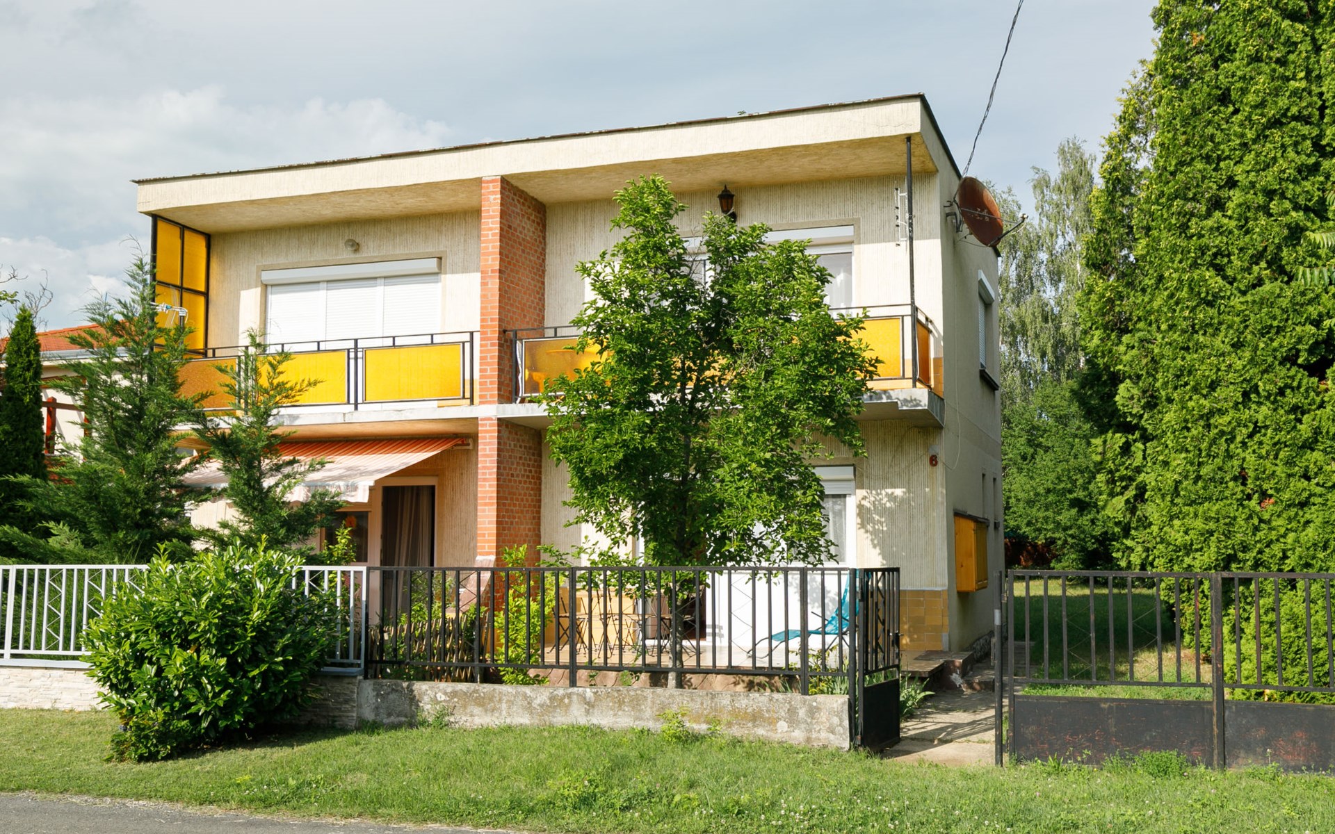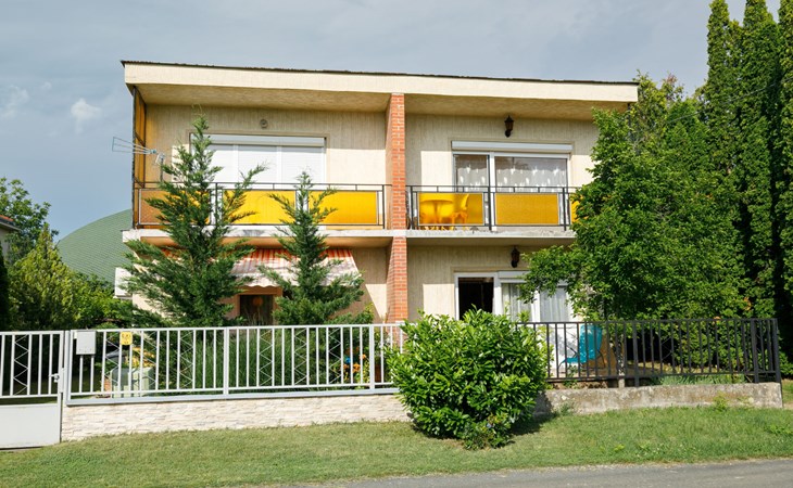 Balatonszárszó 27 km von Siófok: Doppelhaus "Palma", auf 2 Stockwerken. Im Ort, ruhige Lage, 700 m vom See, 1.6 km vom Strand. Zur Alleinbenutzung: Garten 350 m2 (eingezäunt) mit Rasen, Liegewiese. Lebensmittelgeschäft 1 km, Restaurant 500 m, Bahnstation 1 km, Grasstrand 700 m.