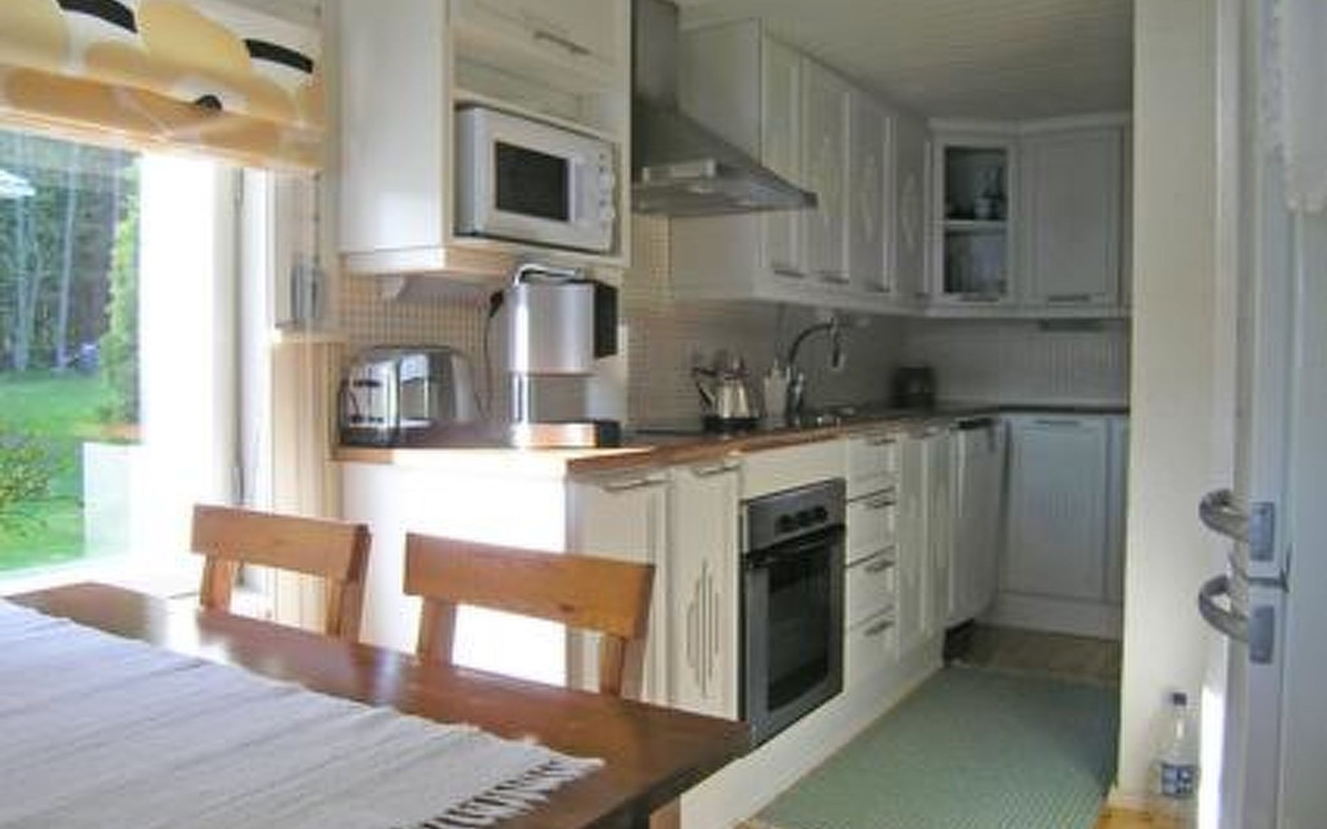 25 km südlich von Pieksämäki, Pieni-Läänä (See, Länge 1.5 km, Breite 350 m), flacher Sandboden, eigenes Boot. Holzferienhaus, Baujahr 1965, renoviert und erweitert im Jahr 2009, Wohnzimmer mit Schlafcouch für 2 Pesonen, Schlafzimmer mit je 2 Doppelbetten, Küche, Hauswirtschaftsraum mit Toilette und Waschmaschine, zwei Terrassen, Terrassenbereich. Separate Seesauna, Baujahr 1997, 20 m², Holzofen und Heiztank, Dusche (warmes und kaltes Wasser), Ankleideraum mit Kühlschrank und kleiner Bodenkeller. Überdachter Grill. Holzschuppen/Lager/Aussentoilette. Kinderstuhl und Babybett können für € 50/Woche gemietet werden. Sehr ruhiger, schöner Ort mit gutem Strand. Geeignet für eine Familie mit Kindern. Flacher Rasen, Brunnen, Schaukel und Sandkasten. Die Landstrasse führt steil hinunter bis zum Ferienhaus, Hof mit wenigen Treppen, Parkplatz mit wenigen Treppen hinunter zur Hausterrasse. See mit Zander, Felchen und Hecht. Fischreicher Maavesi-See 5 km. Angelruten, "snare rum", 2 Fahrräder udn Espressomaschine. Gute Kajak-Wasserwege, Kanu inbegriffen. Wildnisführer gegen gesonderte Gebühr verfügbar. Gutes Mountainbike-Terrain, Hütte 0.4 km, Kajak-Biber-Pfad 20 km, Varkaus 40 km, Juva 50 km, Leppävirta 55 km. Eine Woche ist die kürzerste Mietdauer.