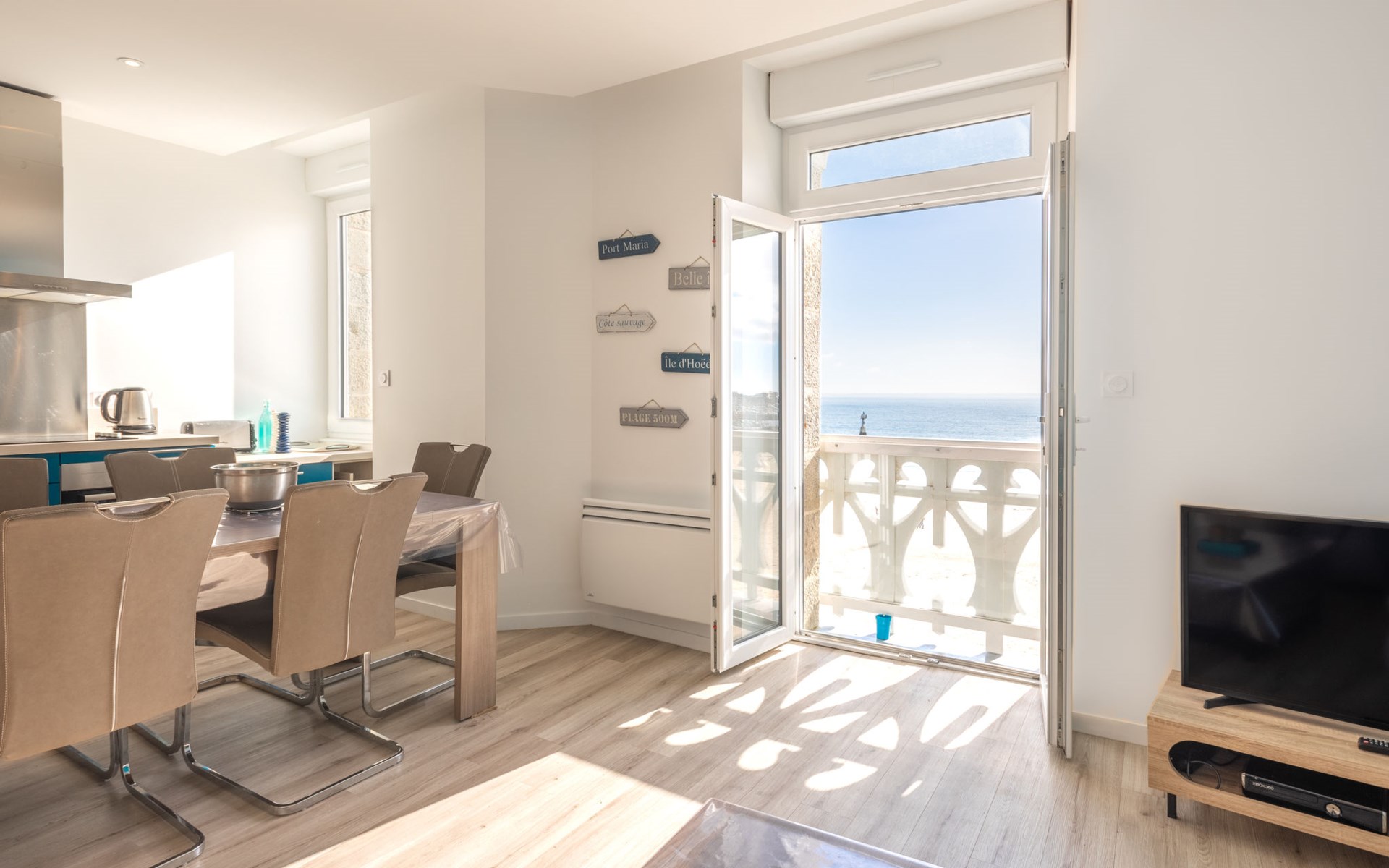 Appartementhaus "Roch Maria", 15 m.ü.M., auf 4 Stockwerken. Im Ortszentrum von Quiberon, exzellente Lage: Absolut zentral und dennoch ruhig, vom Meer, 10 m vom Strand. Öffentliche Parkplätze 100 m. Einkaufsgeschäft 10 m, Supermarkt 200 m, Restaurant 10 m, Zentrum zu Fuss in 1 Minuten erreichbar, Fähre "Embarcadere Belle Ile en Mer" 500 m, Sandstrand "Grande Plage de Quiberon" 10 m, Hallenbad 900 m, Thermalbad "Thalassothérapie de Quiberon" 1.5 km. Sporthafen 2 km, Golfplatz (9 Loch) 2 km, Surfschule 6 km, Segelschule 2 km, Tennis 2 km. Nahe gelegene Sehenswürdigkeiten: Casino 1 km, Côte sauvage et Presqu'ile de Quiberon 400 m, Belle île en Mer, Houat, Hoedic, Carnac et les Alignements 20 km, Vannes 40 km, Lorient 60 km. Wandergebiete: Le Golfe du Morbihan. Die Schlüsselübergabe findet bei der Agentur Interhome in Quiberon statt, 1 km.