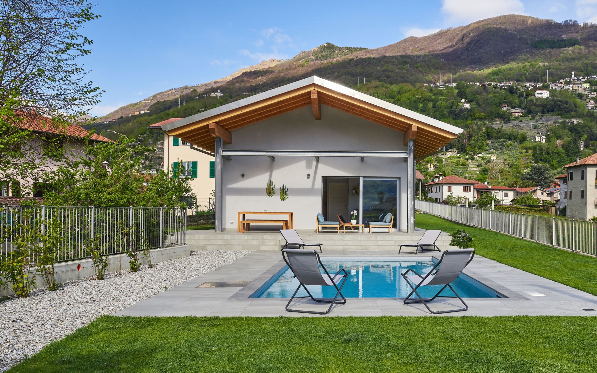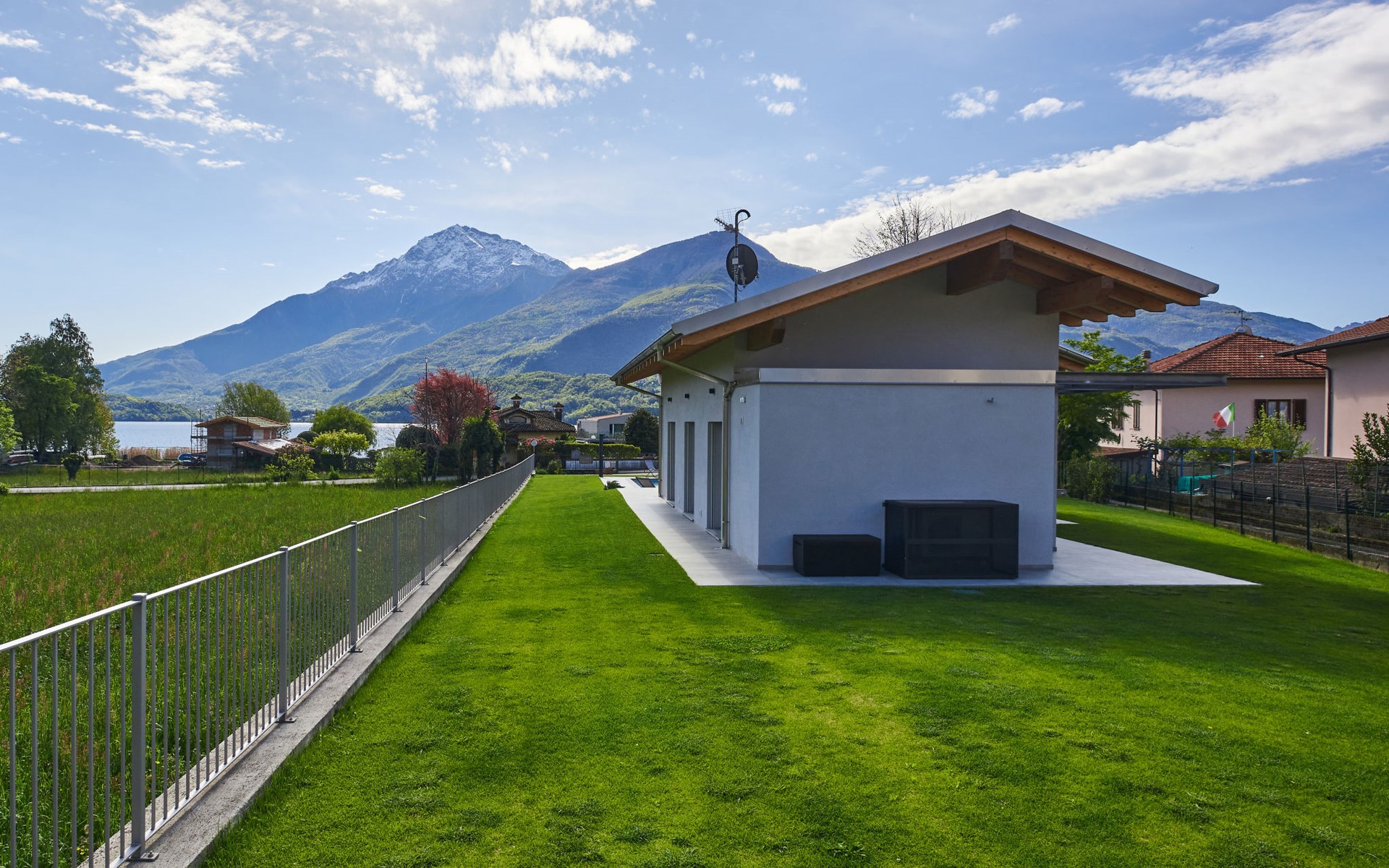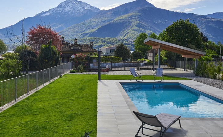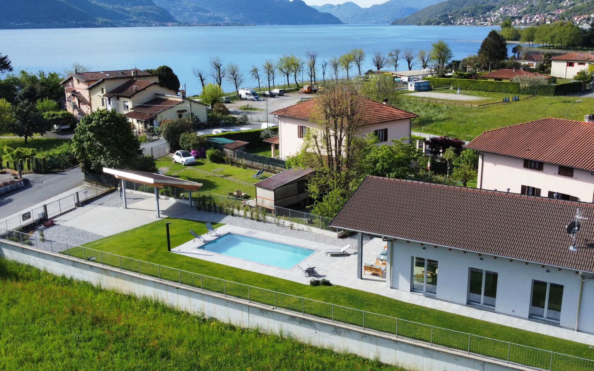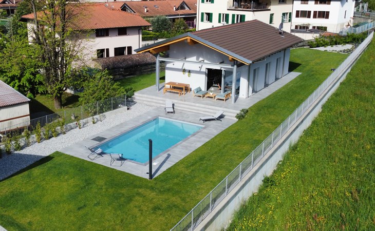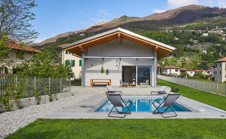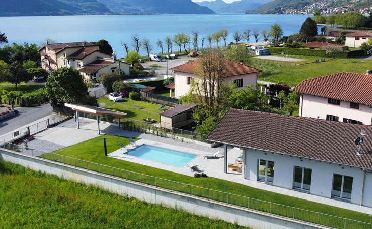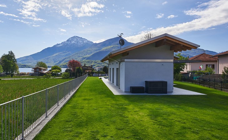 Modernes, komfortables Haus "Lusi", Baujahr 2022. 1.5 km vom Zentrum von Dongo, 50 km vom Zentrum von Como, 42 km vom Zentrum von Lugano, im Villenviertel, 80 m vom See. Zur Alleinbenutzung: Grundstück 600 m2 (eingezäunt) mit Rasen, Schwimmbad eckig (8 x 4 m, saisonale Verfügbarkeit: 01.Apr. - 01.Okt.) mit Salzelektrolyse-Reinigungssystem. Aussendusche, Poolpflege durch den Besitzer/Gärtner. Parkplatz (für 2 Autos, überdacht). Lebensmittelgeschäft 400 m, Supermarkt 1 km, Restaurant 900 m, Bar 200 m, Bäckerei 300 m, Fahrradverleih 1.6 km, Bushaltestelle "C10 Como-Menaggio-Colico" 400 m, Bahnstation "Colico" 19 km, Grasstrand 80 m, Freibad 4.5 km. Sporthafen, Jacht-Hafen 1.5 km, Golfplatz (18 Loch) 18 km, Surfschule 500 m, Segelschule 500 m, Kinderspielplatz 350 m. Nahe gelegene Sehenswürdigkeiten: Palazzo Gallio-Gravedona, Menaggio, Bellagio, Varenna. Bekannte Seen in der Umgebung sind gut erreichbar: Lago di Mezzola.
