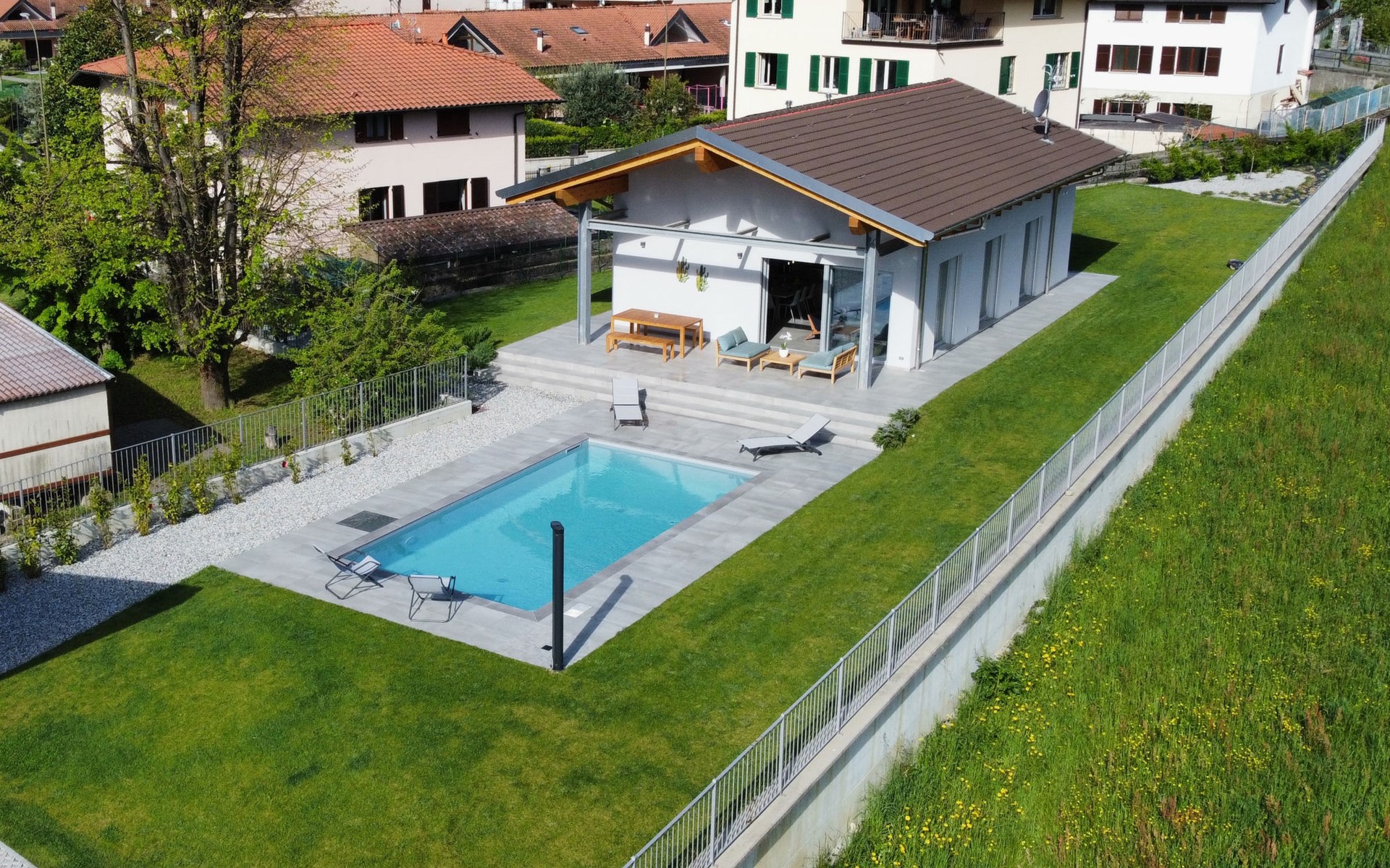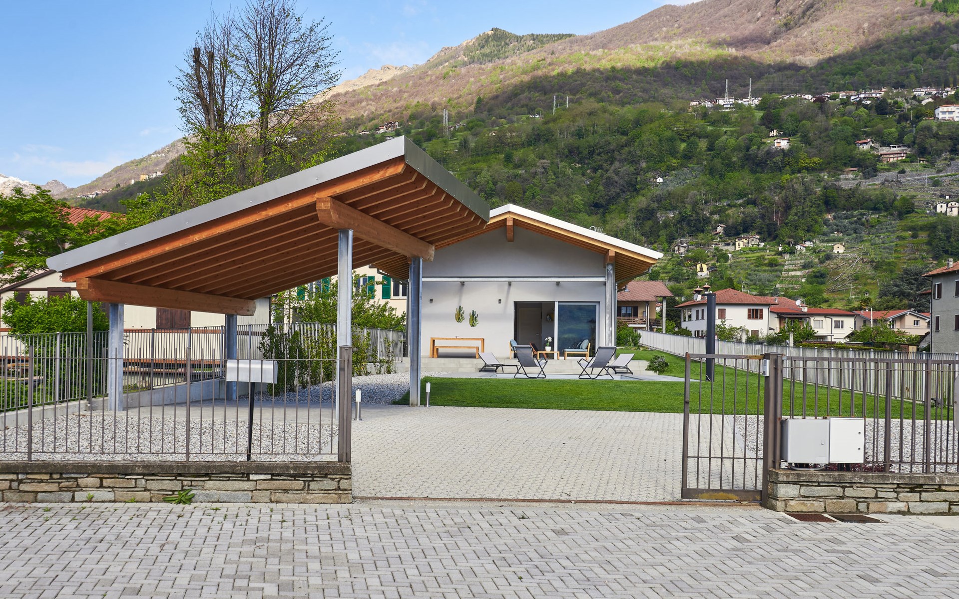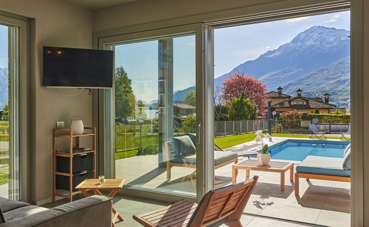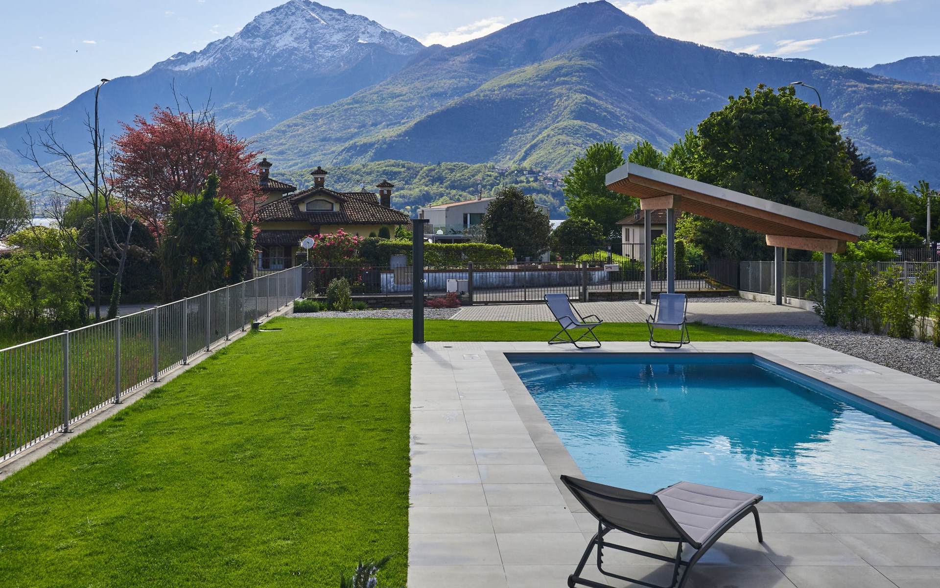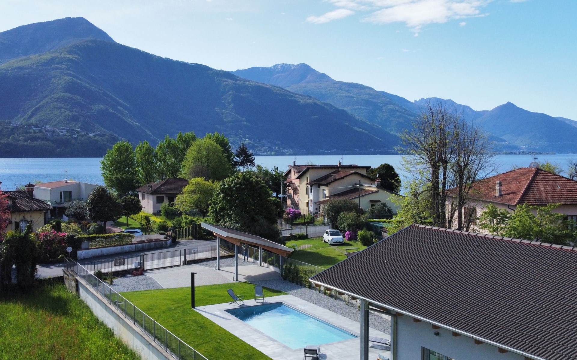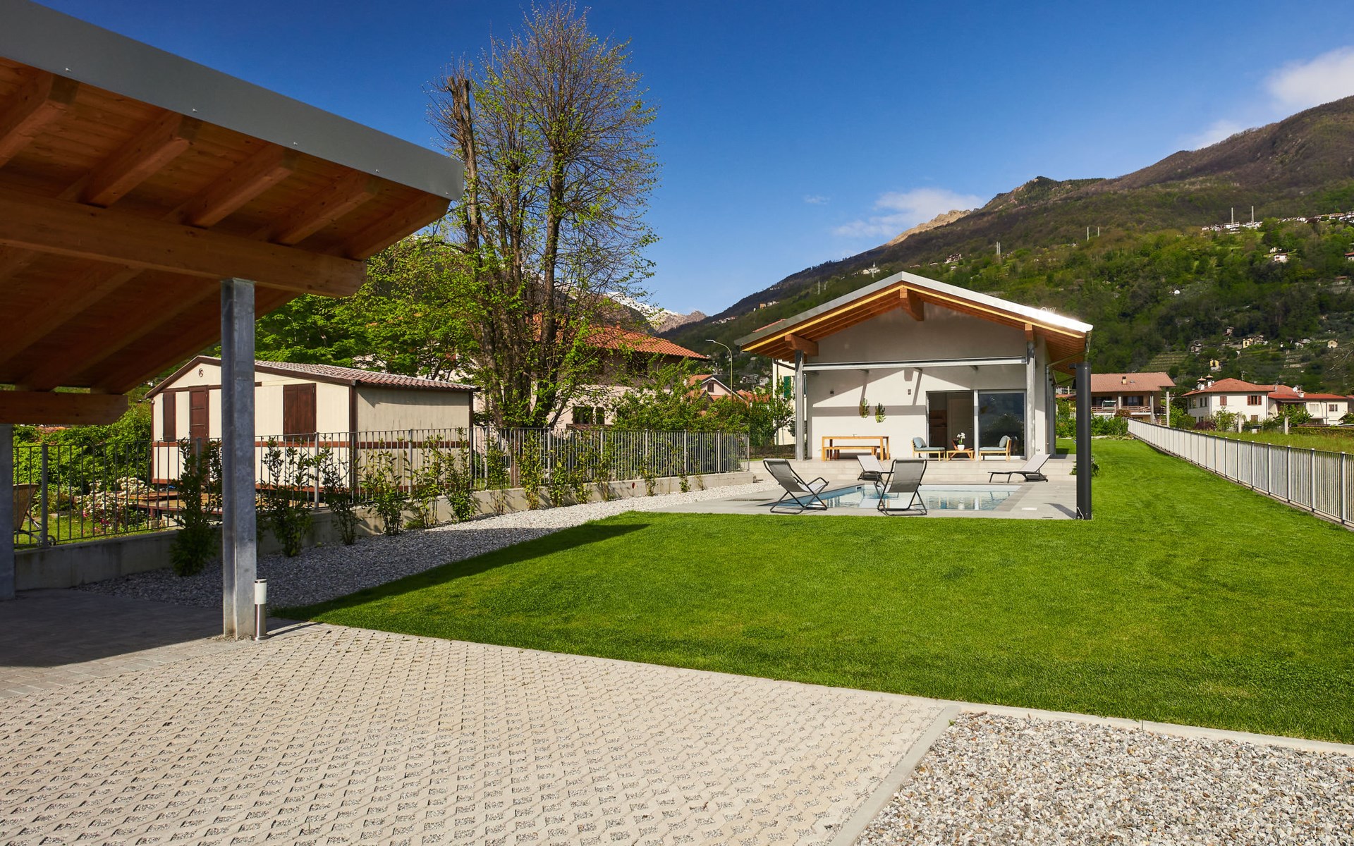 Modernes, komfortables Haus "Lusi", Baujahr 2022. 1.5 km vom Zentrum von Dongo, 50 km vom Zentrum von Como, 42 km vom Zentrum von Lugano, im Villenviertel, 80 m vom See. Zur Alleinbenutzung: Grundstück 600 m2 (eingezäunt) mit Rasen, Schwimmbad eckig (8 x 4 m, saisonale Verfügbarkeit: 01.Apr. - 01.Okt.) mit Salzelektrolyse-Reinigungssystem. Aussendusche, Poolpflege durch den Besitzer/Gärtner. Parkplatz (für 2 Autos, überdacht). Lebensmittelgeschäft 400 m, Supermarkt 1 km, Restaurant 900 m, Bar 200 m, Bäckerei 300 m, Fahrradverleih 1.6 km, Bushaltestelle "C10 Como-Menaggio-Colico" 400 m, Bahnstation "Colico" 19 km, Grasstrand 80 m, Freibad 4.5 km. Sporthafen, Jacht-Hafen 1.5 km, Golfplatz (18 Loch) 18 km, Surfschule 500 m, Segelschule 500 m, Kinderspielplatz 350 m. Nahe gelegene Sehenswürdigkeiten: Palazzo Gallio-Gravedona, Menaggio, Bellagio, Varenna. Bekannte Seen in der Umgebung sind gut erreichbar: Lago di Mezzola.