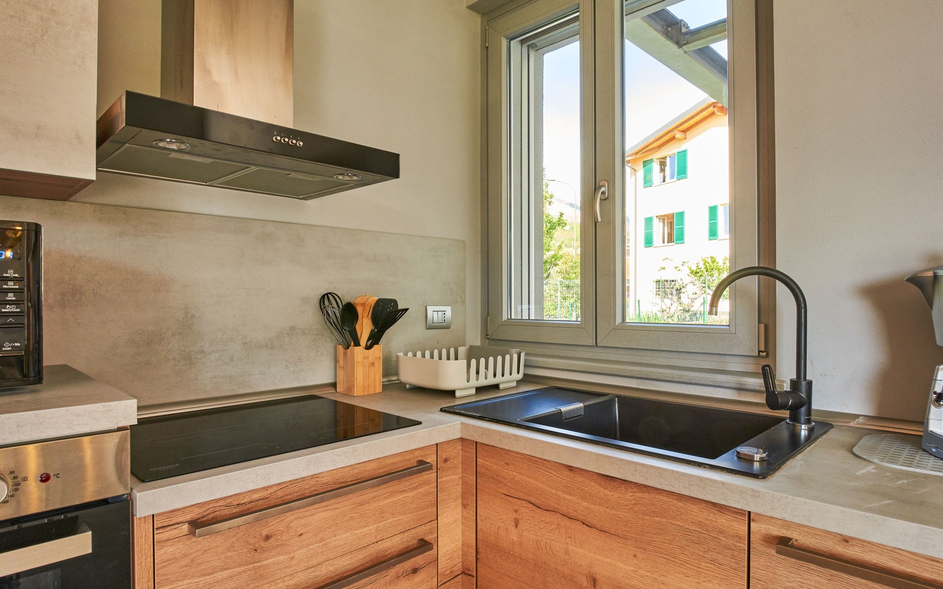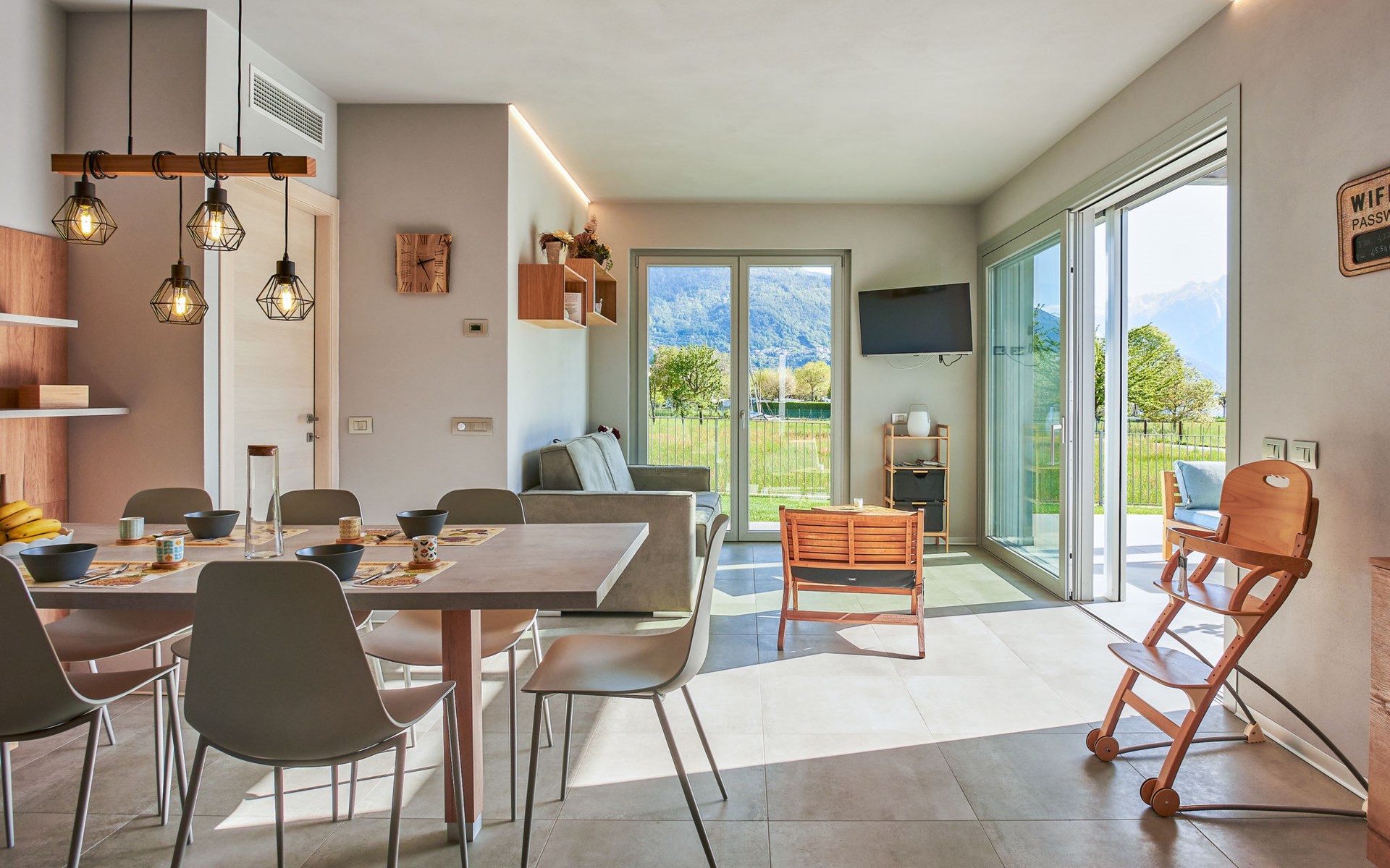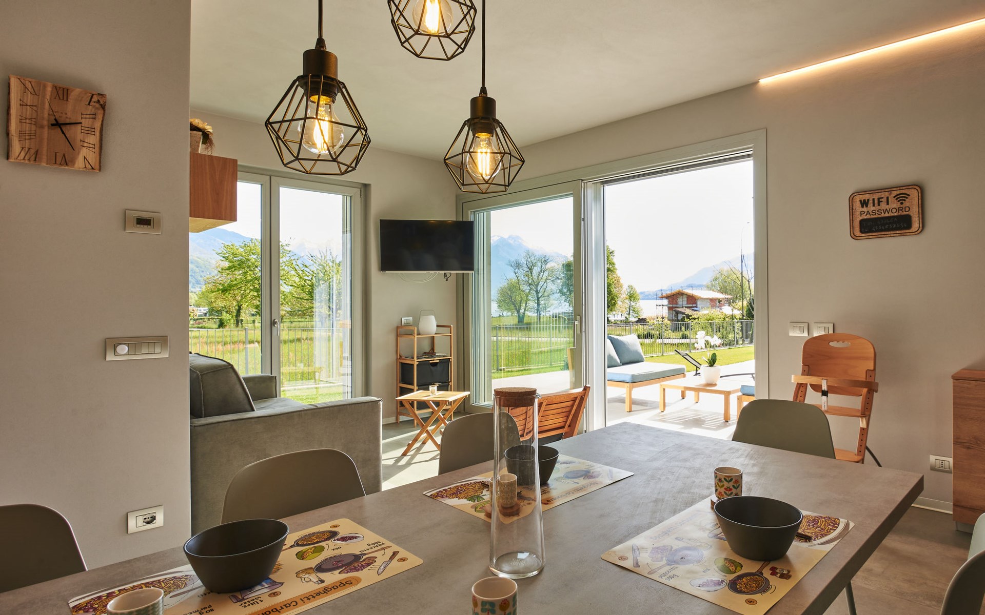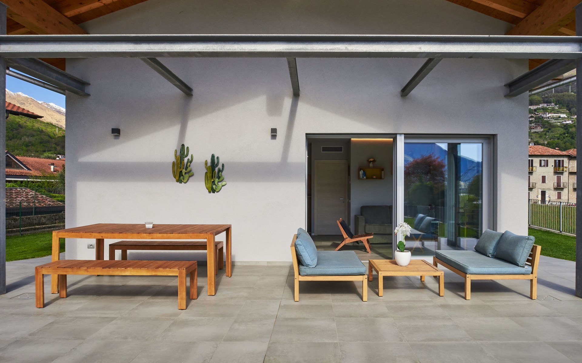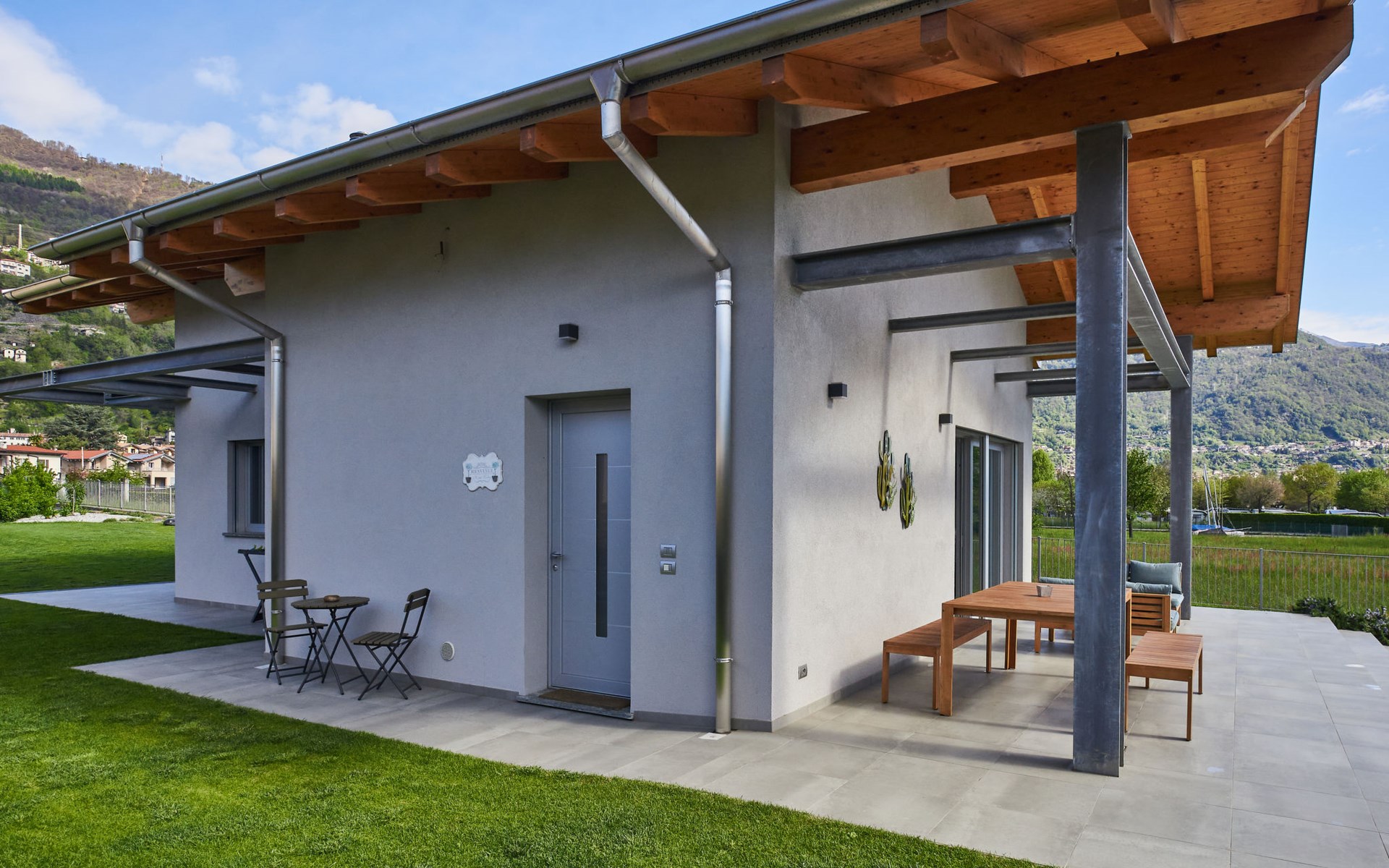 Modernes, komfortables Haus "Lusi", Baujahr 2022. 1.5 km vom Zentrum von Dongo, 50 km vom Zentrum von Como, 42 km vom Zentrum von Lugano, im Villenviertel, 80 m vom See. Zur Alleinbenutzung: Grundstück 600 m2 (eingezäunt) mit Rasen, Schwimmbad eckig (8 x 4 m, saisonale Verfügbarkeit: 01.Apr. - 01.Okt.) mit Salzelektrolyse-Reinigungssystem. Aussendusche, Poolpflege durch den Besitzer/Gärtner. Parkplatz (für 2 Autos, überdacht). Lebensmittelgeschäft 400 m, Supermarkt 1 km, Restaurant 900 m, Bar 200 m, Bäckerei 300 m, Fahrradverleih 1.6 km, Bushaltestelle "C10 Como-Menaggio-Colico" 400 m, Bahnstation "Colico" 19 km, Grasstrand 80 m, Freibad 4.5 km. Sporthafen, Jacht-Hafen 1.5 km, Golfplatz (18 Loch) 18 km, Surfschule 500 m, Segelschule 500 m, Kinderspielplatz 350 m. Nahe gelegene Sehenswürdigkeiten: Palazzo Gallio-Gravedona, Menaggio, Bellagio, Varenna. Bekannte Seen in der Umgebung sind gut erreichbar: Lago di Mezzola.