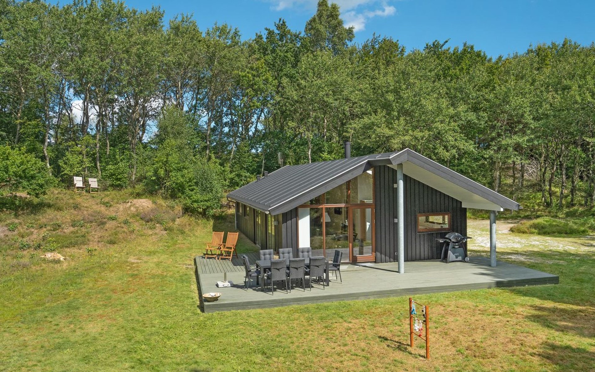 Einfamilienhaus, Baujahr 2006. 750 m vom Meer. Zur Alleinbenutzung: naturbelassenes Grundstück 11'000 m2. Terrasse (60 m2), Grill. Im Hause: Waschmaschine, Wäschetrockner. Parkplatz beim Haus. Lebensmittelgeschäft 1.2 km. Der Besitzer akzeptiert keine Jugendgruppen.