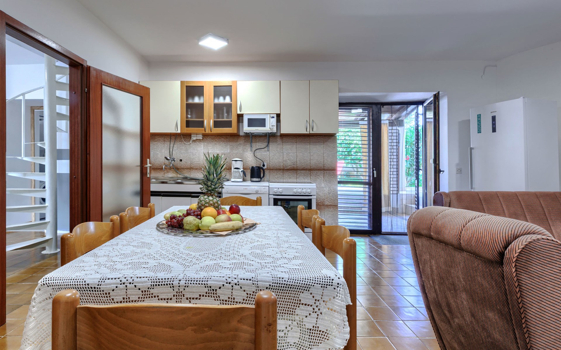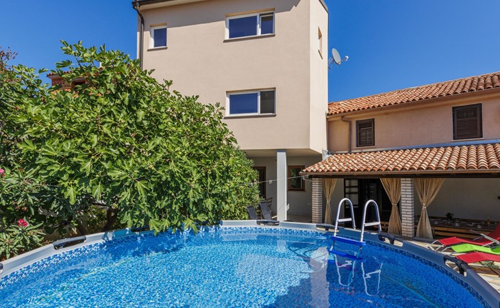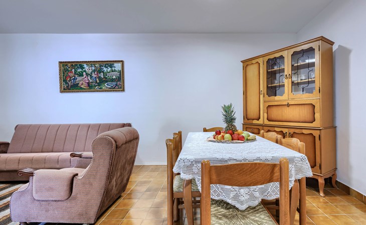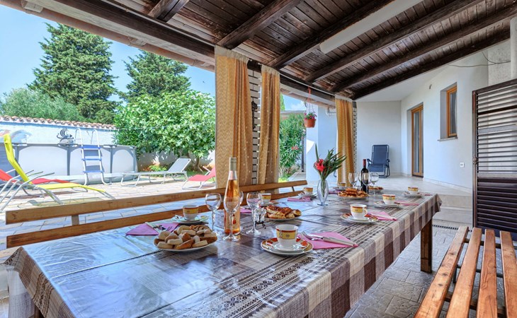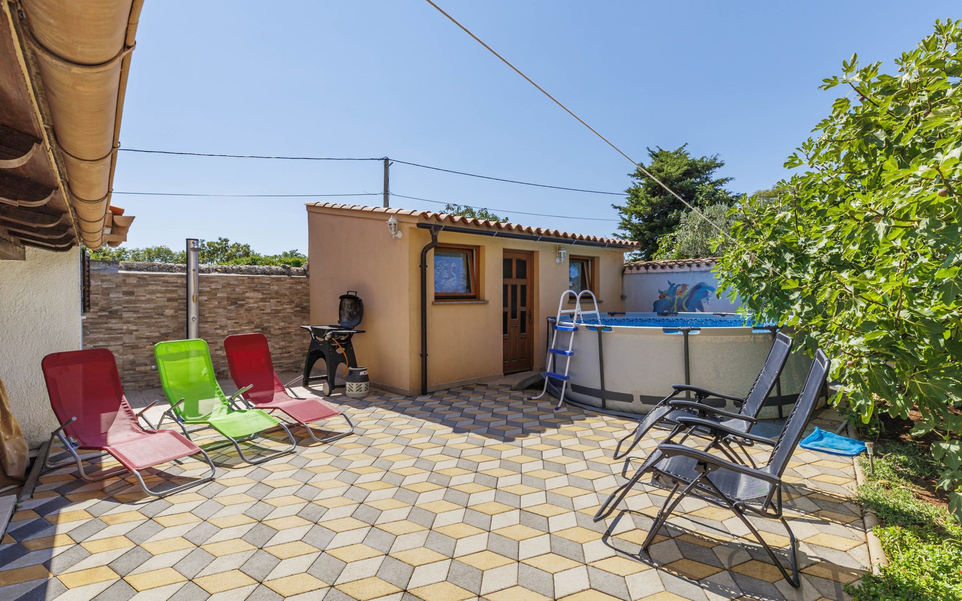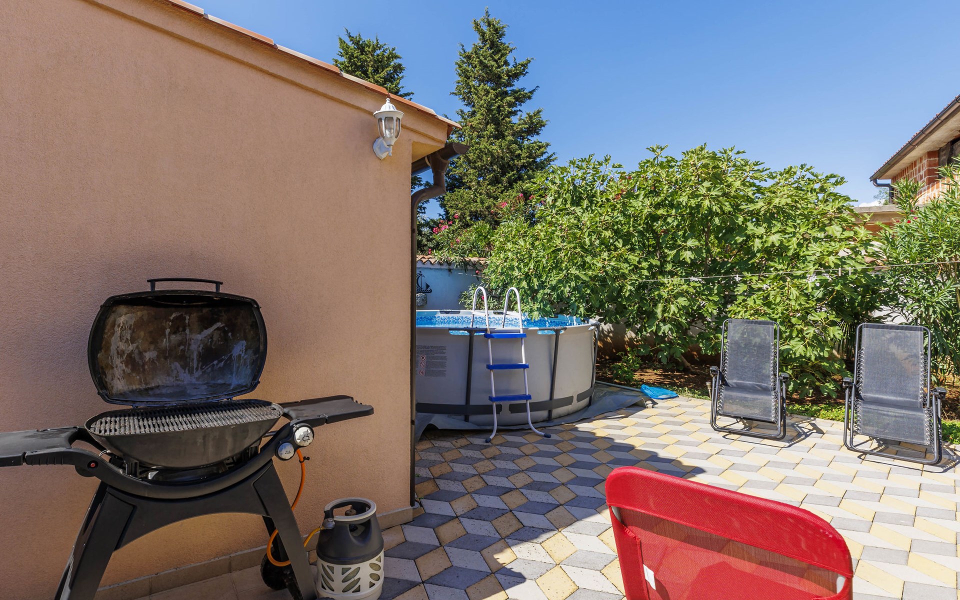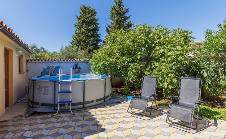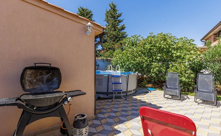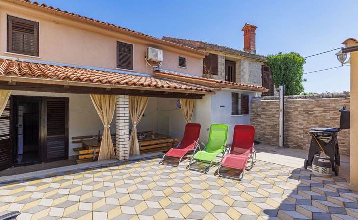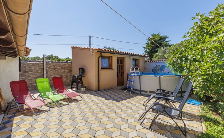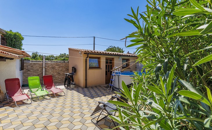 Krnica 22 km von Pula: Reihenhaus "Bakić", auf 2 Stockwerken. 400 m vom Zentrum von Krnica, ruhige, sonnige Lage, 3 km vom Meer, 3 km vom Strand. Zur Alleinbenutzung: Grundstück 120 m2 (eingezäunt), Aufstellpool rund (3 m Durchmesser, 120 cm tief, saisonale Verfügbarkeit: 01.Jun. - 28.Sep.). Aussendusche. Im Hause: Internetzugang, Waschmaschine. Parkplatz beim Haus. Einkaufsgeschäft, Restaurant 400 m, Bushaltestelle 5.2 km, Kieselstrand 5 km, Felsstrand 3 km. Tennis 5 km, Reitstall 3 km.