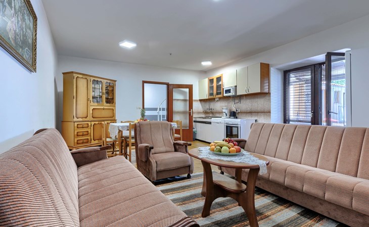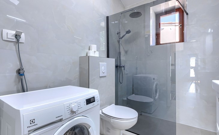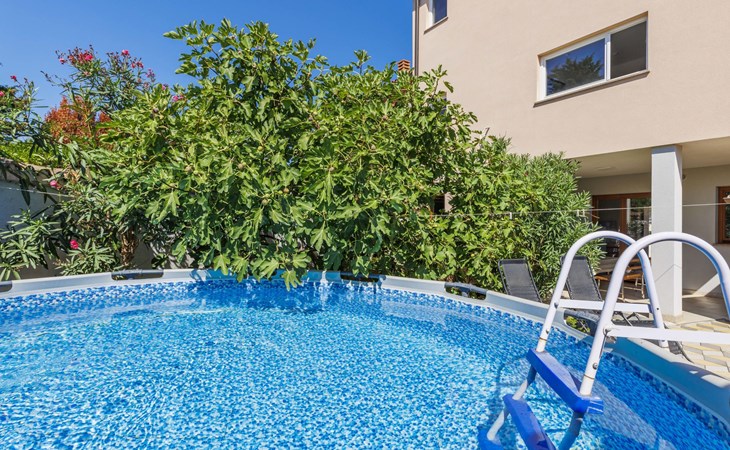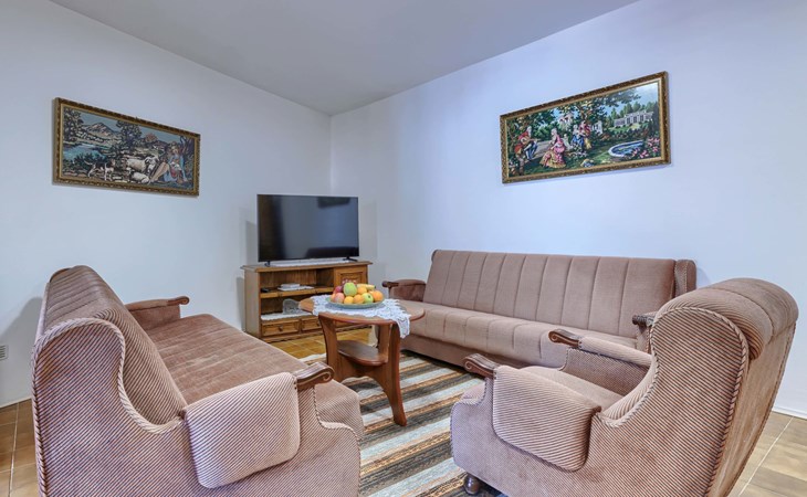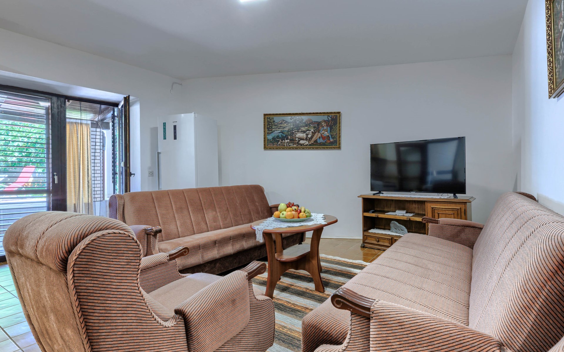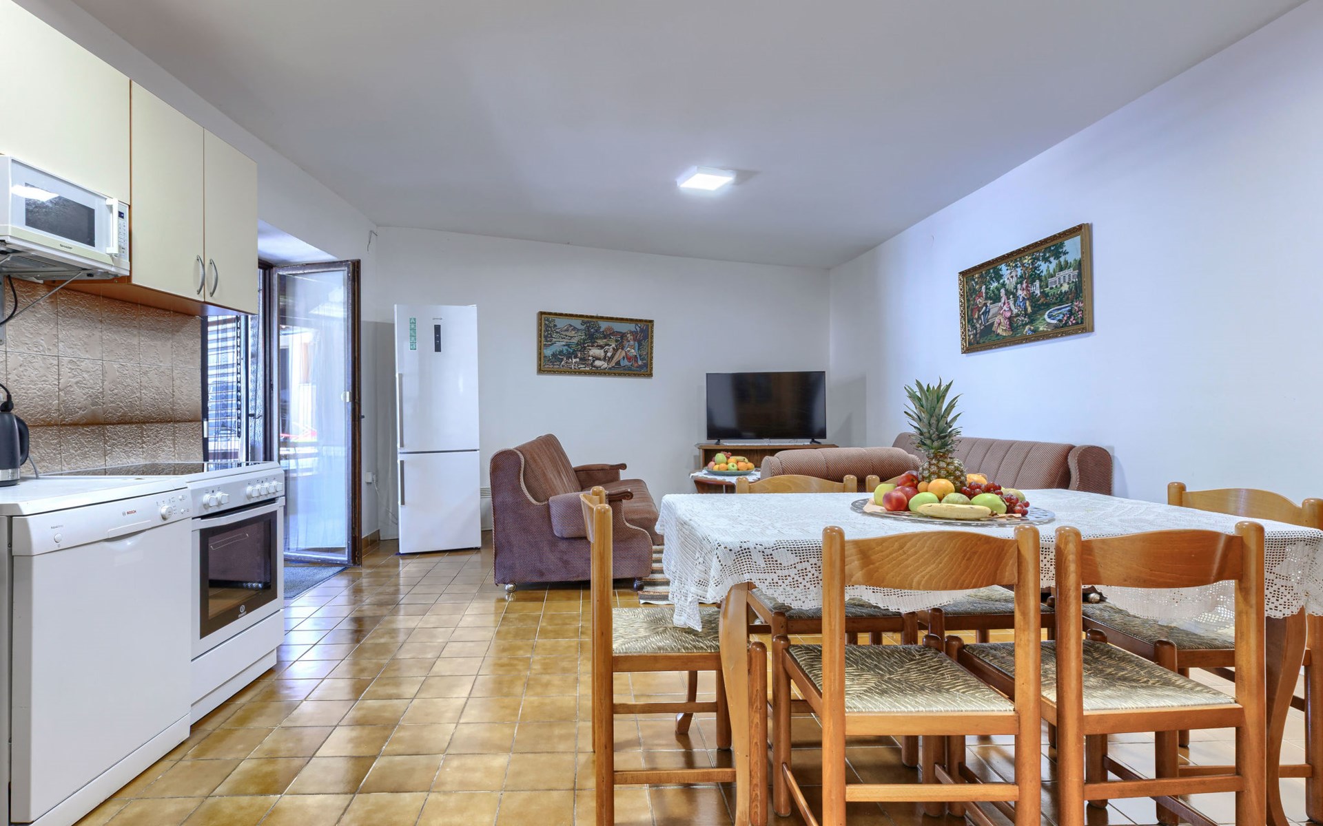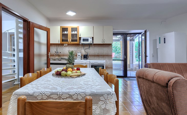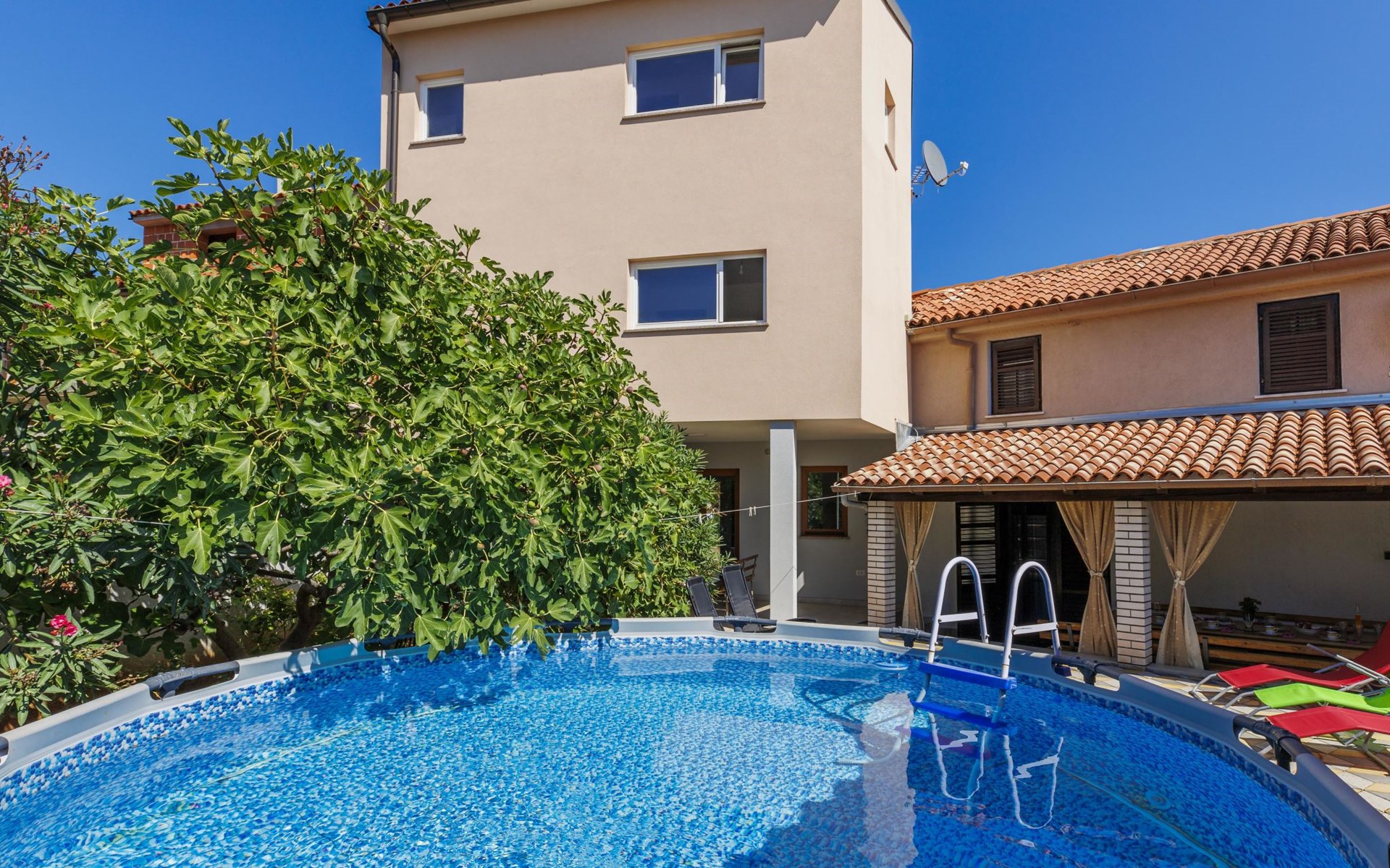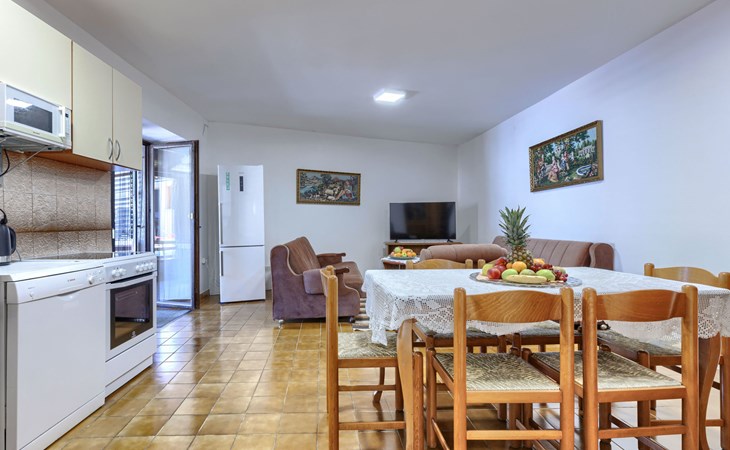 Krnica 22 km von Pula: Reihenhaus "Bakić", auf 2 Stockwerken. 400 m vom Zentrum von Krnica, ruhige, sonnige Lage, 3 km vom Meer, 3 km vom Strand. Zur Alleinbenutzung: Grundstück 120 m2 (eingezäunt), Aufstellpool rund (3 m Durchmesser, 120 cm tief, saisonale Verfügbarkeit: 01.Jun. - 28.Sep.). Aussendusche. Im Hause: Internetzugang, Waschmaschine. Parkplatz beim Haus. Einkaufsgeschäft, Restaurant 400 m, Bushaltestelle 5.2 km, Kieselstrand 5 km, Felsstrand 3 km. Tennis 5 km, Reitstall 3 km.
