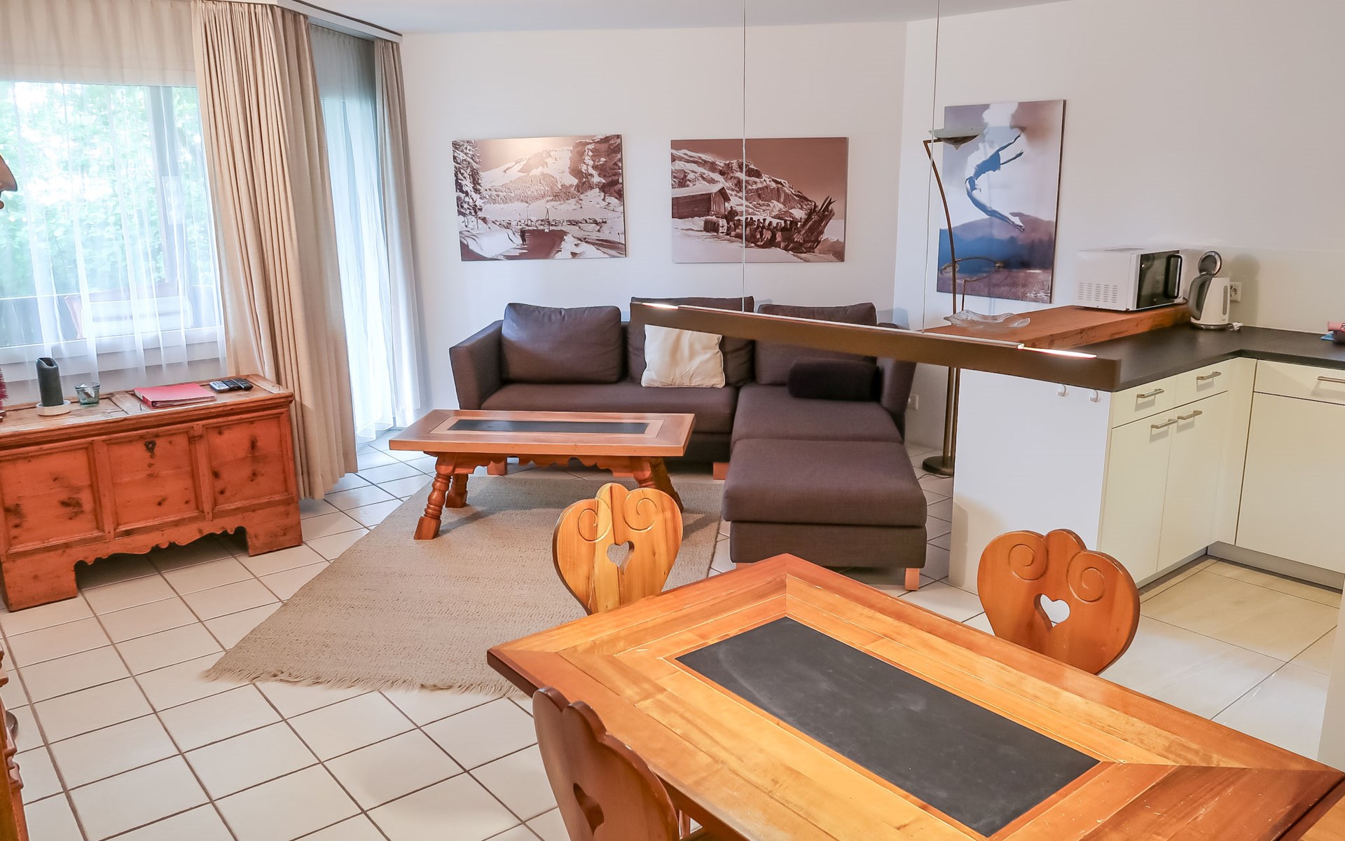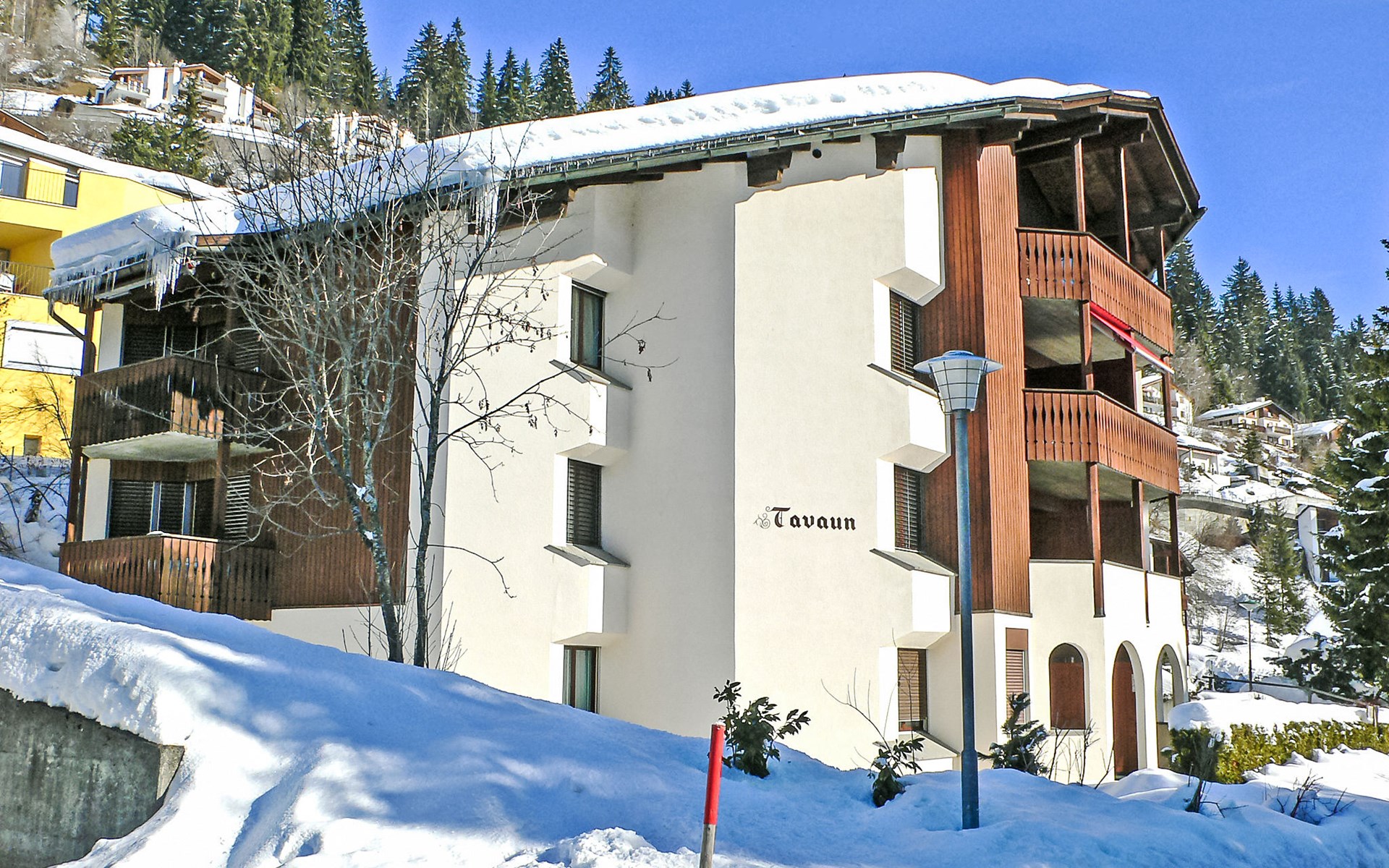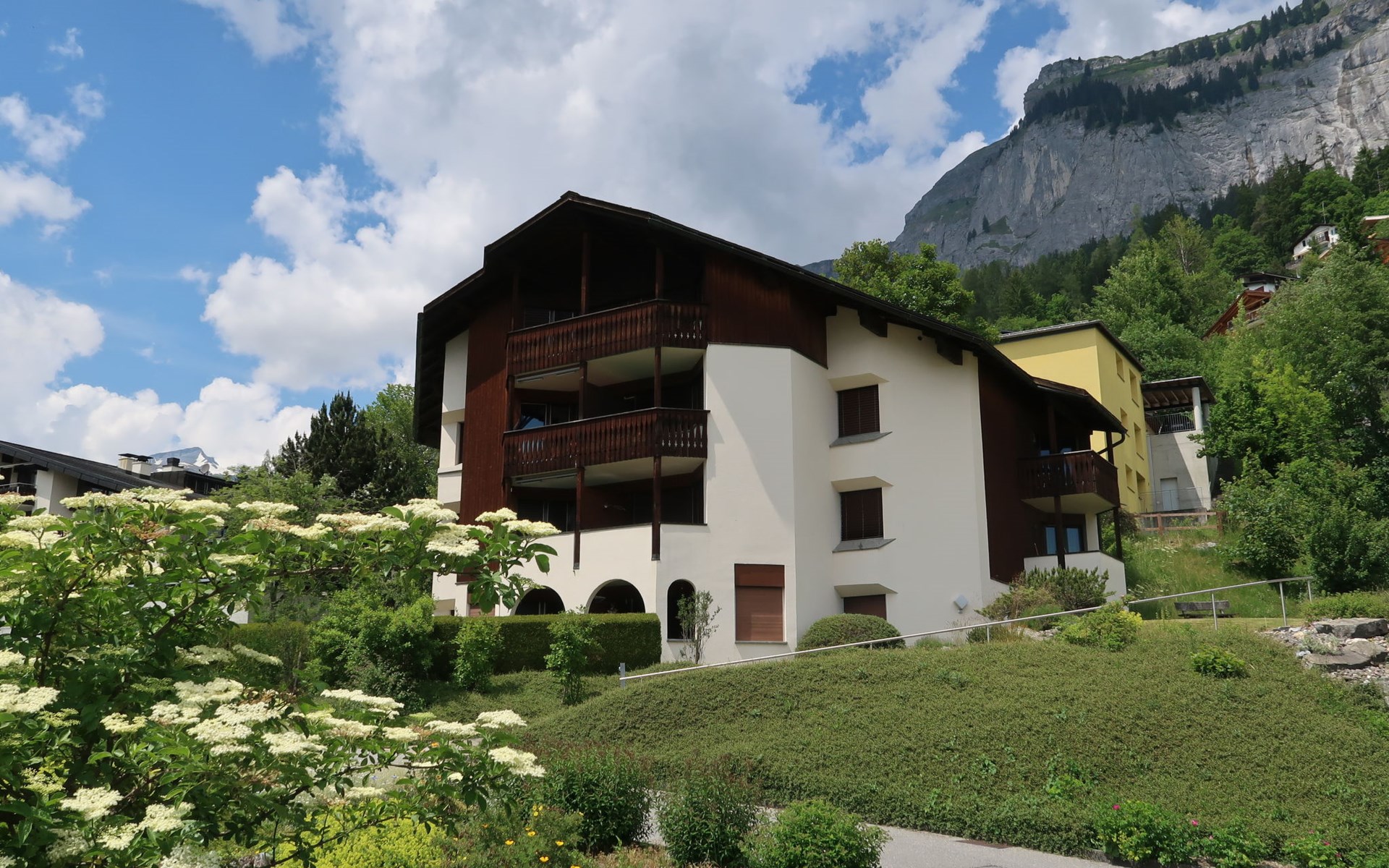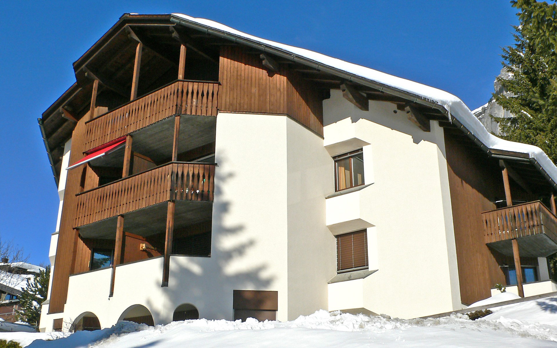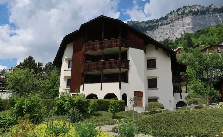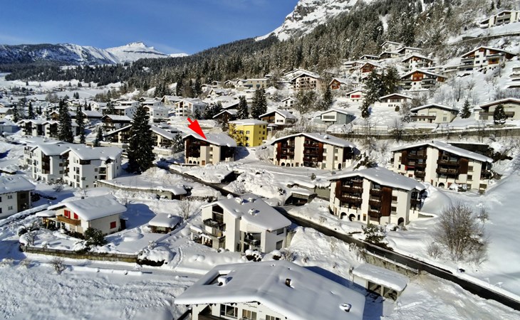 Flims 21 km von Chur: Schönes Mehrfamilienhaus "Casa Tavaun", 1'050 m.ü.M., auf 4 Stockwerken, umgeben von Bäumen und Wiesen. Am Ortsrand, 1 km vom Zentrum von Flims, ruhige, sonnige Lage am Hang, 1 km vom Skigebiet, in einer Sackgasse, Richtung Süden. Im Hause: Skiraum, Zentralheizung, Waschmaschine, Wäschetrockner (zur Mitbenutzung, extra). Wohnungsreinigung möglich (extra). Zufahrt bis zum Haus. Im Winter bitte Schneeketten mitbringen, im Winter 4x4 empfohlen. Gemeinschaftsgarage. Einkaufsgeschäft 1 km, Lebensmittelgeschäft 1 km, Restaurant 300 m, Zentrum zu Fuss in 20 Minuten erreichbar, Bushaltestelle 150 m, Bahnstation "Chur" 21 km. Golfplatz (9 Loch) 8 km, Sportzentrum 3 km, Wanderwege ab Haus 5 m, Luftseilbahn 5 km, Skilift 1 km, Gondelbahn 1 km, Skisportanlagen 1 km, Skipisten 1 km, Skibushaltestelle 30 m, Skischule 1 km, Schlittelbahn, Langlaufloipe 500 m, Eisfeld 3 km. Nahe gelegene Sehenswürdigkeiten: Rheinschlucht. Bekannte Skigebiete sind gut erreichbar: Flims/Laax/Falera. Bekannte Seen in der Umgebung sind gut erreichbar: Caumasee, Crestasee. Bitte beachten: Gratis Skibus.