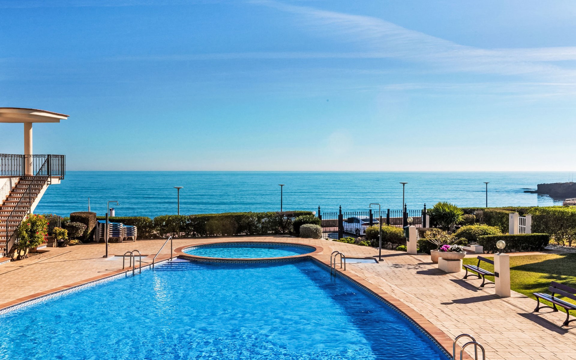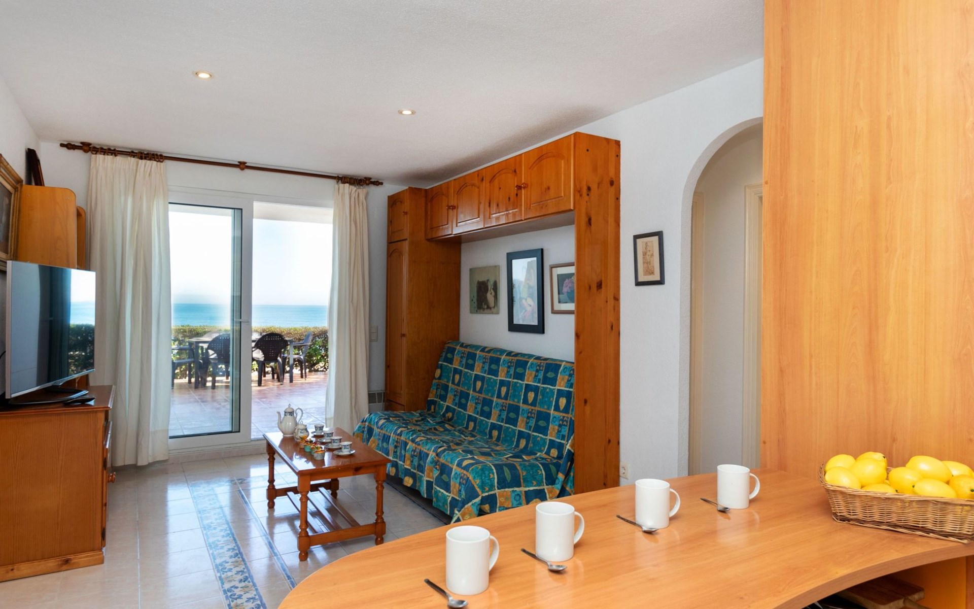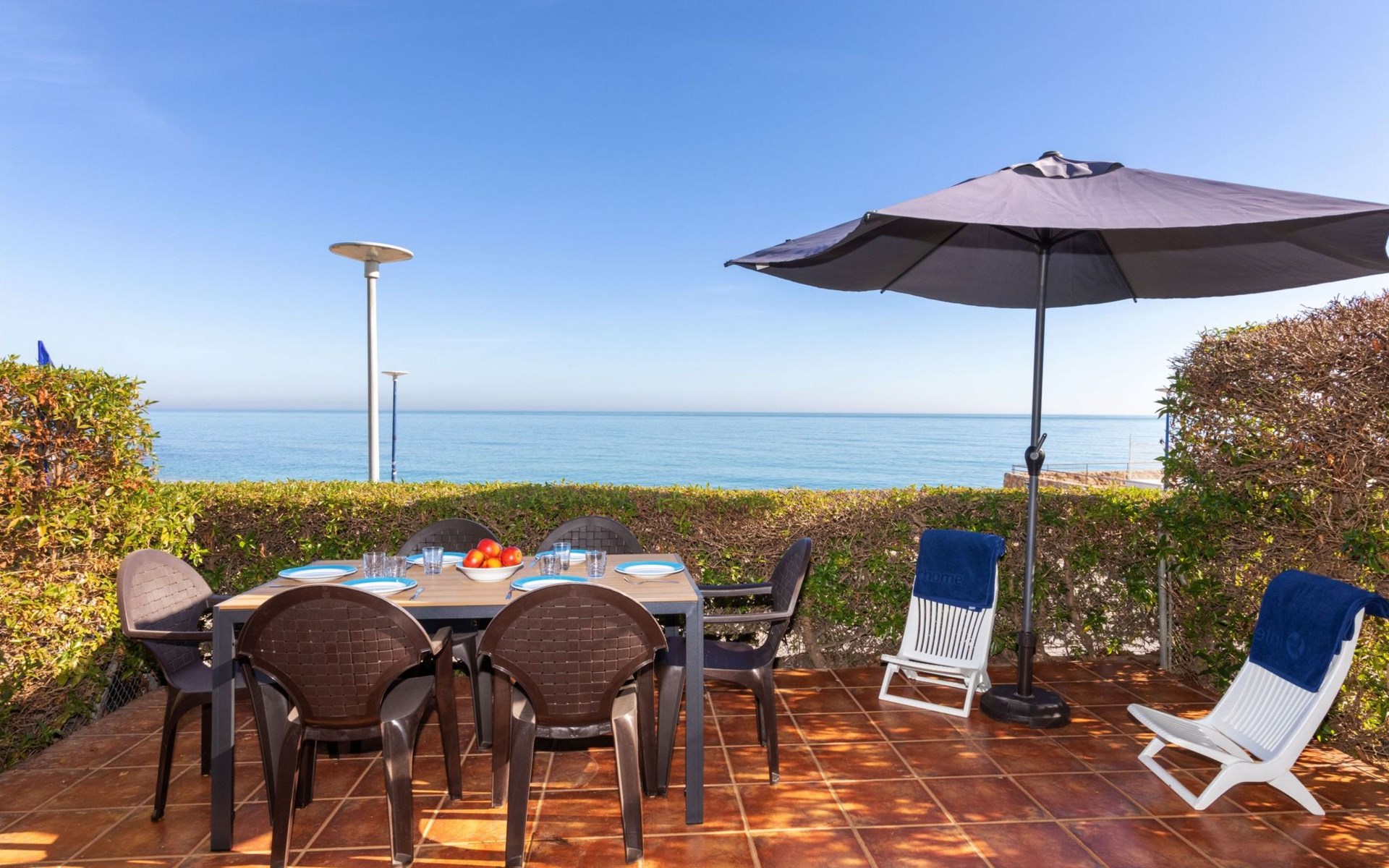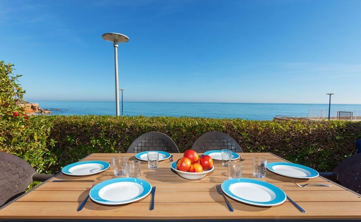 COSTA NORTE 2 km von Vinaròs centro: Appartementhaus "Cala Gonzalez". 60 Wohnungen im Ferienhaus. Im Ort, 2 km vom Zentrum von Vinaròs, ruhige Lage, vom Meer, 20 m vom Strand, direkter Zugang zum Strand. Zur Mitbenutzung: Liegewiese, Schwimmbad (12 x 7 m, 180 cm tief, saisonale Verfügbarkeit: 01.Jan. - 31.Dez. Öffnungszeiten Schwimmbad: 09:00-14:00 und 16:00-22:00). Kinderbecken, Aussendusche. Zur Alleinbenutzung: Terrasse (20 m2), Gartenmöbel. Im Hause: Waschmaschine. Parkplatz (überdacht). Bushaltestelle "Vinaròs - Calle 29 Septiembre" 2 km, Bahnstation "Vinaròs" 5 km, Steinstrand "Platja dels Cossis" 20 m. Nahe gelegene Sehenswürdigkeiten: Peñiscola 25 km, Delta del Ebro 40 km, Port Aventura 100 km, Museo de las Ciencias - Valencia 120 km. Bekannte Seen in der Umgebung sind gut erreichbar: Pantano La Senia 25 km. Wandergebiete: Parque natural Sierra de Irta 35 km, Foradada del Montsià 25 km. Bitte beachten: Fahrzeug empfohlen. Der Besitzer akzeptiert keine Jugendgruppen.