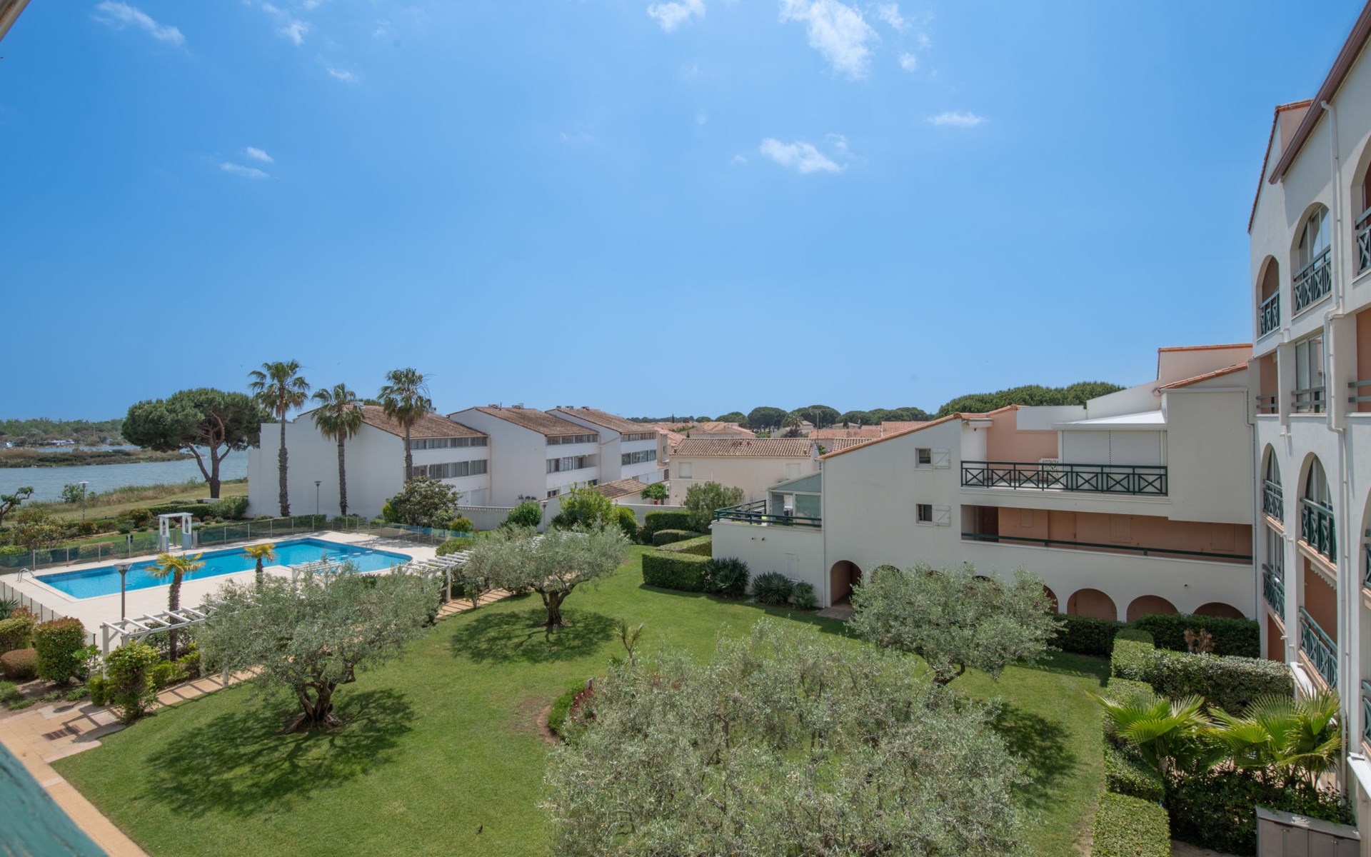 Residenz "Les Terrasses du Lac", auf 4 Stockwerken. Im Ortsteil la Salonique, am Ortsrand, 2 km vom Zentrum, 20 m vom See, 800 m vom Strand. Zur Mitbenutzung: Schwimmbad (15 x 8 m, 200 cm tief, saisonale Verfügbarkeit: 15.Jun. - 15.Sep.). In der Anlage: Fahrstuhl. Parkplatz. Einkaufsgeschäft, Lebensmittelgeschäft 300 m, Einkaufszentrum 1.5 km, Restaurant 300 m, Zentrum zu Fuss in 35 Minuten erreichbar, Bushaltestelle 200 m, Bahnstation 3.5 km, Sandstrand "Sud" 800 m, Freibad 2.8 km, Hallenbad 25 m, Thermalbad "Thalazur" 2.2 km. Sporthafen 200 m, Tennis 500 m. Nahe gelegene Sehenswürdigkeiten: Casino Flamindo 2 km, Seaquarium 3.3 km, Les arènes du Grau du roi 4.5 km, Aigues-Mortes 8 km, La Grande Motte 13 km, Nîmes 52 km. Wandergebiete: la réserve naturelle. Bitte beachten: Fahrzeug empfohlen. Die Schlüsselübergabe findet bei der Agentur Interhome in Port Camargue statt, 1 km. Flugplatz 24 km vom Haus. Weitere Unterkünfte sind buchbar.