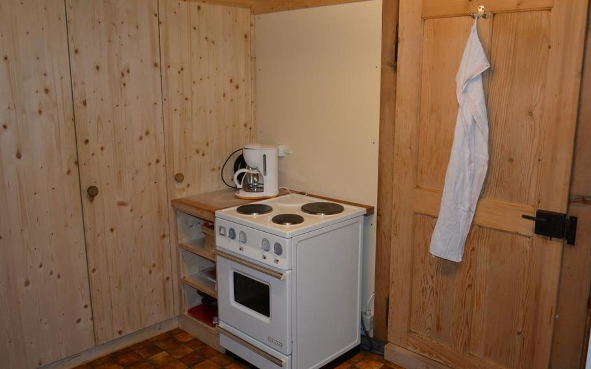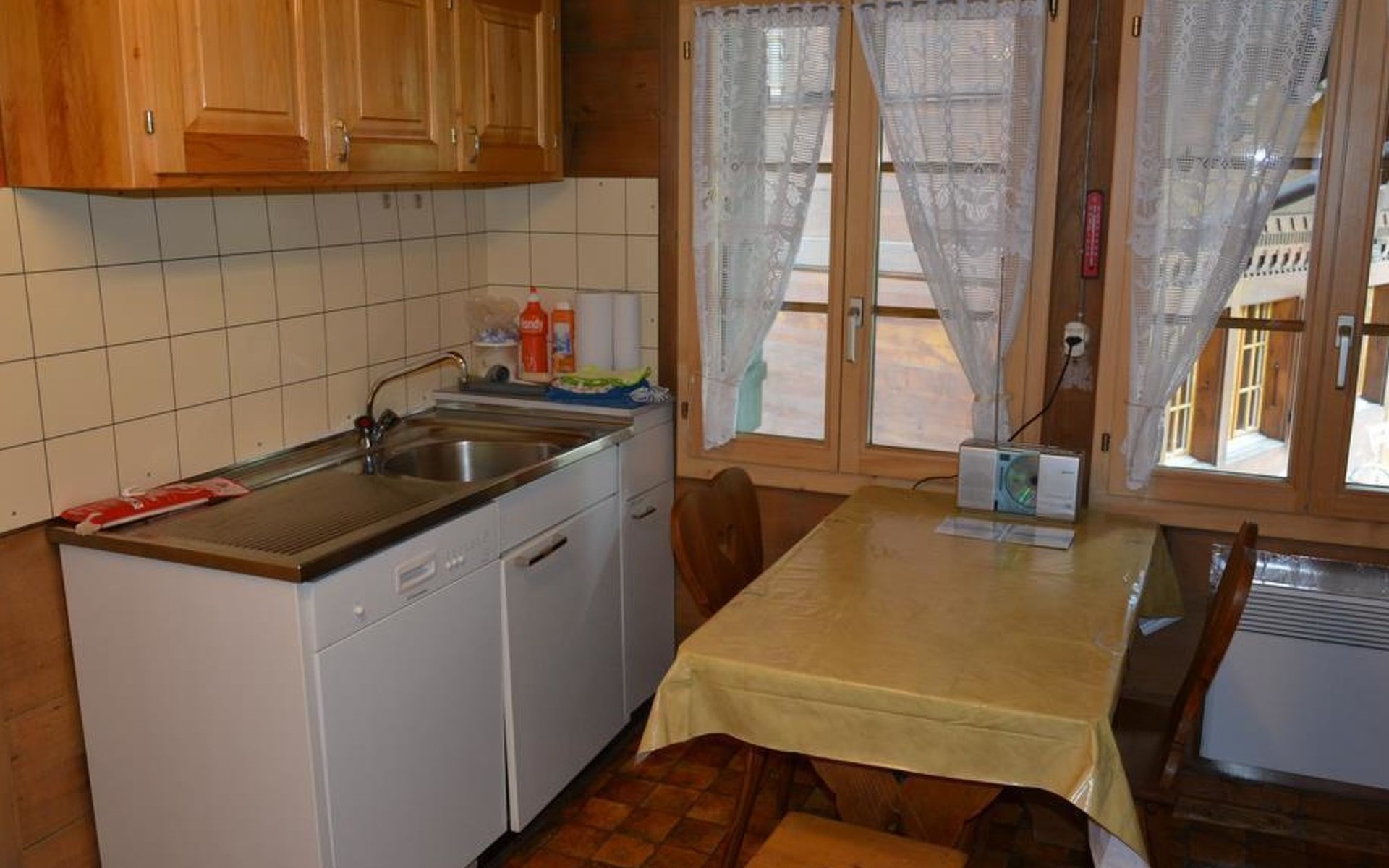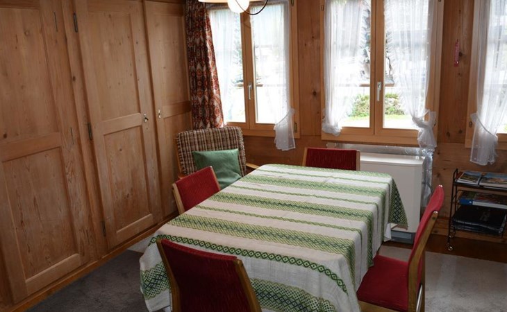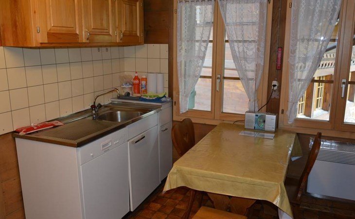 Einfache 2-Zimmerwohnung. 1 Schlafzimmer mit 2 Betten (90x190cm), 1 kleines Wohnzimmer mit 1 Bett (90x190cm) und einem Ausziehsofa (160x200cm). Dusche/WC. Radio, Sat-TV, Küche mit Esstisch, Mikrowelle, Kapsel-Kaffeemaschine (Nespresso), Filterkaffeemaschine sowie Fondue- und Raclette-Set. Kinderbett (60x120cm) inkl. Bettwäsche und Kinderhochstuhl vorhanden.