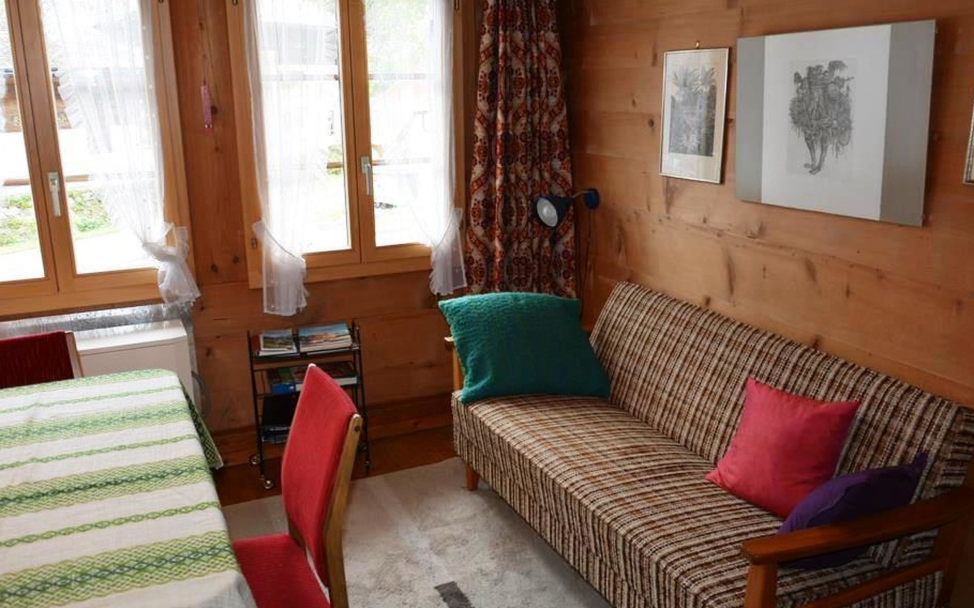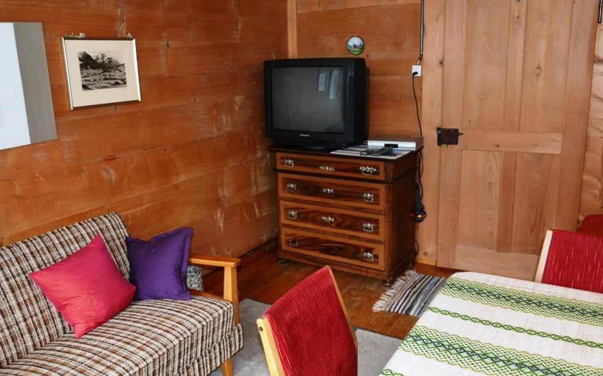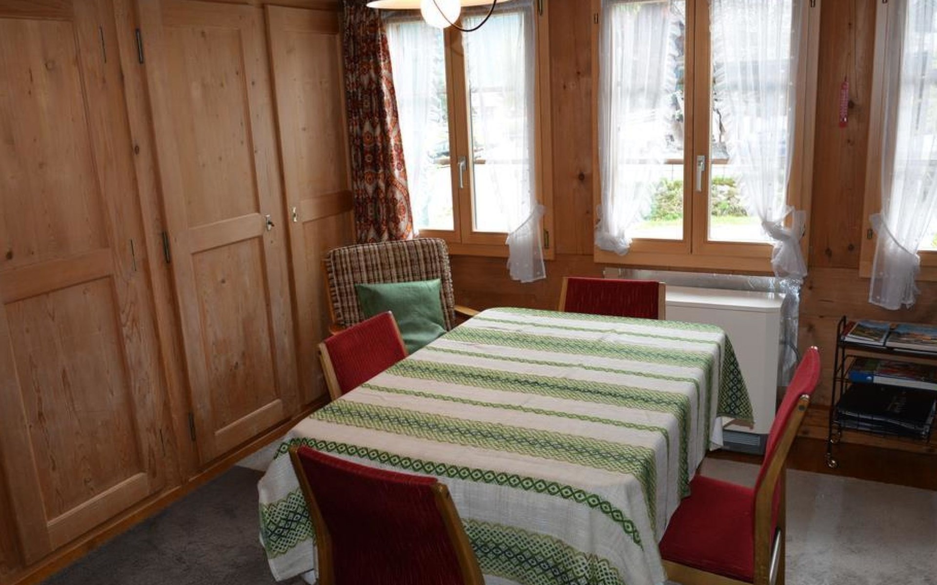 Einfache 2-Zimmerwohnung. 1 Schlafzimmer mit 2 Betten (90x190cm), 1 kleines Wohnzimmer mit 1 Bett (90x190cm) und einem Ausziehsofa (160x200cm). Dusche/WC. Radio, Sat-TV, Küche mit Esstisch, Mikrowelle, Kapsel-Kaffeemaschine (Nespresso), Filterkaffeemaschine sowie Fondue- und Raclette-Set. Kinderbett (60x120cm) inkl. Bettwäsche und Kinderhochstuhl vorhanden.