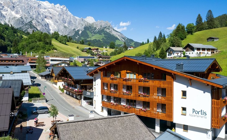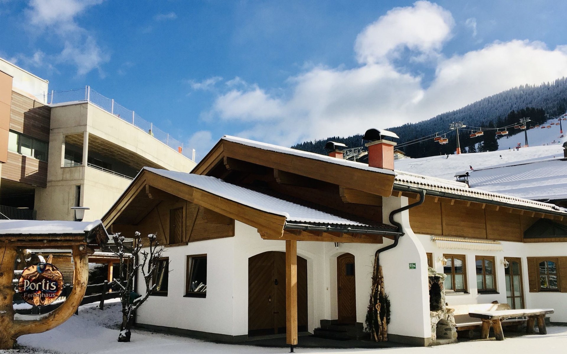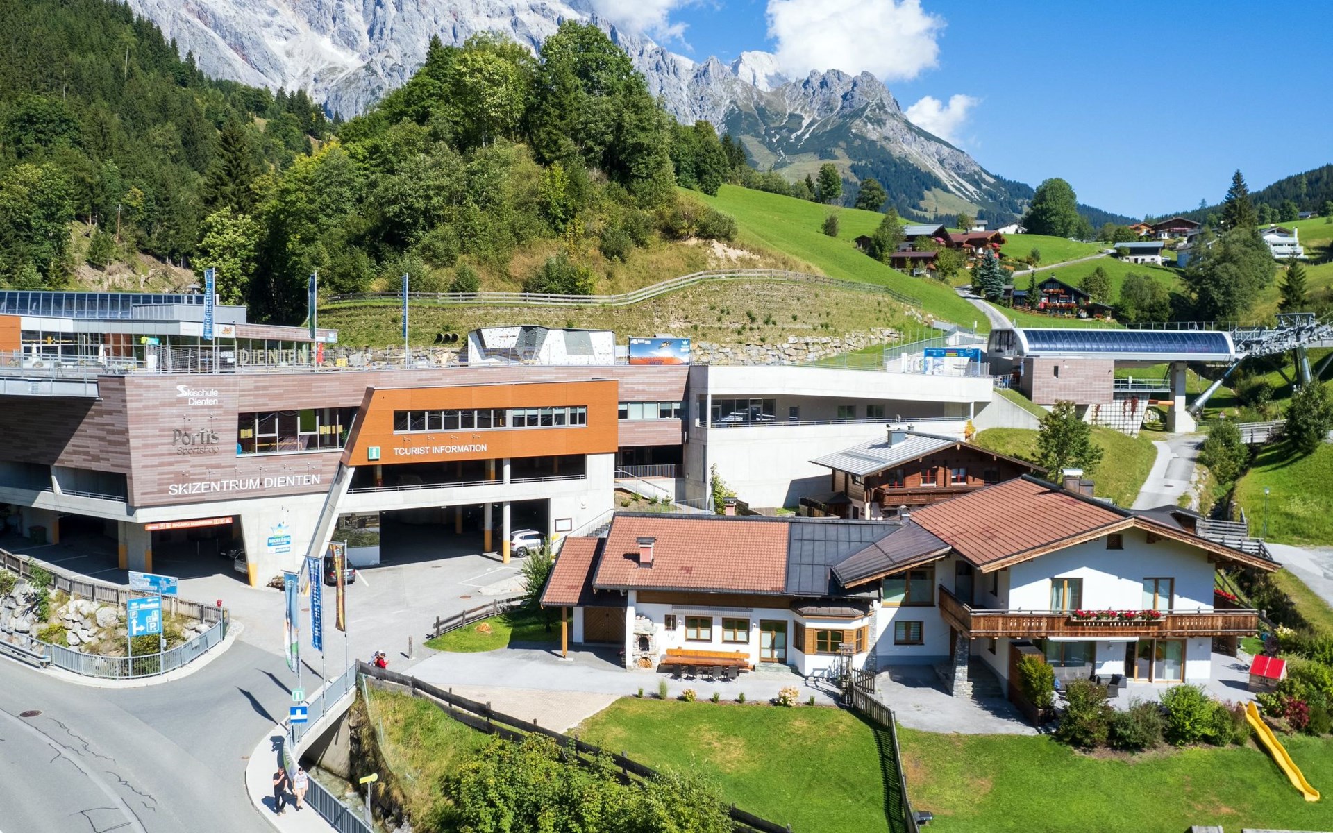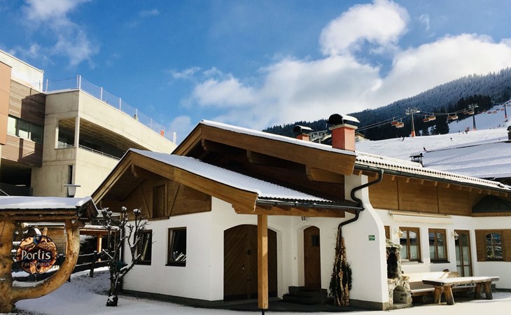 Dienten am Hochkönig: Grosser Wellnessbereich 150m² inklusive, Bademantel, Handtücher und Wellnesstasche vorhanden. Modernes Appartementhaus "Portis". 100 m vom Zentrum von Dienten, 50 m vom Skigebiet. Im Hause: Sauna, Dampfbad, Ruheraum, Wellnessbereich in 150 m zur Mitbenutzung, Zentralheizung. Gemeinschaftsgarage. E-Ladestation. Supermarkt 200 m, Restaurant 100 m, Bushaltestelle "Arzthaus" 160 m. Skisportanlagen 50 m. Bekannte Skigebiete sind gut erreichbar: Dienten. Wandergebiete: Hochkönig.