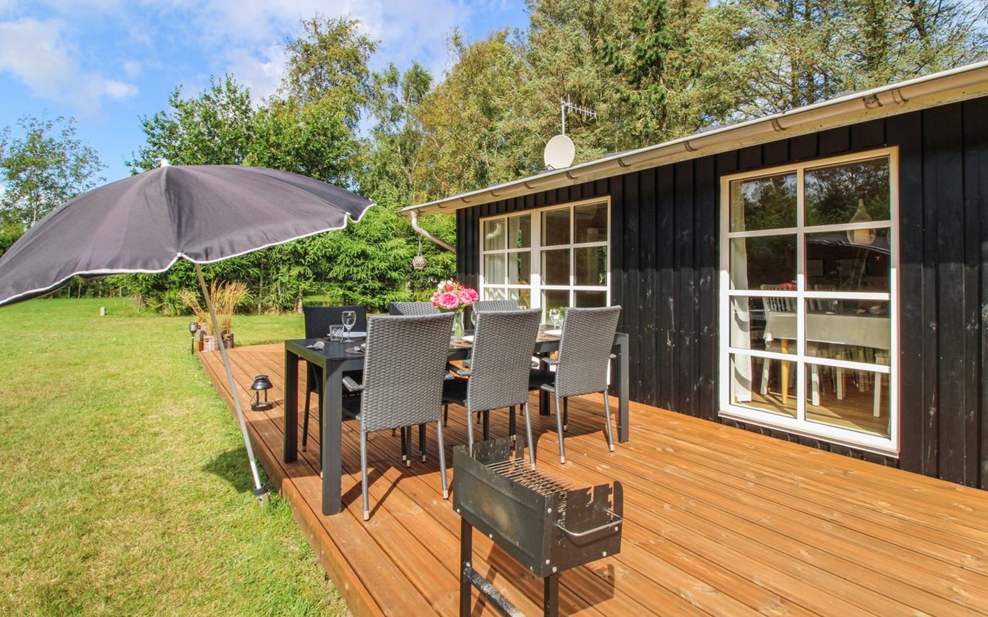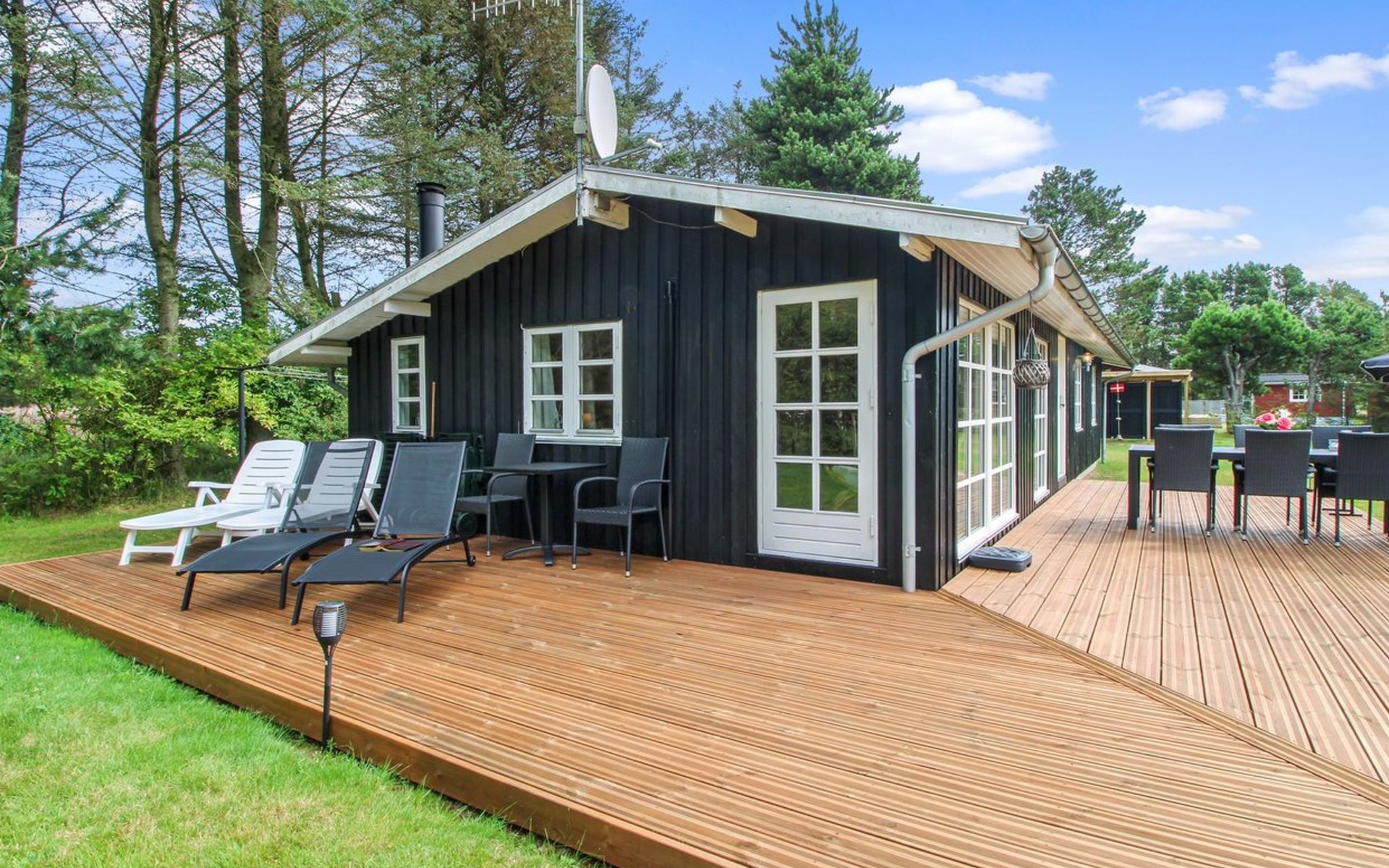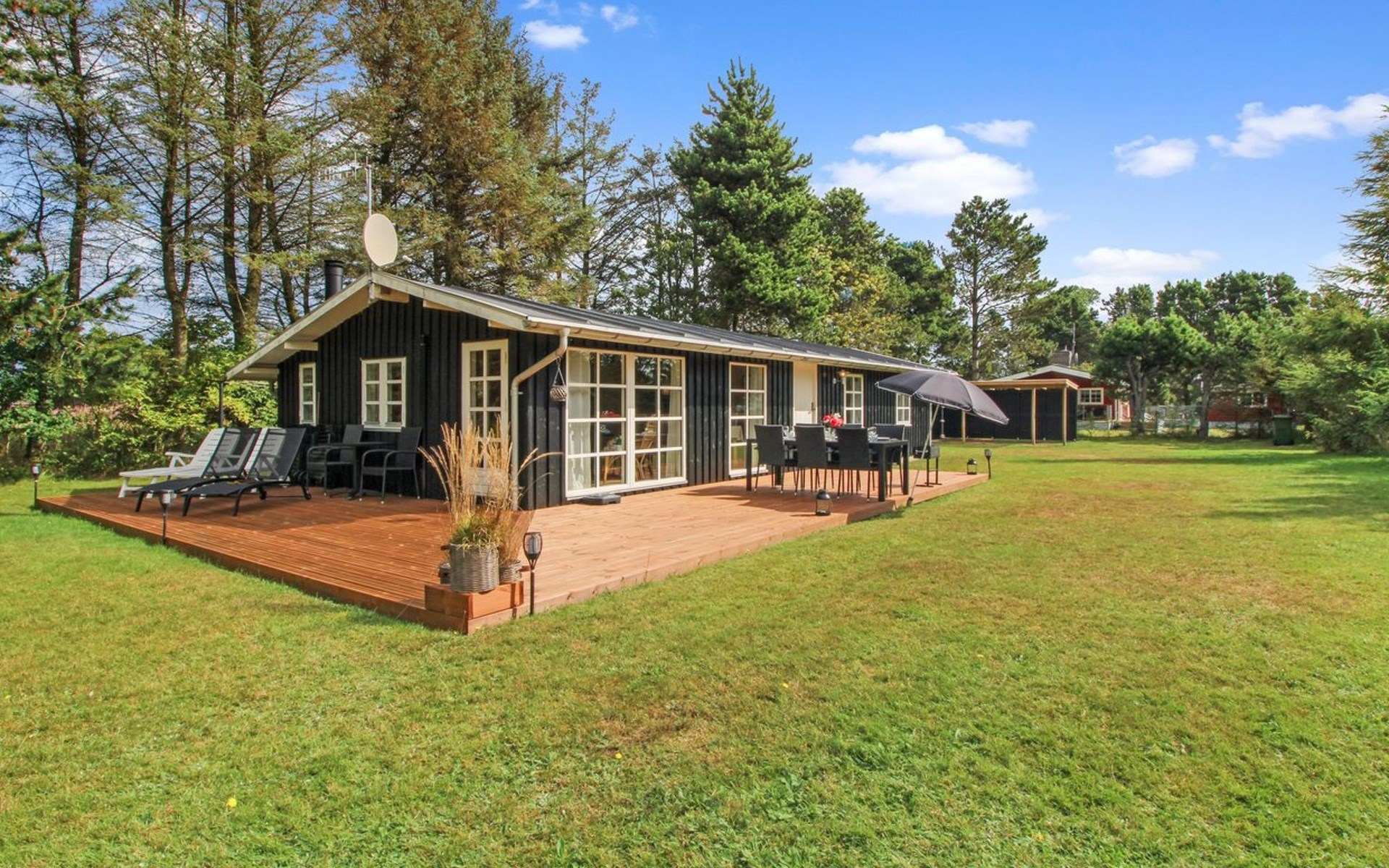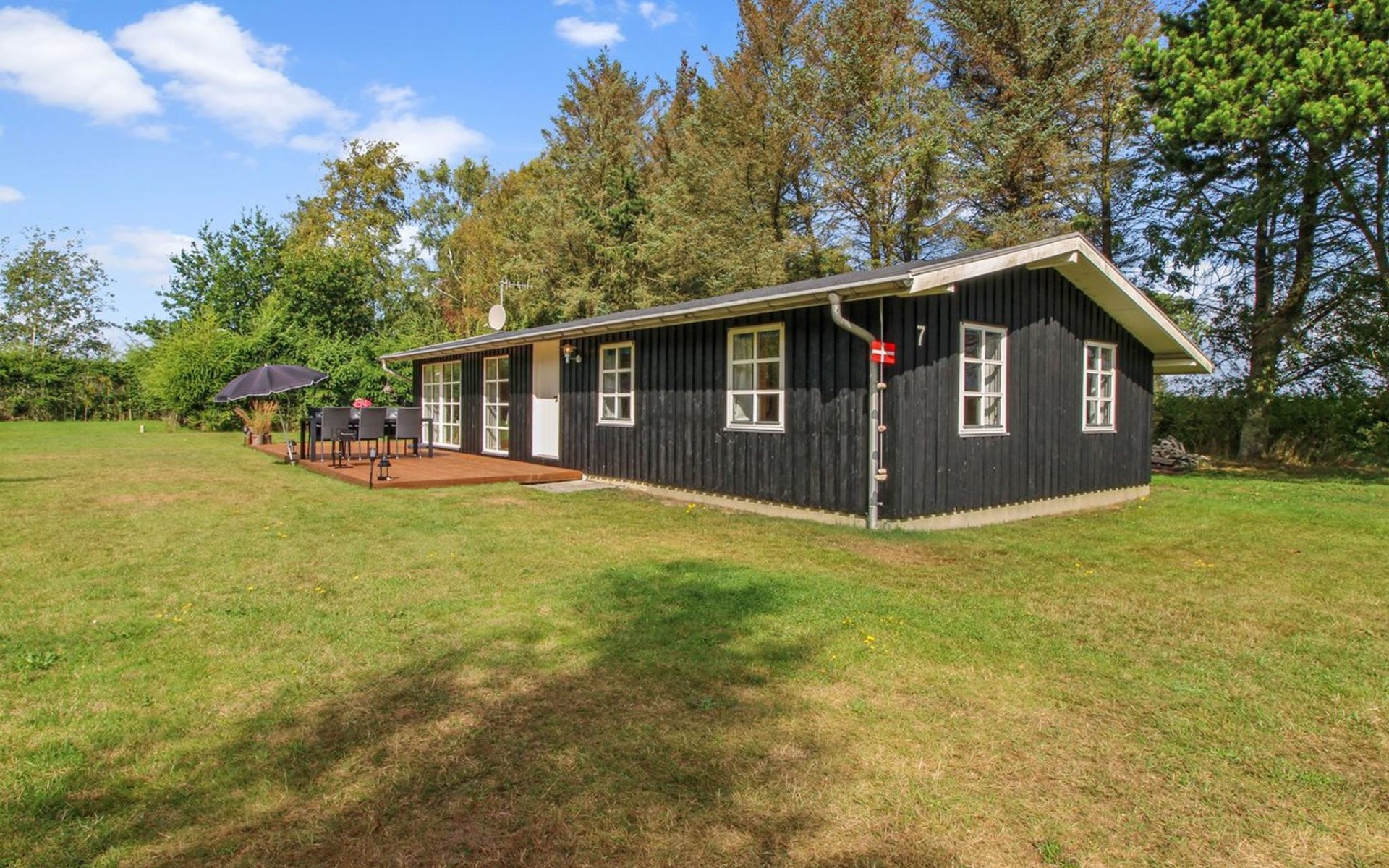 Einfamilienhaus, Baujahr 1973. 450 m vom Meer. Zur Alleinbenutzung: naturbelassenes Grundstück 1'314 m2. Terrasse (50 m2), Grill. Im Hause: Waschmaschine. Parkplatz beim Haus. Carport. E-Ladestation. Lebensmittelgeschäft 8 km. Der Besitzer akzeptiert keine Jugendgruppen.