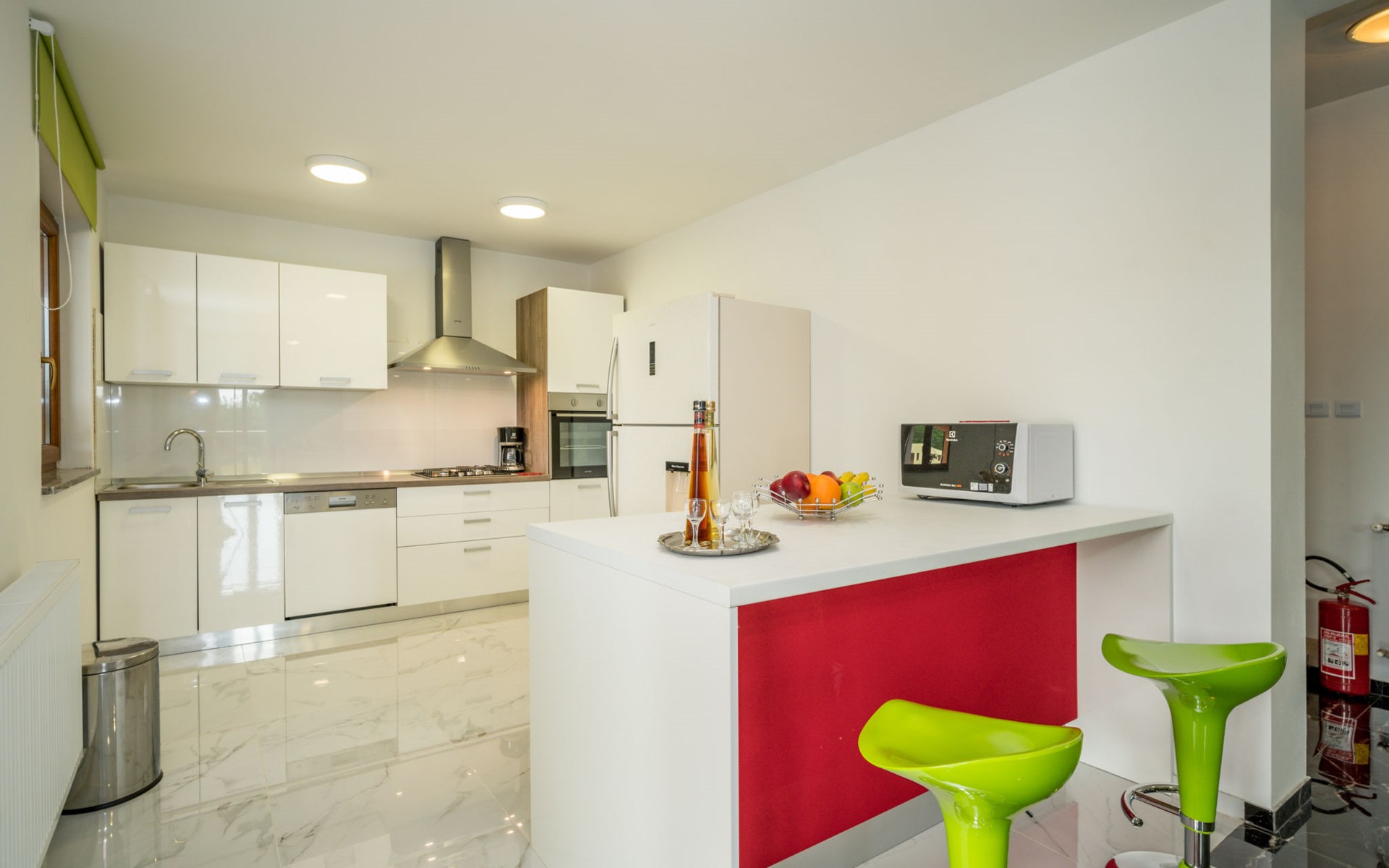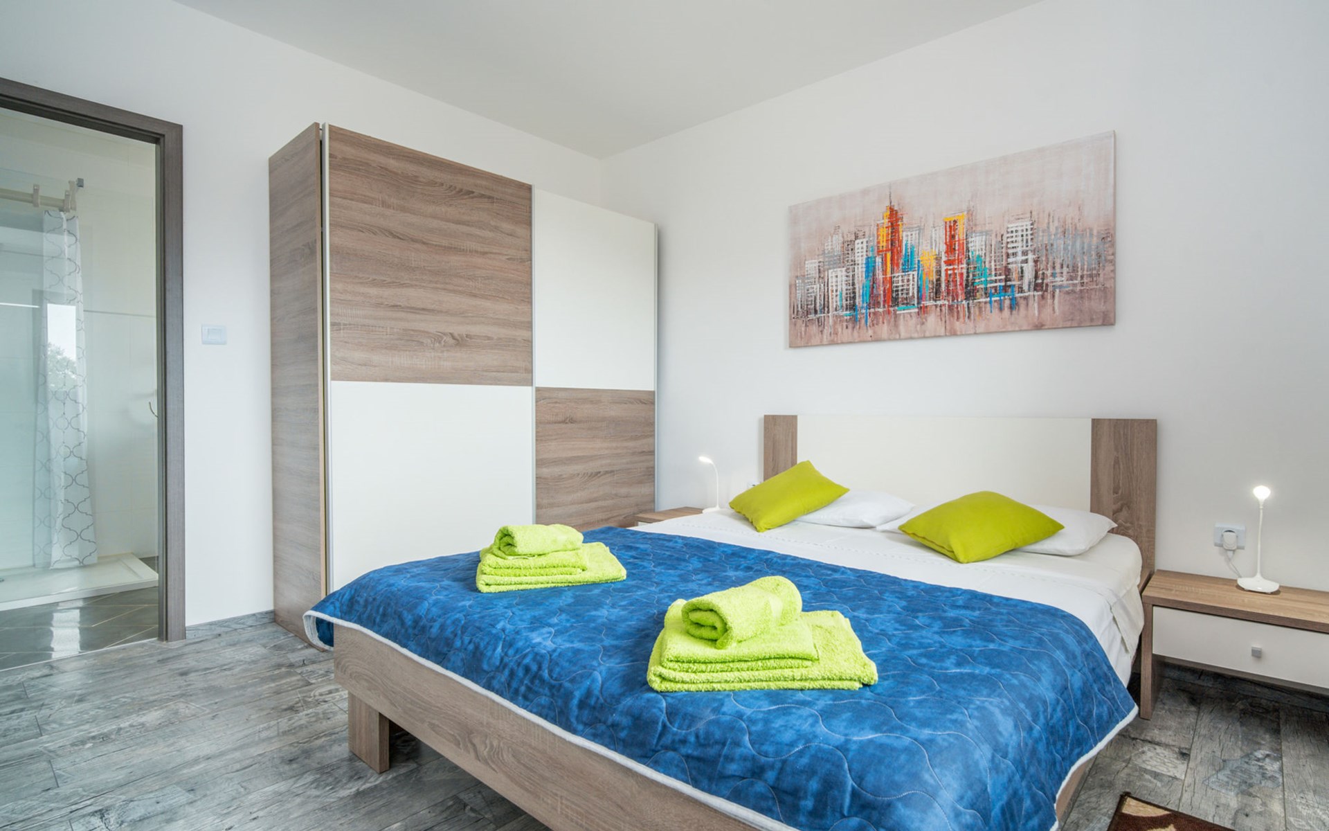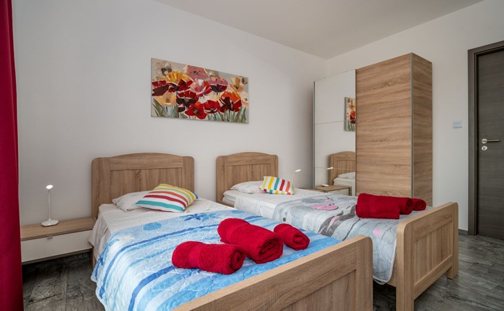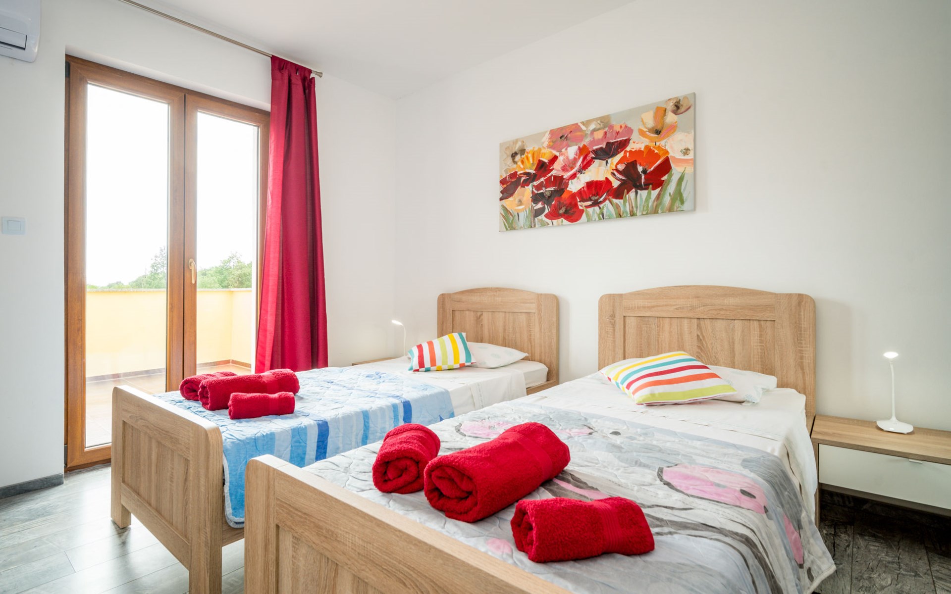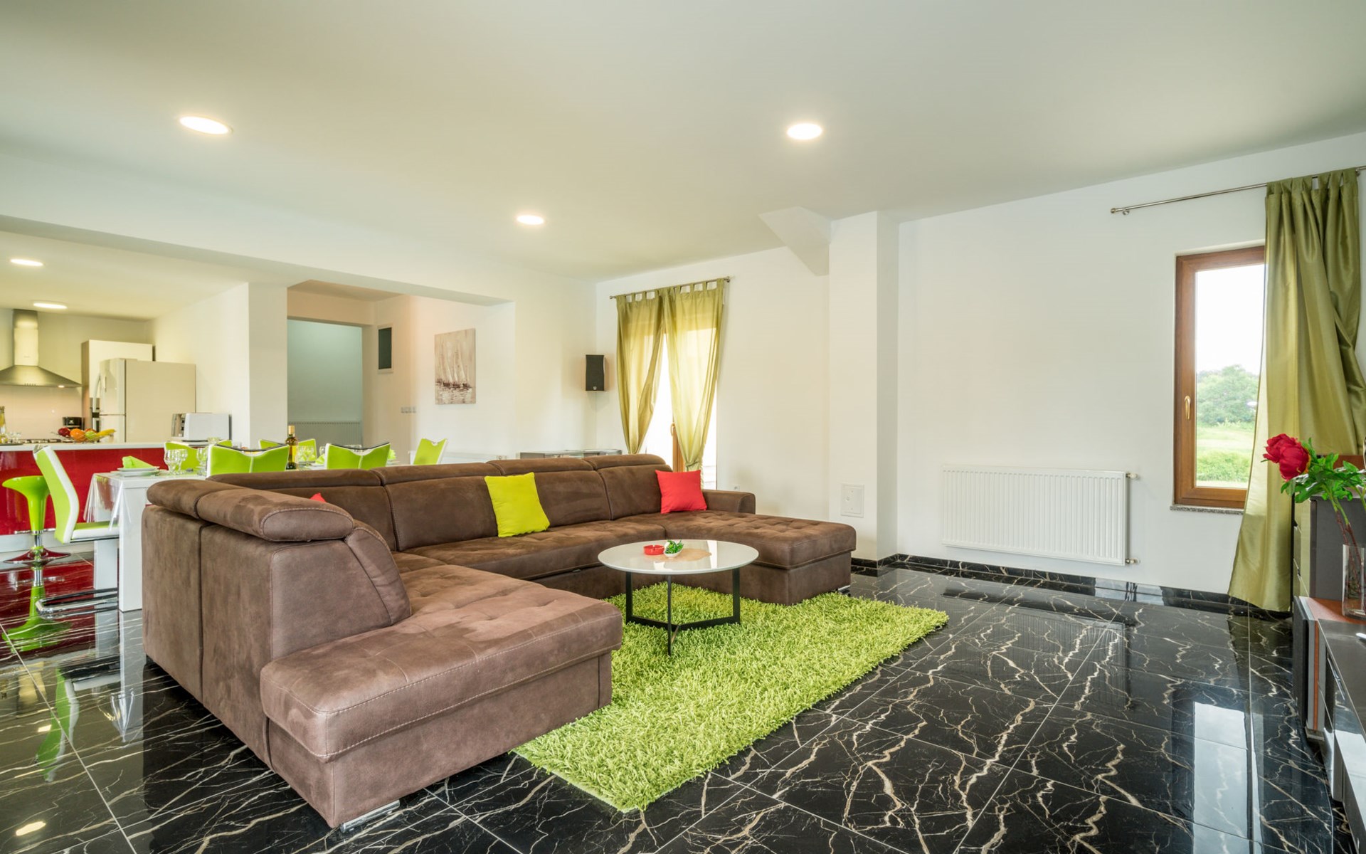 Frankovići 10 km von Motovun: Schönes Einfamilienhaus "Villa Frankovići", auf 2 Stockwerken, Baujahr 2017. Im Weiler Frankovići, 8 km vom Zentrum von Pazin, 33 km vom Zentrum von Poreč, 30 km vom Meer, im Grünen. Zur Alleinbenutzung: Grundstück 14'000 m2, Rasen, Schwimmbad eckig (8 x 5 m, 46 m2, 140 cm tief, saisonale Verfügbarkeit: 01.Mai. - 30.Sep.) mit Innentreppe. Aussendusche, Terrasse (27 m2), Gartenmöbel. Im Hause: Internetzugang, Waschmaschine. Parkplatz (für 3 Autos) beim Haus auf dem Grundstück. Einkaufsgeschäft 3 km, Supermarkt 11 km, Restaurant 3 km, Bushaltestelle 5.5 km, Kieselstrand 30 km. Wanderwege ab Haus 300 m, Radweg 350 m.