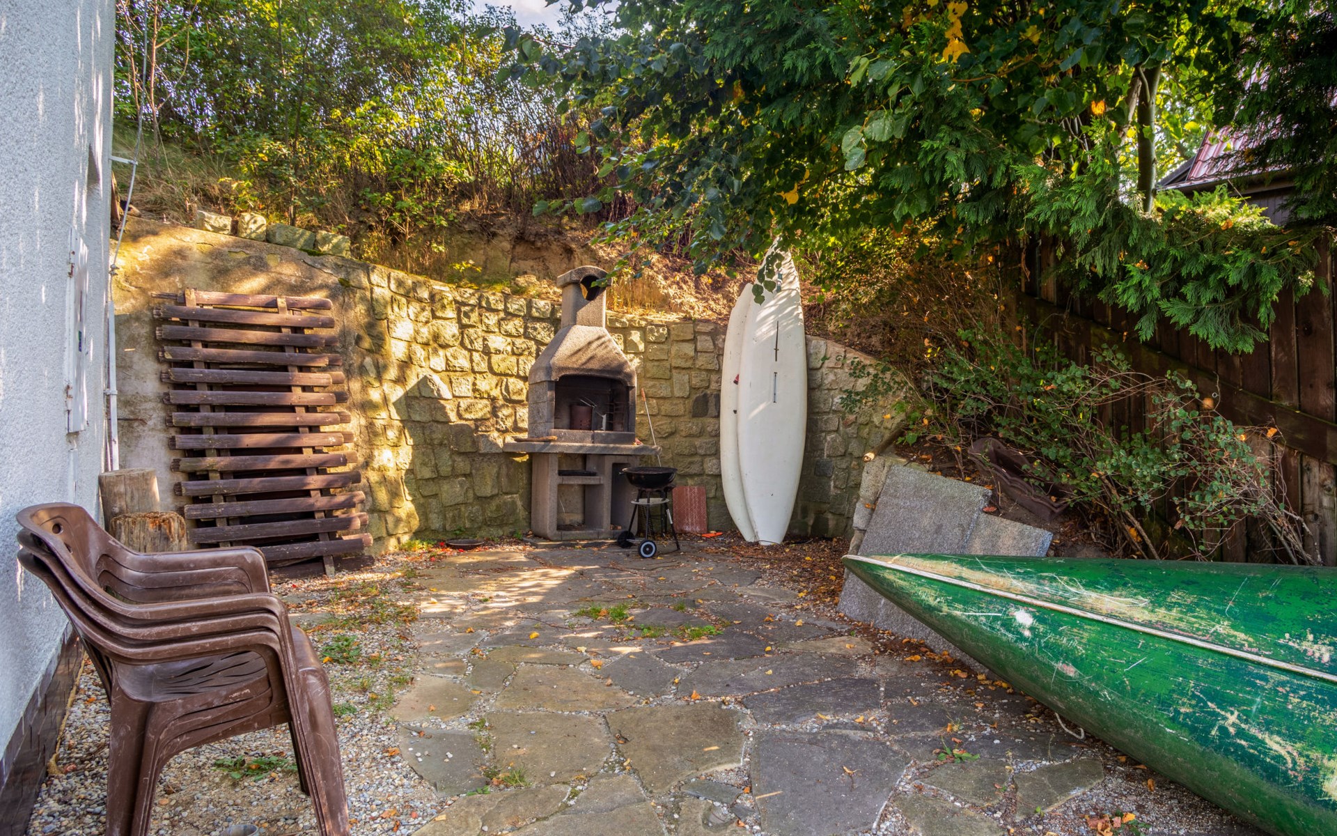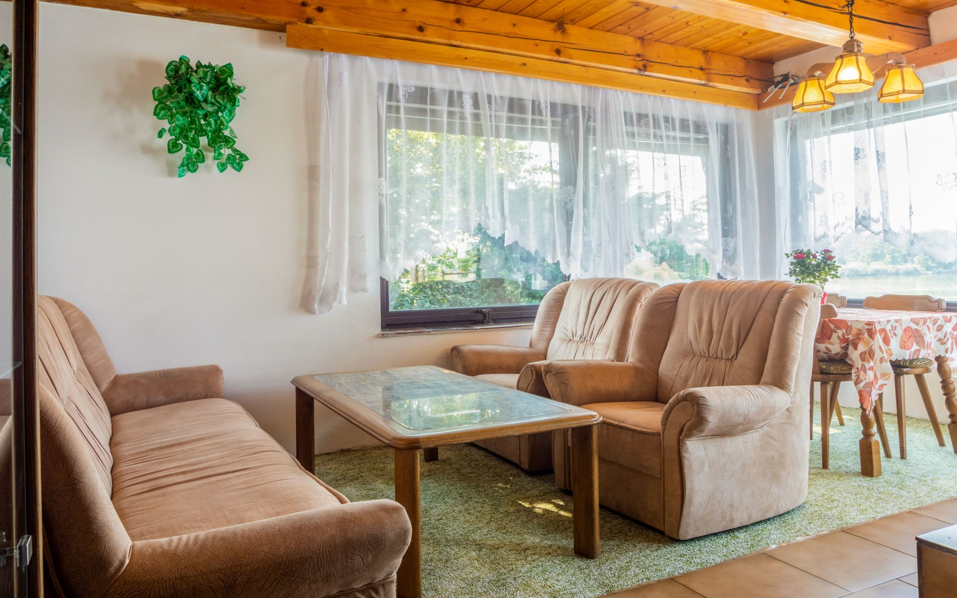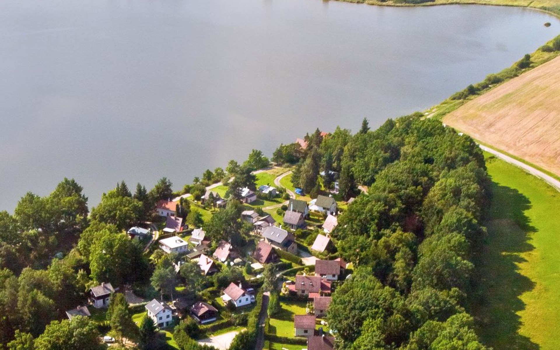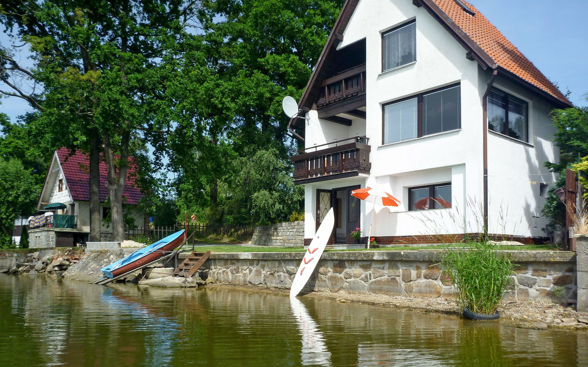 Freistehendes Chalet "Panorama", 400 m.ü.M., auf 4 Stockwerken. 500 m vom Zentrum von Dehtáře, am Ortsrand Holašovice, 15 km vom Zentrum von Hluboká nad Vltavou, ruhige, sonnige Lage, direkt am See. Zur Alleinbenutzung: naturbelassenes Grundstück 420 m2, Garten (nicht eingezäunt) Bäumen, Wiese. Terrasse, Gartenmöbel, Feuerstelle, Badesteg, Badeplatz. Zur Verfügung: Kanu, Boot. 800 m lange schmale Zufahrt. Parkplatz (für 2 Autos) auf dem Grundstück. Einkaufsgeschäft 1.5 km, Supermarkt 15 km, Restaurant 1.5 km, Biergarten 400 m, Bushaltestelle "Dehtáře" 500 m, Bahnstation "Netolice" 11 km, Sandstrand 3 m, Freibad 15 km, Hallenbad 15 km, Badesee "Dehtáře" 3 m. Golfplatz (18 Loch) 15 km, Wanderwege ab Haus, Radweg 10 m. Nahe gelegene Sehenswürdigkeiten: UNESCO Holašovice 6 km, Hluboká nad Vltavou 15 km, České Budějovice 15 km, Dívčí kámen 18 km, Český Krumlov 36 km. Bekannte Seen in der Umgebung sind gut erreichbar: Dehtáře 3 m.