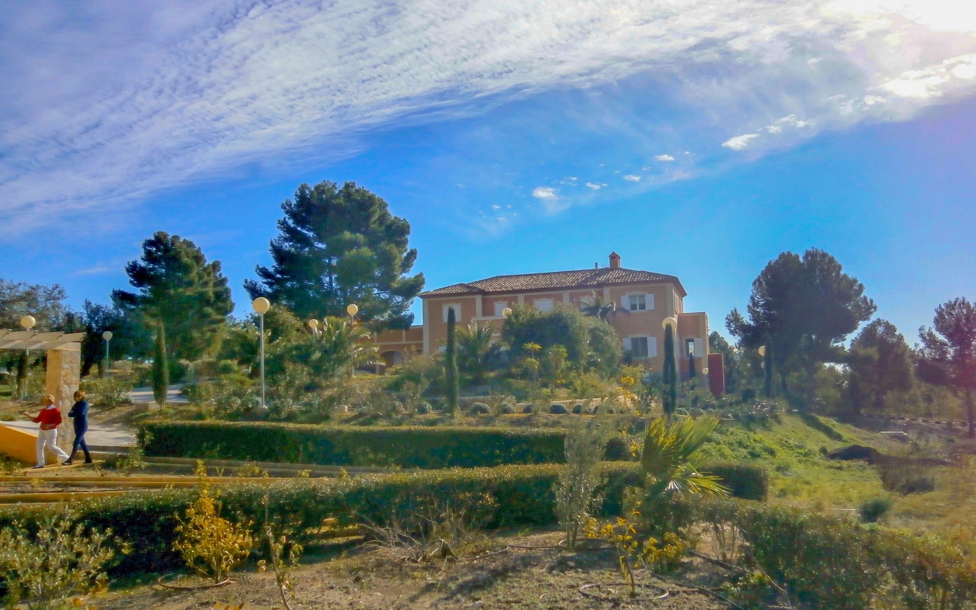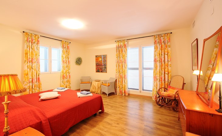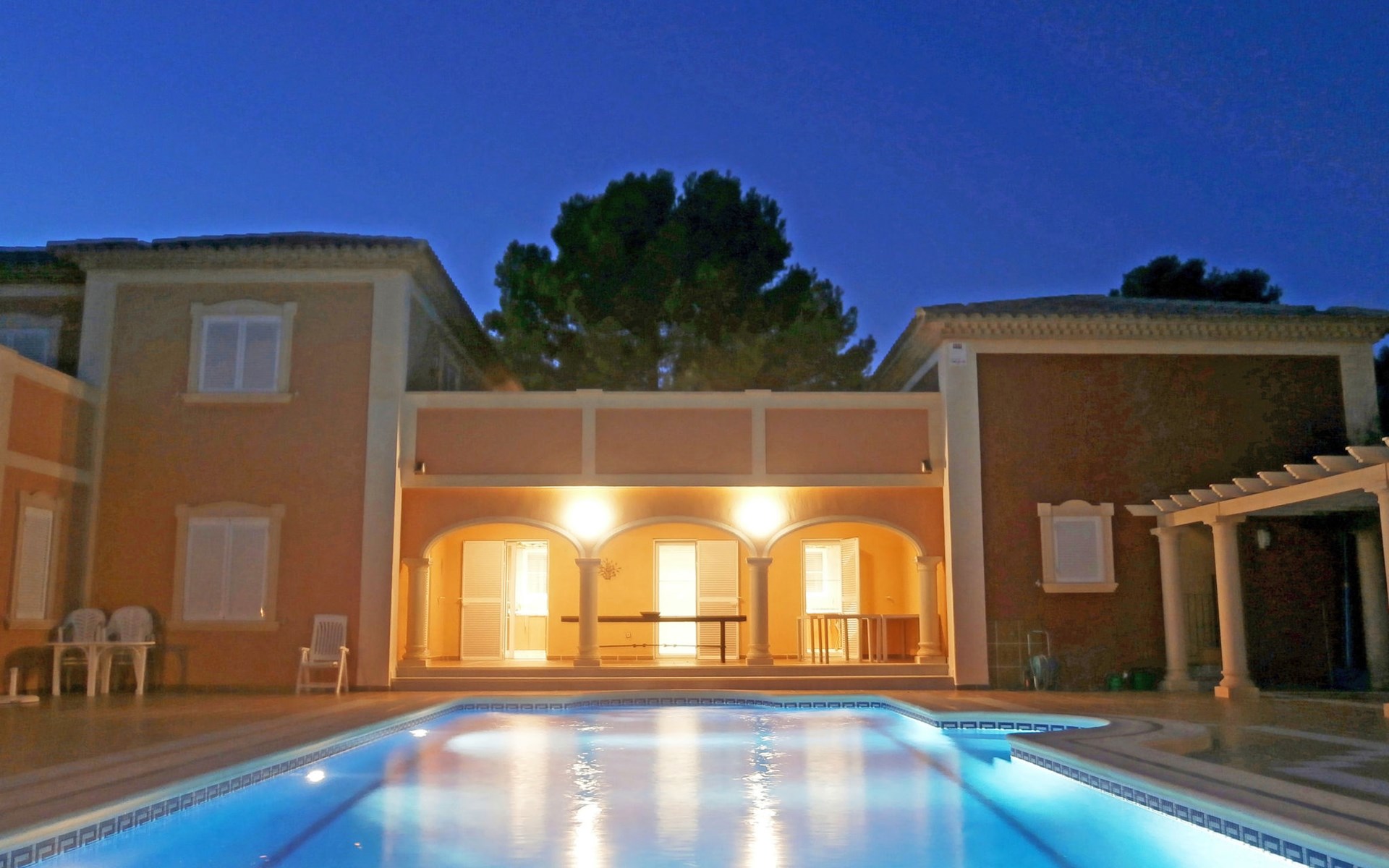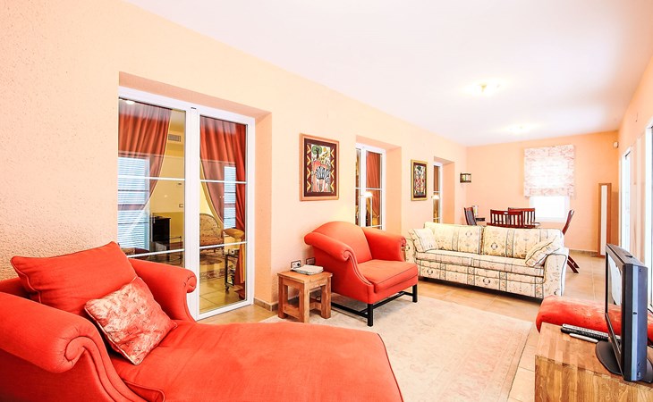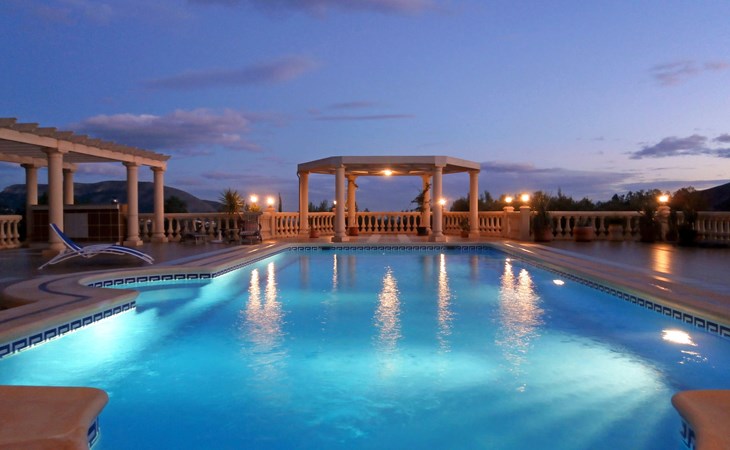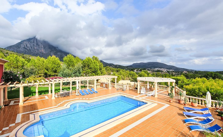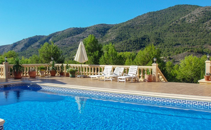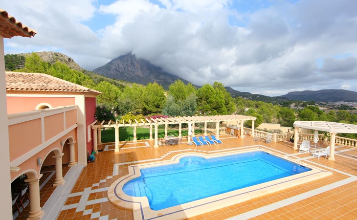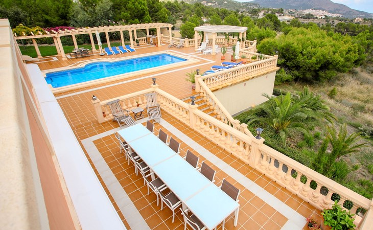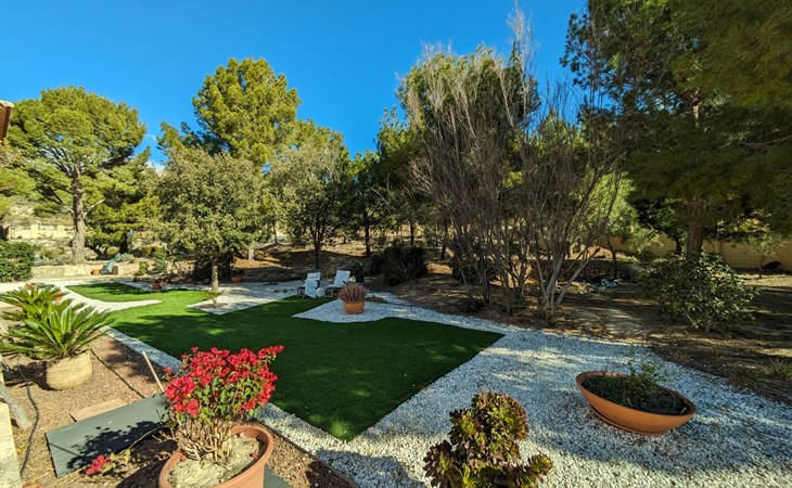 Finestrat 15 km von Benidorm: Sehr grosse, sehr moderne, luxuriöse Villa "Villa Orquideas", auf 3 Stockwerken, umgeben von Bäumen und Feldern. Ausserhalb des Ortes, 2 km vom Zentrum von Finestrat, alleinstehende, ruhige, sonnige Lage, 10 km vom Meer, 10 km vom Strand, im Grünen. Zur Alleinbenutzung: naturbelassenes Grundstück 20'000 m2 (eingezäunt), grosser terrassierter Garten mit Rasen 100 m2 Bäumen, Naturgarten 30'000 m2 (eingezäunt), Teich, Naturteich, Schwimmbad (12 x 100 - 200 cm tief, saisonale Verfügbarkeit: 01.Jan. - 31.Dez.) mit Innentreppe. Dusche/WC im Poolbereich, Sitzplatz (400 m2), Laube (20 m2), Gartenmöbel, Grill. Im Hause: Tischtennis. Parkplatz (für 4 Autos) auf dem Grundstück. Supermarkt 2 km, Restaurant 2 km, Bar 2 km, Bushaltestelle "Finestrat" 2 km, Bahnstation "Alicante-Benidorm" 13 m, Sandstrand "Benidorm" 10 km. Golfplatz (9 Loch) 4 km, Wanderwege ab Haus 50 m. Nahe gelegene Sehenswürdigkeiten: Aeropuerto Alicante 57 km, Aqualandia 20 km, Mundomar 20 km, Terra Mitica 18 km, Terra Natura 18 km, Alicante 41 km. Wandergebiete: Camino de Santiago del Sureste. Bitte beachten: Fahrzeug empfohlen. Babyausstattung auf Anfrage. Der Besitzer akzeptiert keine Jugendgruppen. Das Leitungswasser hat keine Trinkwasserqualität.