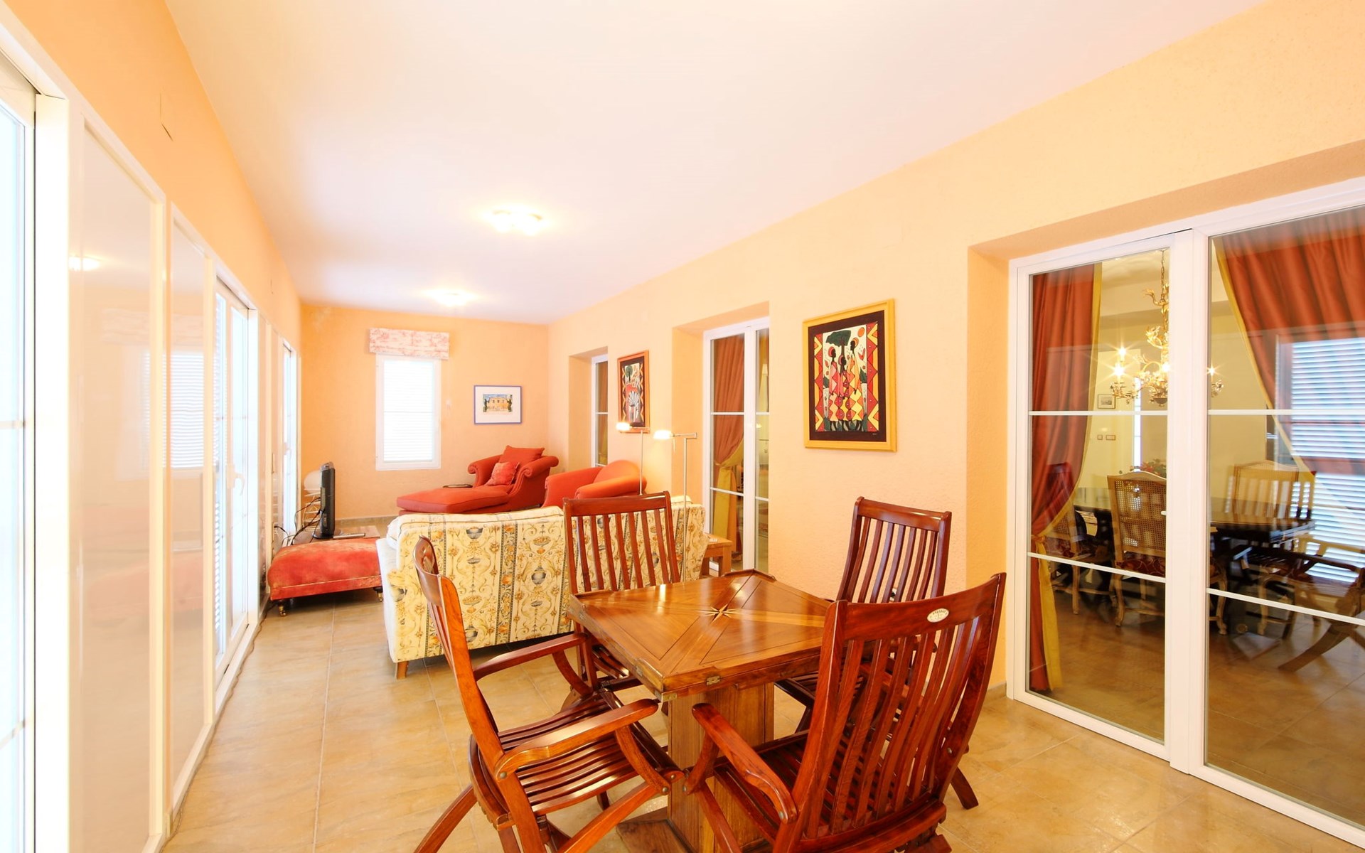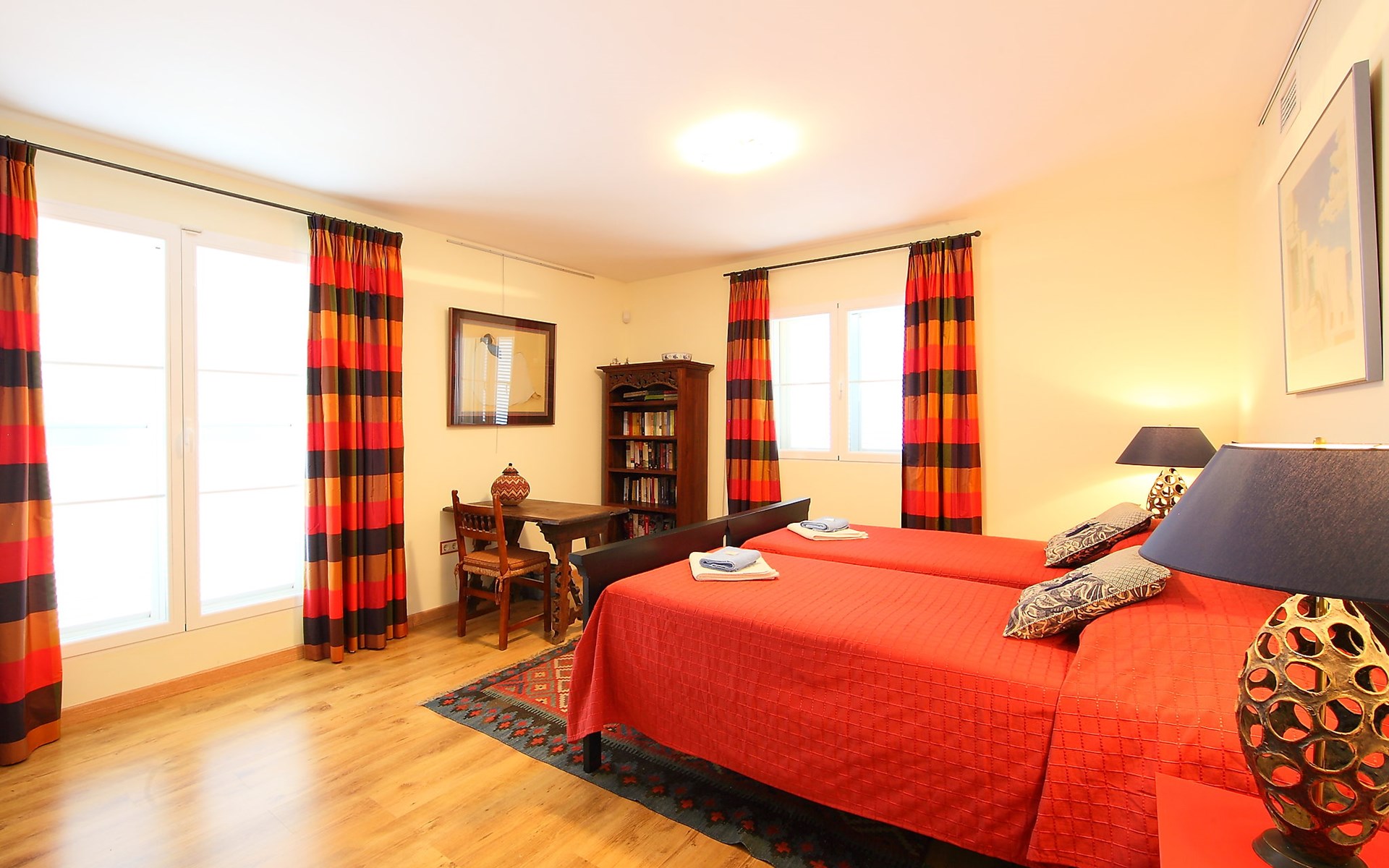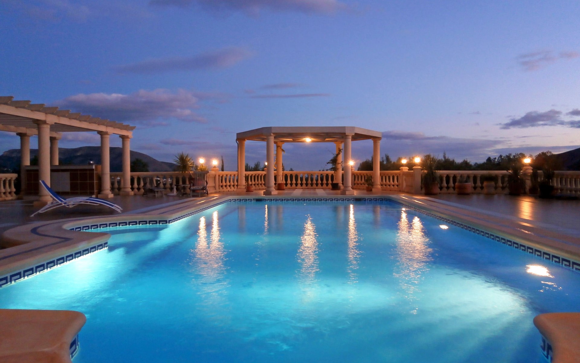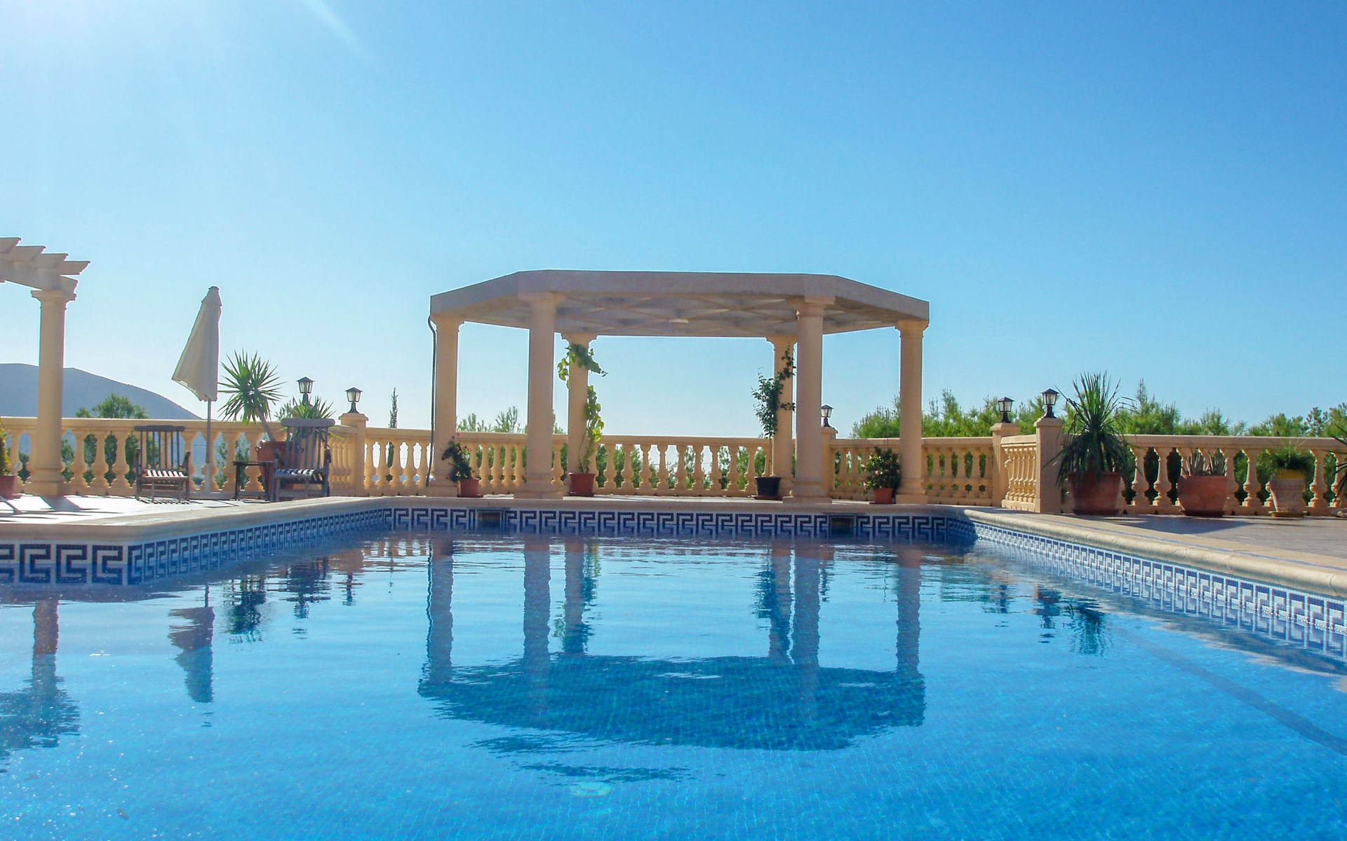 Finestrat 15 km von Benidorm: Sehr grosse, sehr moderne, luxuriöse Villa "Villa Orquideas", auf 3 Stockwerken, umgeben von Bäumen und Feldern. Ausserhalb des Ortes, 2 km vom Zentrum von Finestrat, alleinstehende, ruhige, sonnige Lage, 10 km vom Meer, 10 km vom Strand, im Grünen. Zur Alleinbenutzung: naturbelassenes Grundstück 20'000 m2 (eingezäunt), grosser terrassierter Garten mit Rasen 100 m2 Bäumen, Naturgarten 30'000 m2 (eingezäunt), Teich, Naturteich, Schwimmbad (12 x 100 - 200 cm tief, saisonale Verfügbarkeit: 01.Jan. - 31.Dez.) mit Innentreppe. Dusche/WC im Poolbereich, Sitzplatz (400 m2), Laube (20 m2), Gartenmöbel, Grill. Im Hause: Tischtennis. Parkplatz (für 4 Autos) auf dem Grundstück. Supermarkt 2 km, Restaurant 2 km, Bar 2 km, Bushaltestelle "Finestrat" 2 km, Bahnstation "Alicante-Benidorm" 13 m, Sandstrand "Benidorm" 10 km. Golfplatz (9 Loch) 4 km, Wanderwege ab Haus 50 m. Nahe gelegene Sehenswürdigkeiten: Aeropuerto Alicante 57 km, Aqualandia 20 km, Mundomar 20 km, Terra Mitica 18 km, Terra Natura 18 km, Alicante 41 km. Wandergebiete: Camino de Santiago del Sureste. Bitte beachten: Fahrzeug empfohlen. Babyausstattung auf Anfrage. Der Besitzer akzeptiert keine Jugendgruppen. Das Leitungswasser hat keine Trinkwasserqualität.