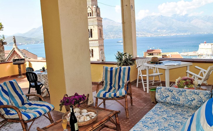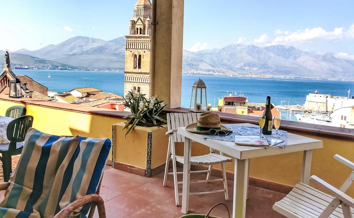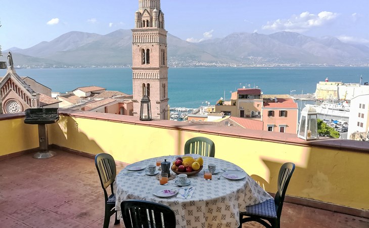 Golfo di Gaeta: Sehr gemütliches, historisches Appartementhaus "Al Campanile". Im Ortszentrum von Gaeta, zentrale, sonnige Lage, exzellente Lage: Absolut zentral und dennoch ruhig, 150 m vom Meer, 2.5 km vom Strand. Öffentliche Parkplätze auf der Strasse. Einkaufsgeschäft, Lebensmittelgeschäft, Supermarkt, Restaurant, Bar 350 m, Bushaltestelle 300 m, Sandstrand "Serapo" 2.5 km. Nahe gelegene Sehenswürdigkeiten: Formia 5 km, Itri 10 km, Sperlonga 18 km, Lido Di Fondi 20 km, San Felice Circeo 30 km, Sabaudia 45 km. Wandergebiete: Parco Monte Orlando 2 km. Jugendgruppen nur auf Anfrage. Die Wohnung befindet sich in einer für den Verkehr begrenzt zugänglichen Zone (ZTL). Parken: im öffentlichen Bereich vor der Ankunft anzufordern. Von der Straße gibt es 10 Stufen hinunter bis zur Haustür. Anreise nach 20.00 Uhr gegen Aufpreis von Euro 30.