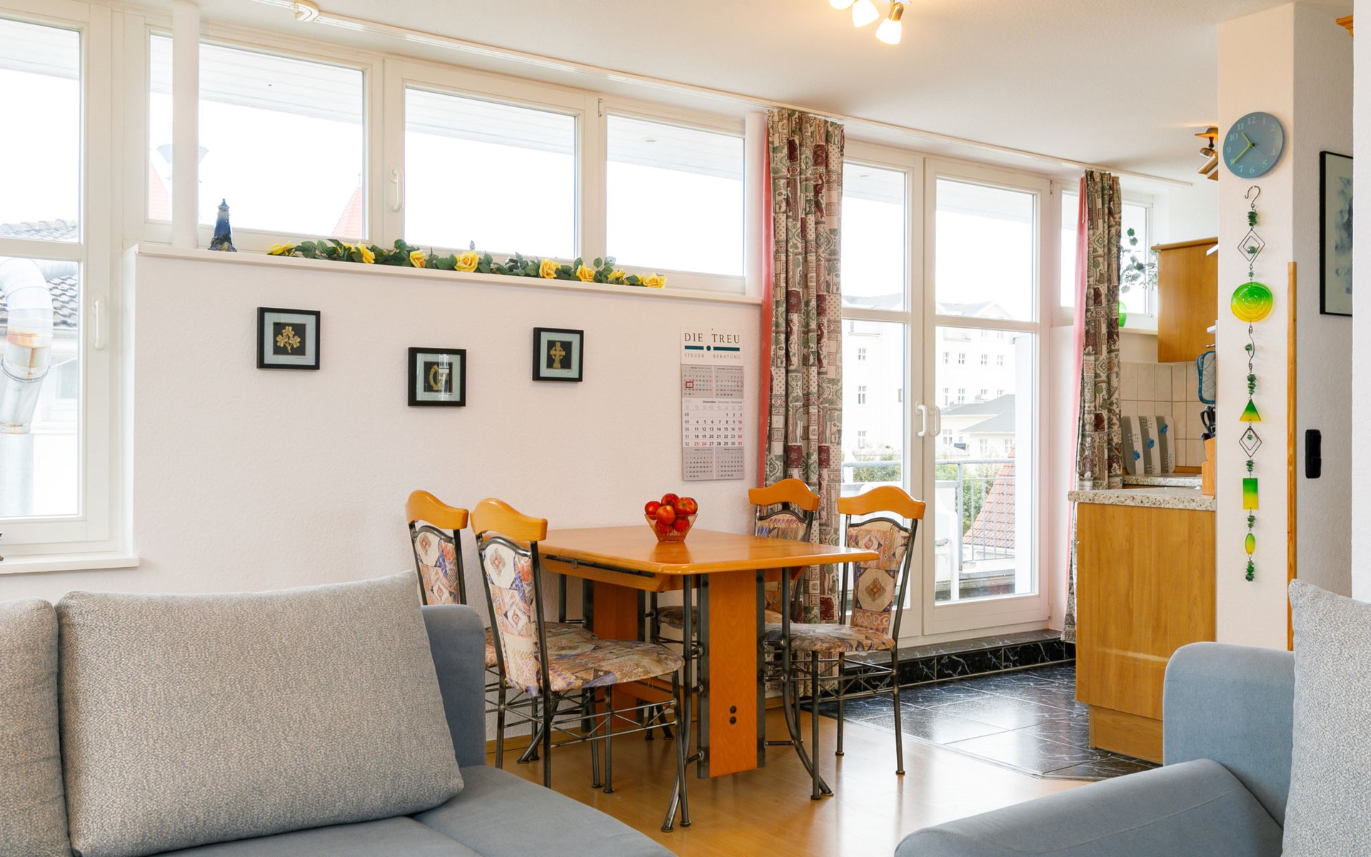 Appartementhaus "Dünenresidenz", auf 2 Stockwerken. Im Ort Zinnowitz, vom Meer, 200 m vom Strand. Im Hause: Einstellraum für Fahrräder, Zentralheizung. Gemeinschaftsgarage. Supermarkt 350 m, Restaurant 20 m, Bäckerei 100 m, Café 100 m, Bushaltestelle 100 m, Bahnstation 1.5 km, Sandstrand 200 m, Thermalbad "Bernsteintherme" 650 m. Jacht-Hafen 2.5 km, Golfplatz (18 Loch) 25 km, Surfschule 650 m, Tennis 1 km, Minigolf.