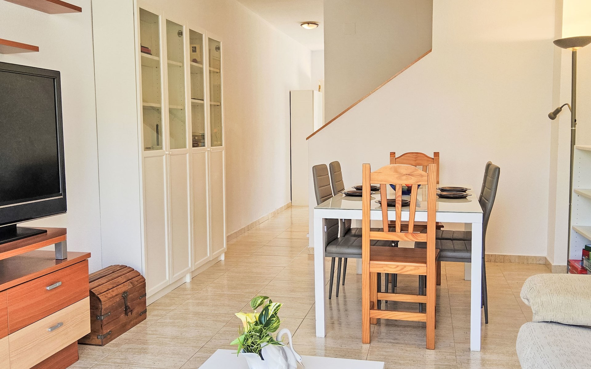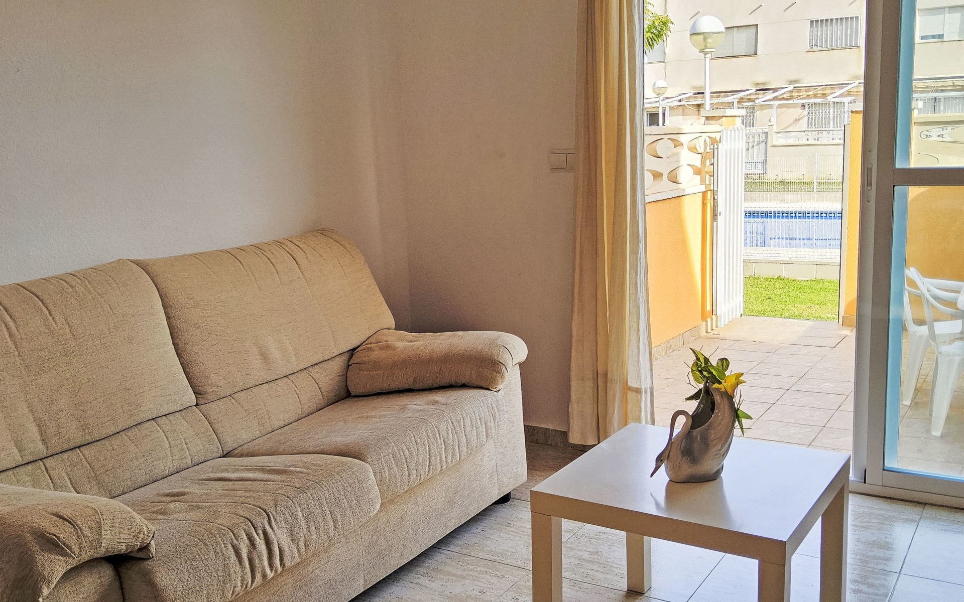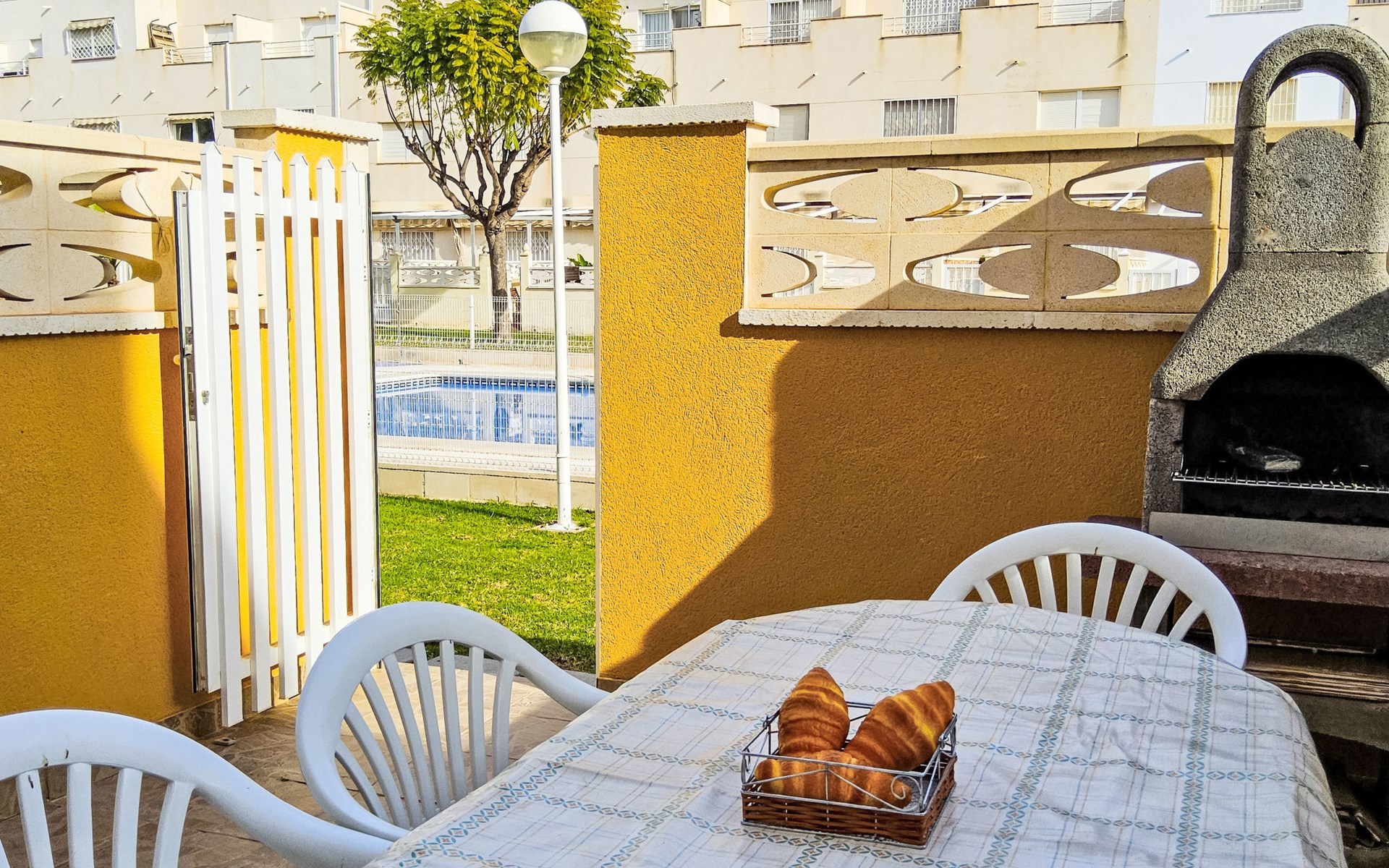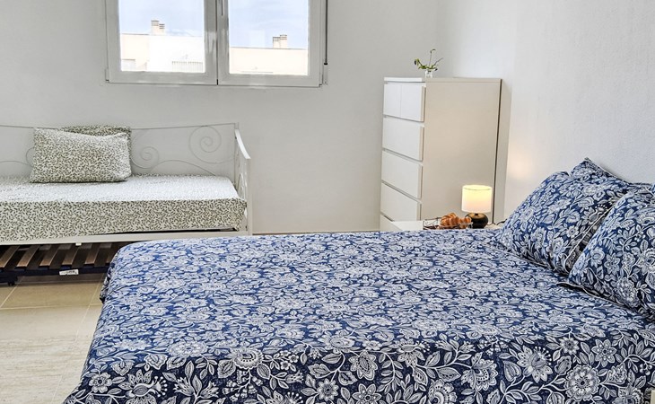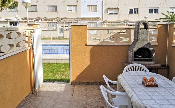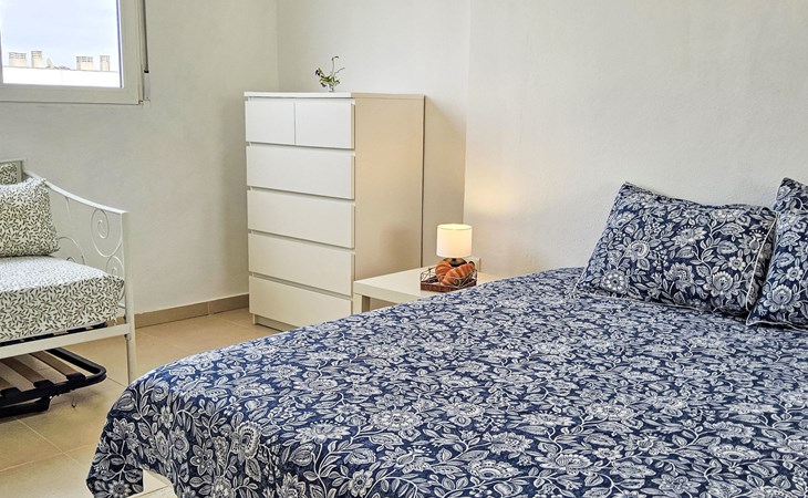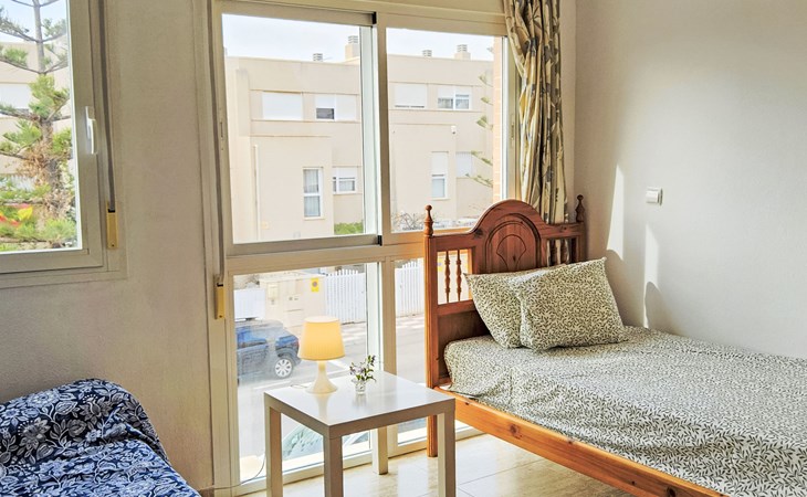 La Almadraba 2 km von Campello: Das Zimmer im zweiten Stock hat keine Tür. Einfaches Reihenhaus "La Almadraba", auf 3 Stockwerken. Im Ort, 2 km vom Zentrum von El Campello, sonnige Lage, 500 m vom Meer, 500 m vom Strand. Zur Mitbenutzung: Garten (eingezäunt) mit Rasen, Schwimmbad (7 x 17 m, 60 - 190 cm tief, saisonale Verfügbarkeit: 01.Jan. - 31.Dez.). Aussendusche. Supermarkt 2 km, Einkaufszentrum 2 km, Restaurant, Bar 300 m, Bushaltestelle "El Campello" 750 m, Bahnstation "Pueblo Español" 150 m. Nahe gelegene Sehenswürdigkeiten: Aqualandia Benidorm 34 km, Terra Mitica Benidorm 32 km, Alicante 17 km, Aeropuerto 29 km, Mundomar Benidorm 34 km, Terra Natura Benidorm 32 km. Bitte beachten: Fahrzeug empfohlen. Der Besitzer akzeptiert keine Jugendgruppen. Die Nachbarschaft ist sehr lärmempfindlich. Ruhe und gutes Benehmen wird erwartet.