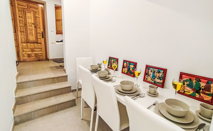 Ausgezeichnete Lage, 100 m vom Strand von Villajoyosa entfernt altes, einfaches Reihenhaus "Colores al Mar", 46 m.ü.M., auf 3 Stockwerken, renoviert im Jahre 2021. Im Ort, 500 m vom Zentrum von villajoyosa, zentrale, belebte, sonnige Lage, vom Meer, 100 m vom Strand, in einer Fussgängerzone. Öffentliche Parkplätze auf der Strasse. Supermarkt 500 m, Restaurant 100 m, Bar, Bushaltestelle "Villajoyosa-Alicante-Benidorm" 600 m, Bahnstation "Villajoyosa-Alicante-Benidor," 500 m. Golfplatz (18 Loch) 11 km, Wanderwege ab Haus 300 m. Nahe gelegene Sehenswürdigkeiten: Aqualandia Benidorm 21 km, Mundomar Benidorm 21 km, Terramitica Benidorm 15 km, Terra Natura Benidorm 15 km, Alicante 35 km, Aeropuerto Alicante 52 km. Bitte beachten: kein Fahrstuhl vorhanden. Babyausstattung auf Anfrage, Für Kleinkinder nicht geeignet. Objekt geeignet für 4 Erwachsene Jugendgruppen nur auf Anfrage. Die Wohnung befindet sich in einer für den Verkehr begrenzt zugänglichen Zone (ZTL).