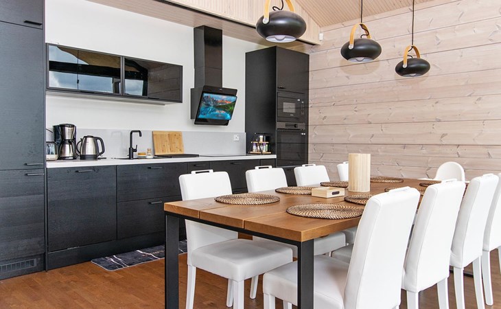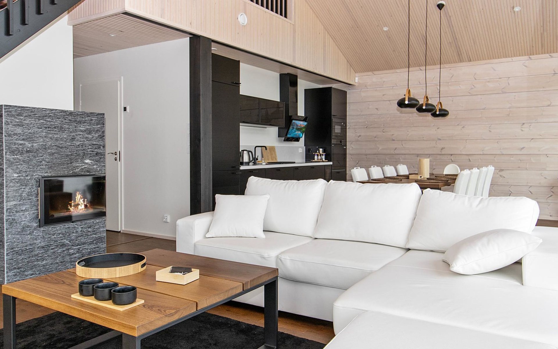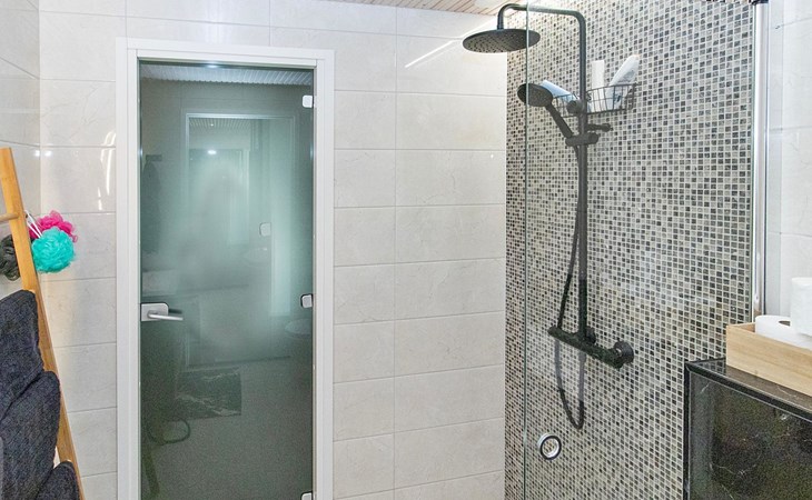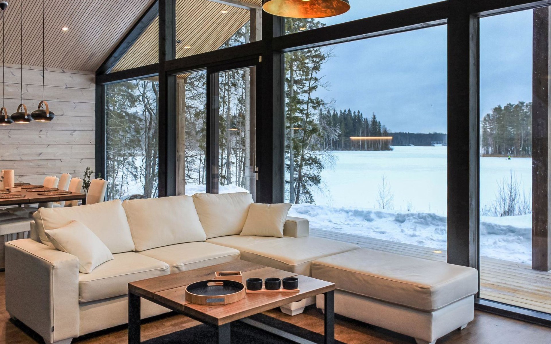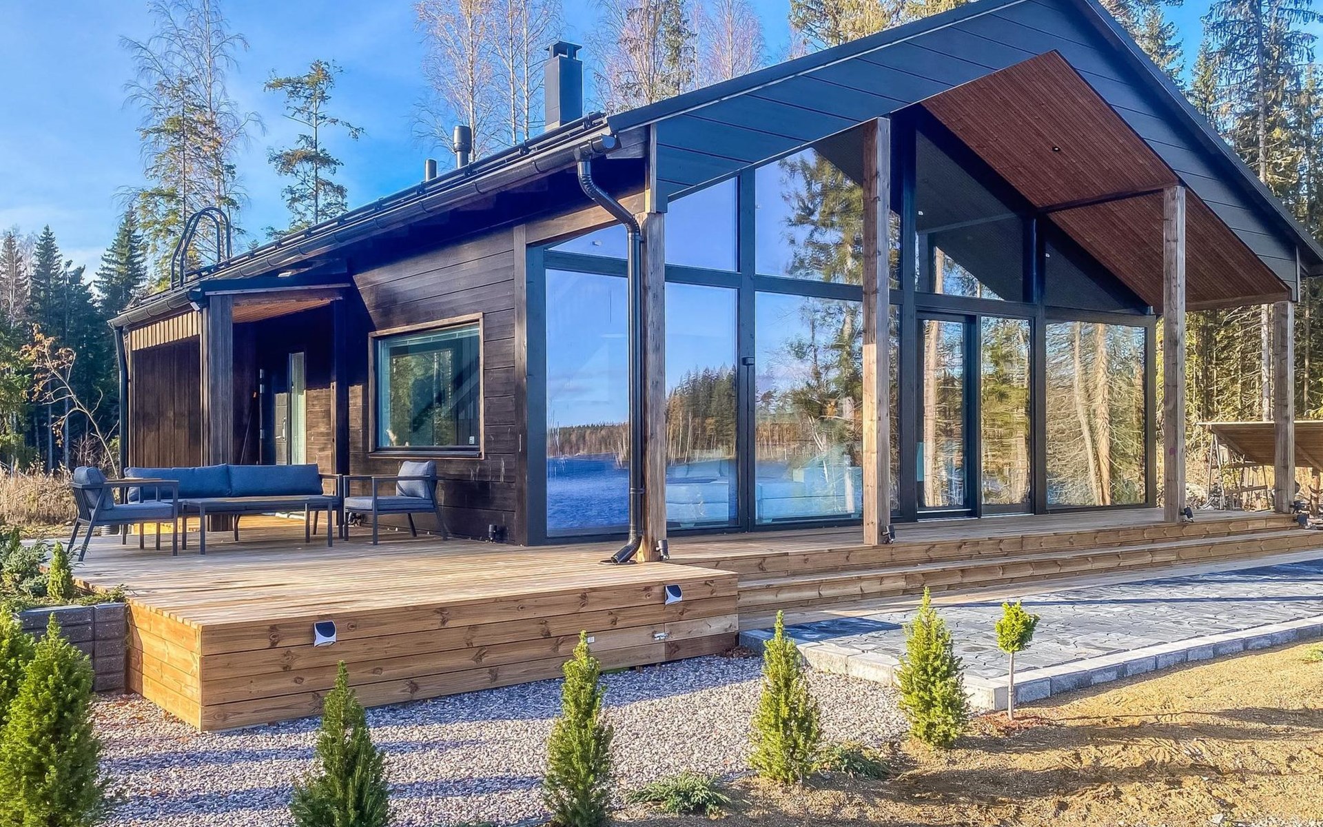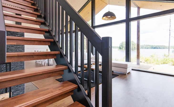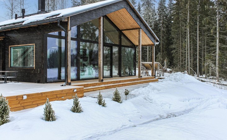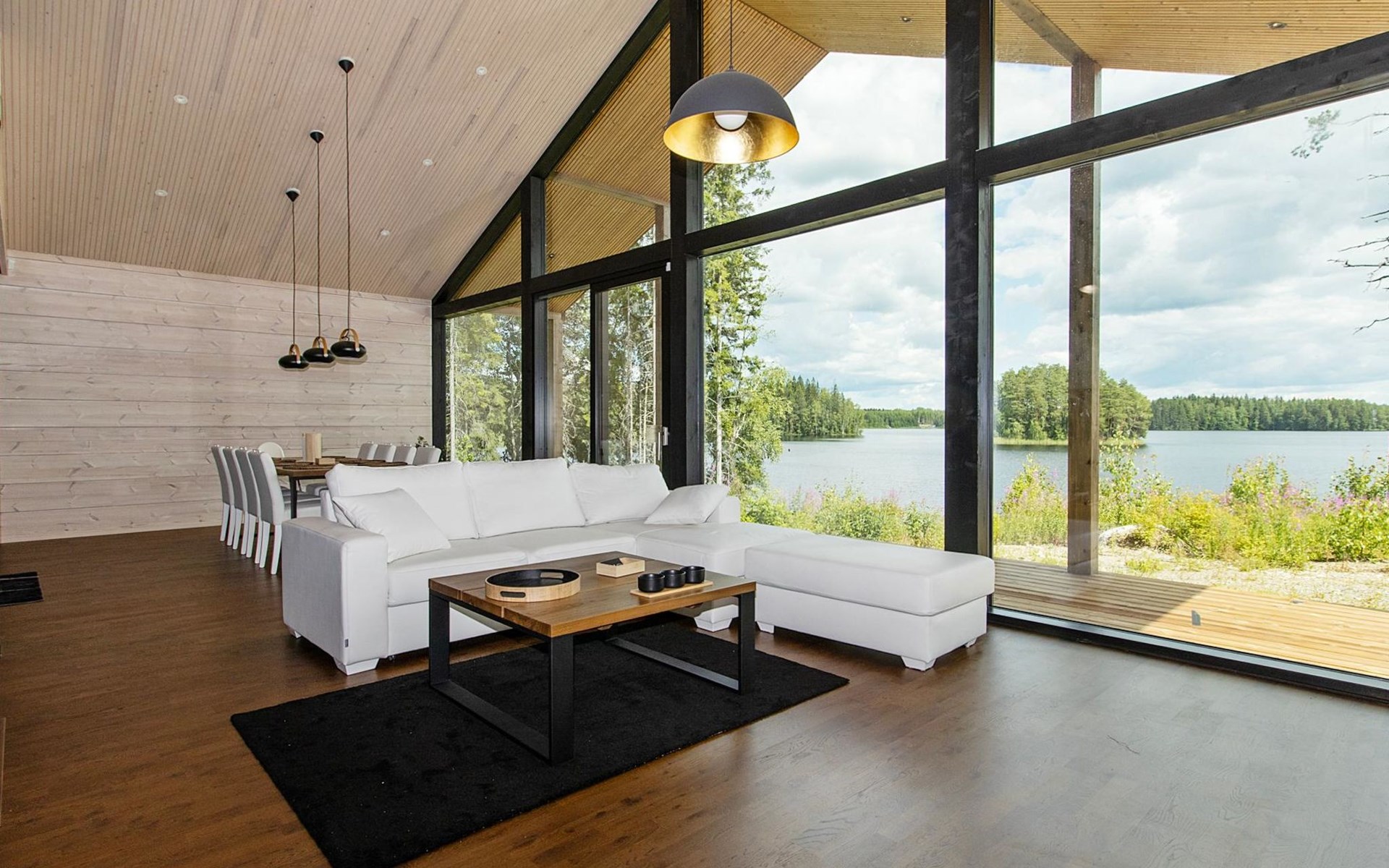 There is a large landscape window which gives a wonderful view of the fishy Lake Sääjärvi. The well-equipped living room and kitchen are open to the ceiling. In addition there are 2 spacious bedrooms on the ground floor. One with double bed (160 cm) and other with bunk bed (2 x 80 cm). Upstairs a large low loft with 2 beds (80 cm). In addition an utility room.