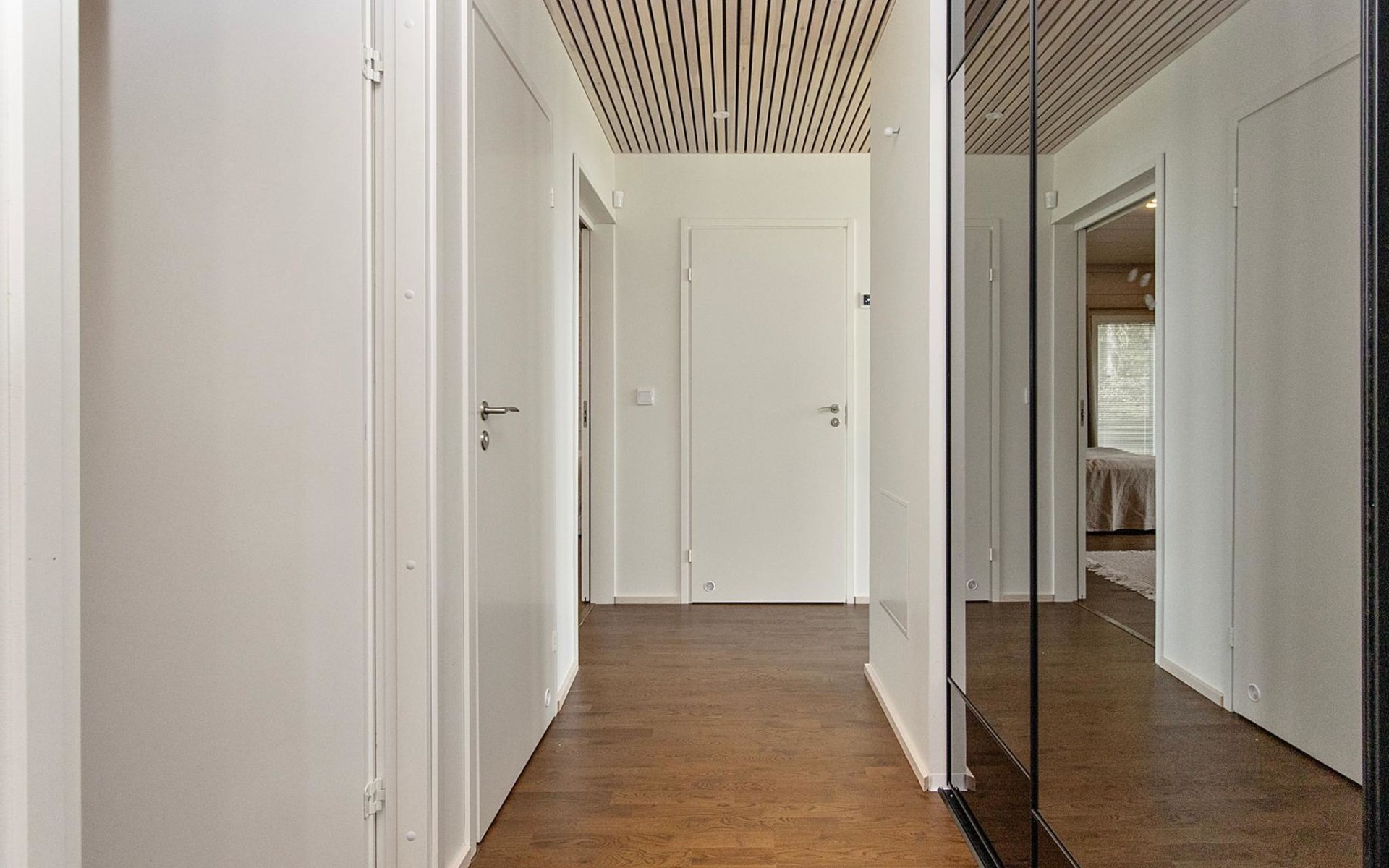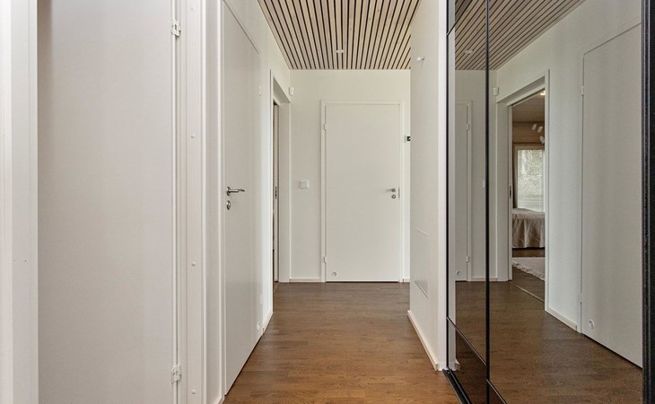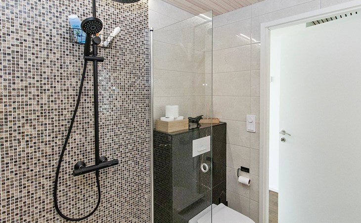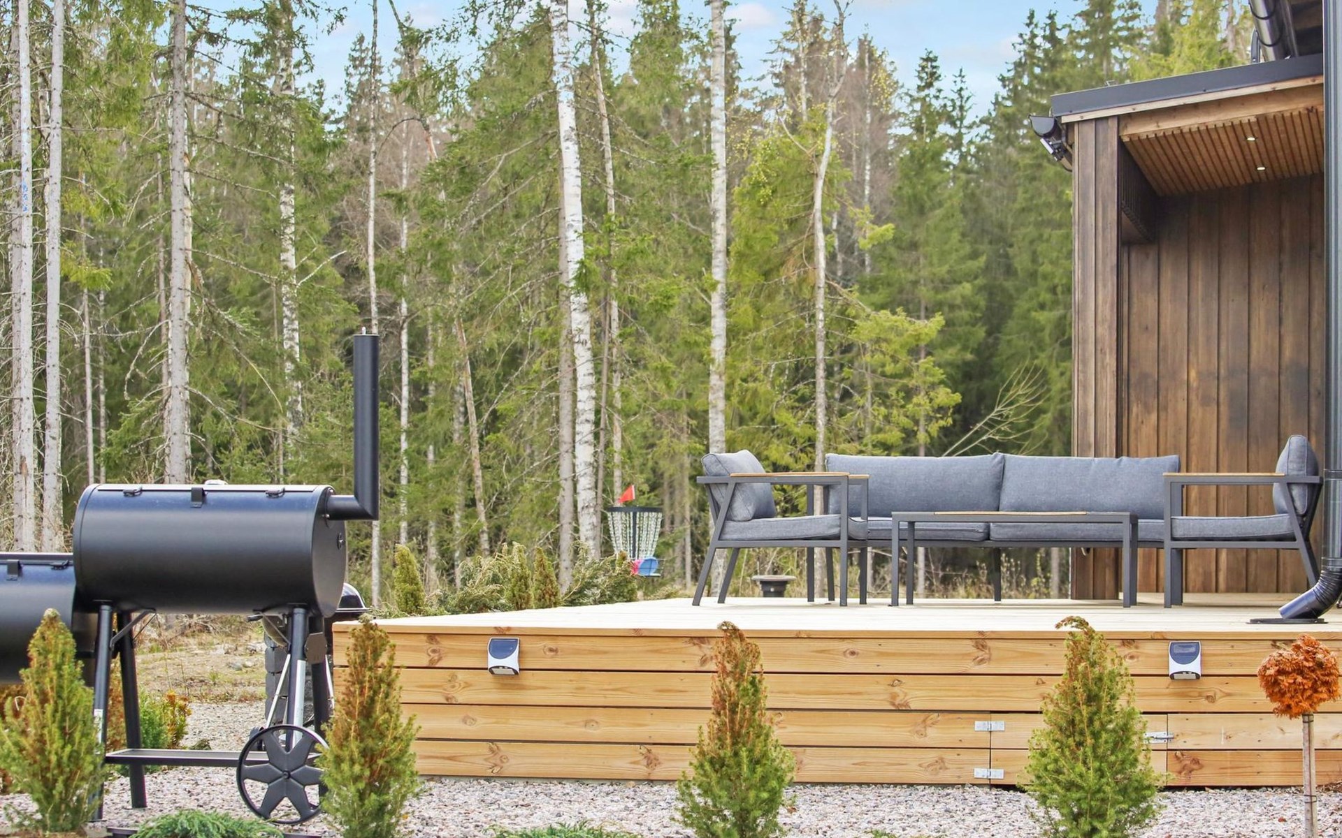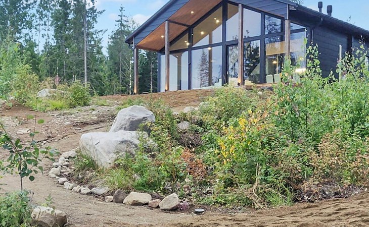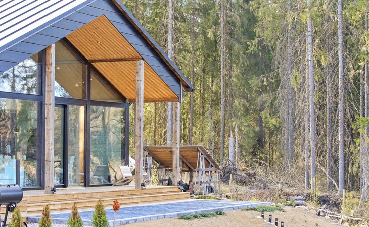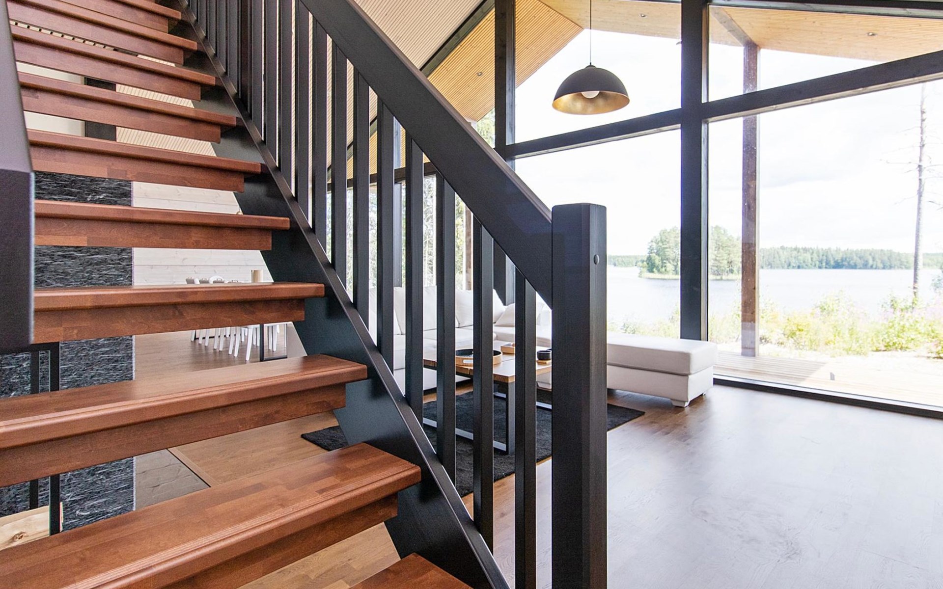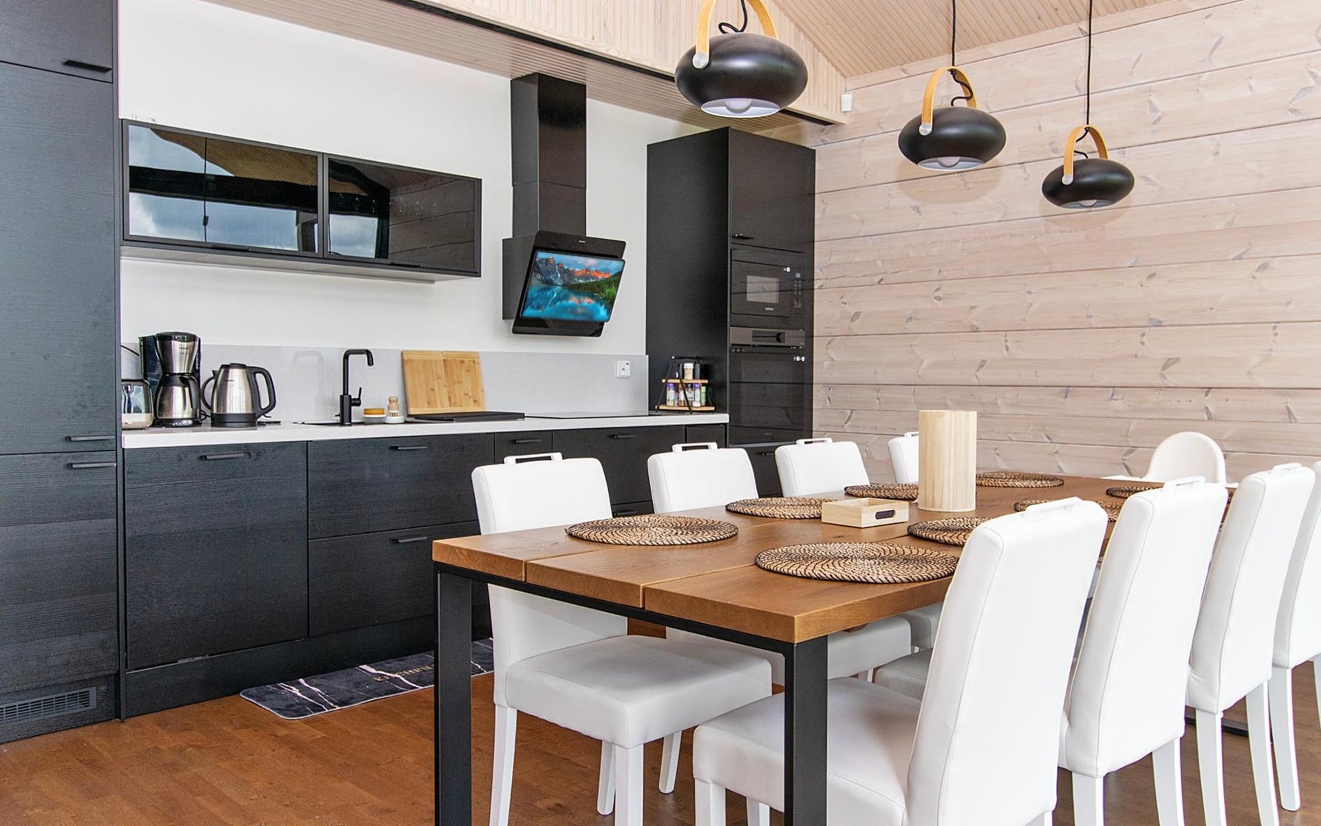 There is a large landscape window which gives a wonderful view of the fishy Lake Sääjärvi. The well-equipped living room and kitchen are open to the ceiling. In addition there are 2 spacious bedrooms on the ground floor. One with double bed (160 cm) and other with bunk bed (2 x 80 cm). Upstairs a large low loft with 2 beds (80 cm). In addition an utility room.