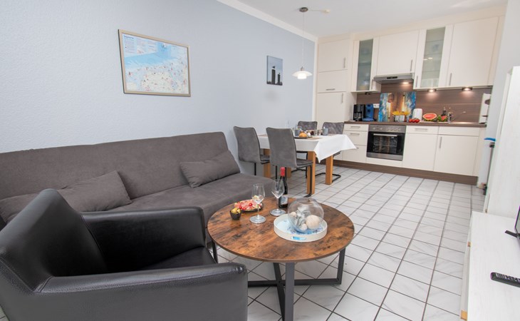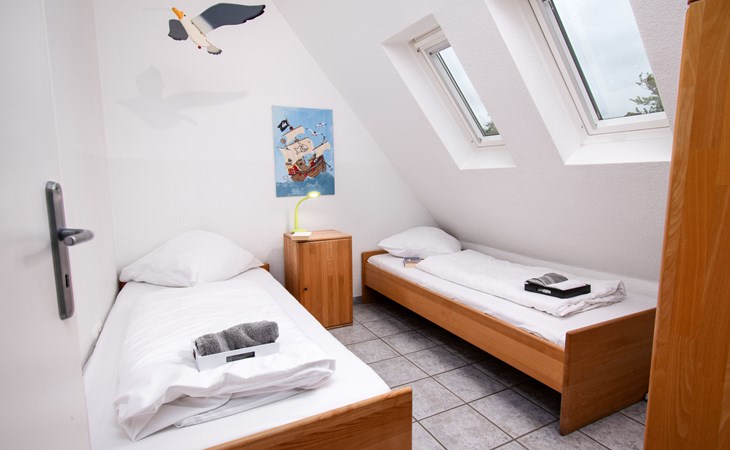 Mehrfamilienhaus. Im Ort, 850 m vom Meer, 900 m vom Strand. Im Hause: Zentralheizung. Parkplatz auf dem Grundstück. Supermarkt 600 m, Restaurant 600 m, Bäckerei 500 m, Café 600 m, Bushaltestelle 100 m, Bahnstation "Norddeich" 1.5 km, Fähre 1.6 km, Sandstrand 900 m, Freibad 14 km, Hallenbad 700 m. Golfplatz (18 Loch) 8 km, Surfschule 900 m, Tennis 2 km, Minigolf 700 m.