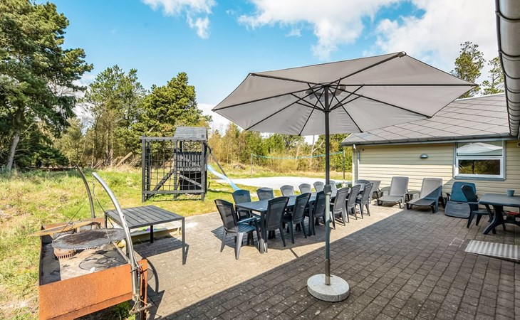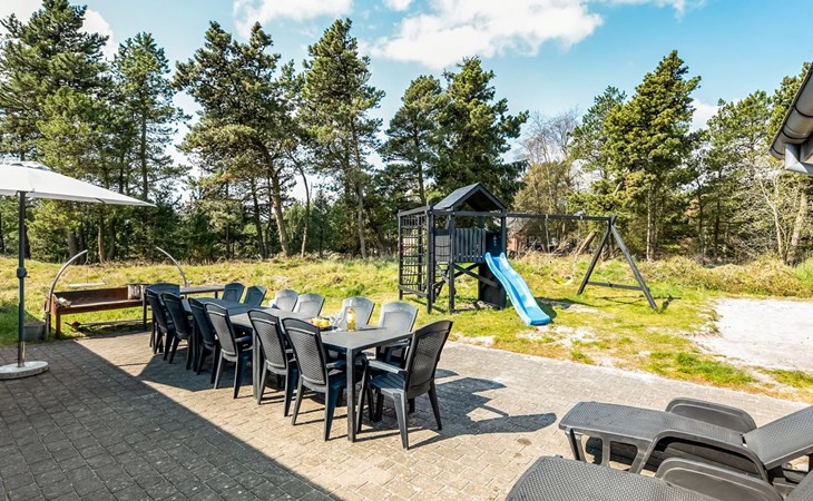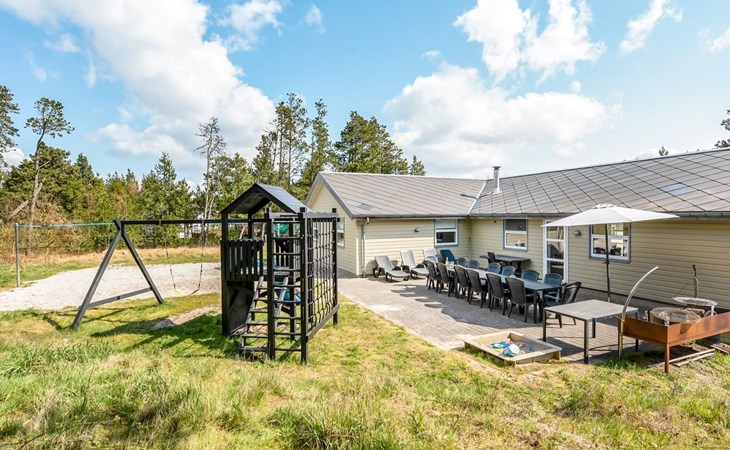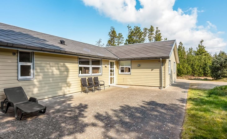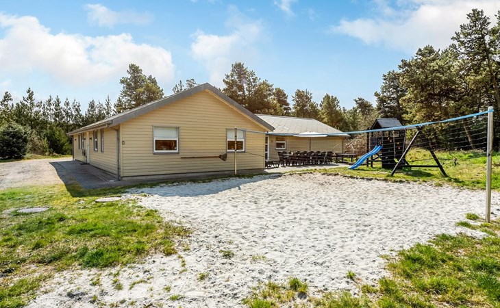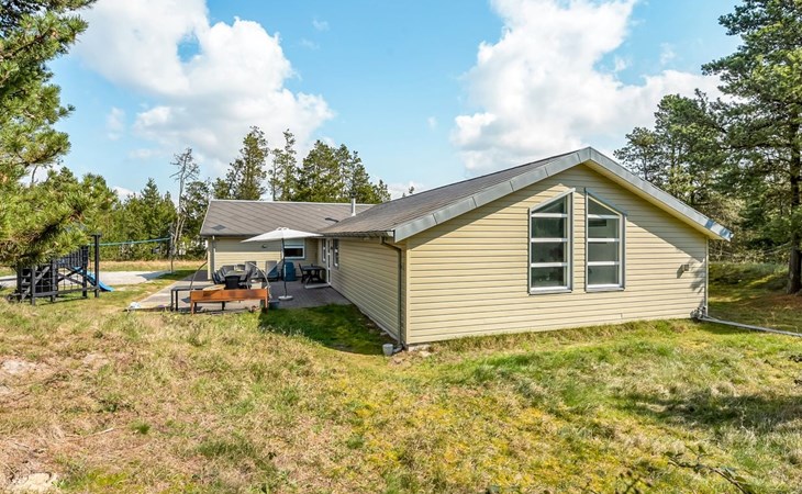 Einfamilienhaus, Baujahr 2005. 1.6 km vom Meer. Zur Alleinbenutzung: naturbelassenes Grundstück 2'660 m2, Hallenbad (3 x 5 m, 19 m2, 130 - 130 cm tief). Kinderspielplatz (Schaukel). Im Hause: Sauna, Waschmaschine, Wäschetrockner. Parkplatz beim Haus. E-Ladestation. Lebensmittelgeschäft 1.7 km. Golfplatz 100 m. Der Besitzer akzeptiert keine Jugendgruppen.