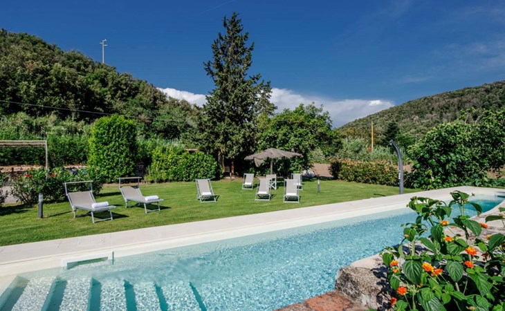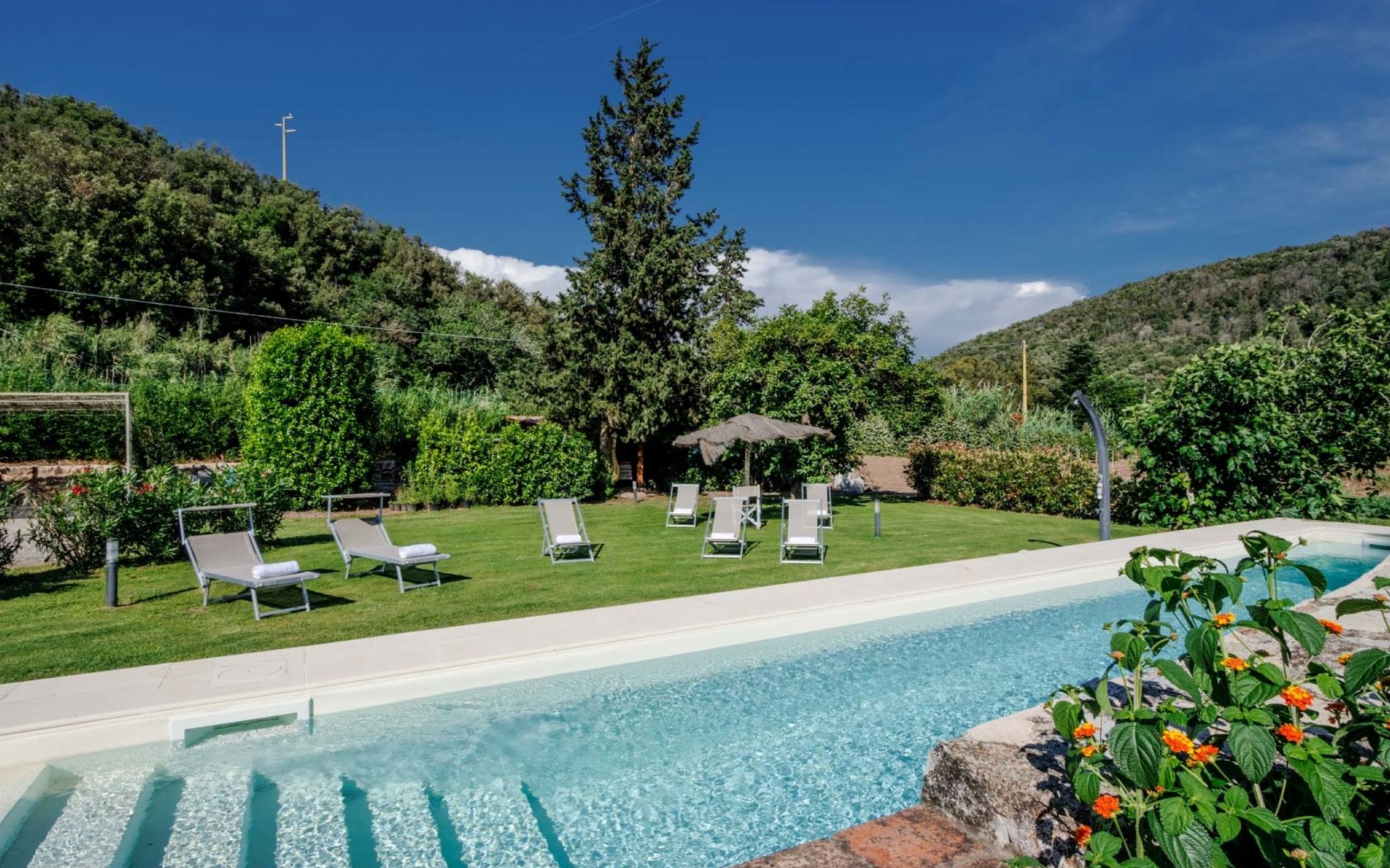 Sehr schöne, freistehende Villa "Serena", renoviert im Jahre 2023. 2 km vom Zentrum von Rio Marina, ruhige, sonnige Lage, 2 km vom Meer, 3 km vom Strand, im Grünen. Zur Alleinbenutzung: grosser, schöner, gepflegter Garten 2'000 m2 (eingezäunt) mit Blumen und Bäumen, Schwimmbad (9 x 3 m, saisonale Verfügbarkeit: 01.Apr. - 15.Okt.) mit Innentreppe. Aussendusche, Gartenmöbel. Im Hause: Dachterrasse, Fahrräder vorhanden (extra). Parkplatz (überdacht) auf dem Grundstück. Einkaufsgeschäft 1.5 km, Supermarkt 400 m, Restaurant 1.5 km, Bar 2 km, Fahrradverleih 1.5 km, Bushaltestelle 750 m, Fähre "Rio Marina" 2 km, Sandstrand "Ortano" 3 km. Tennis 500 m. Nahe gelegene Sehenswürdigkeiten: Porto Azzurro 10 km, Cavo 8 km, Portoferraio 16 km, La Biodola 20 km, Capoliveri 15 km. Jugendgruppen nur auf Anfrage.