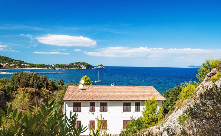 Zweifamilienhaus "la Roccia". 4 Wohnungen im Ferienhaus. 500 m vom Zentrum von Cavo, ruhige, sonnige Lage, 50 m vom Meer, 50 m vom Strand, Strasse zu überqueren. Zur Mitbenutzung: Garten mit Rasen, Parkplatz beim Haus. Lebensmittelgeschäft 500 m, Supermarkt 3 km, Restaurant 500 m, Bushaltestelle 210 m, Sandstrand 100 m (klein). Nahe gelegene Sehenswürdigkeiten: Rio Marina 7 km, Porto Azzurro 18 km, Portoferraio 25 km. Bitte beachten: Be- und Entladen am Ferienhaus möglich.