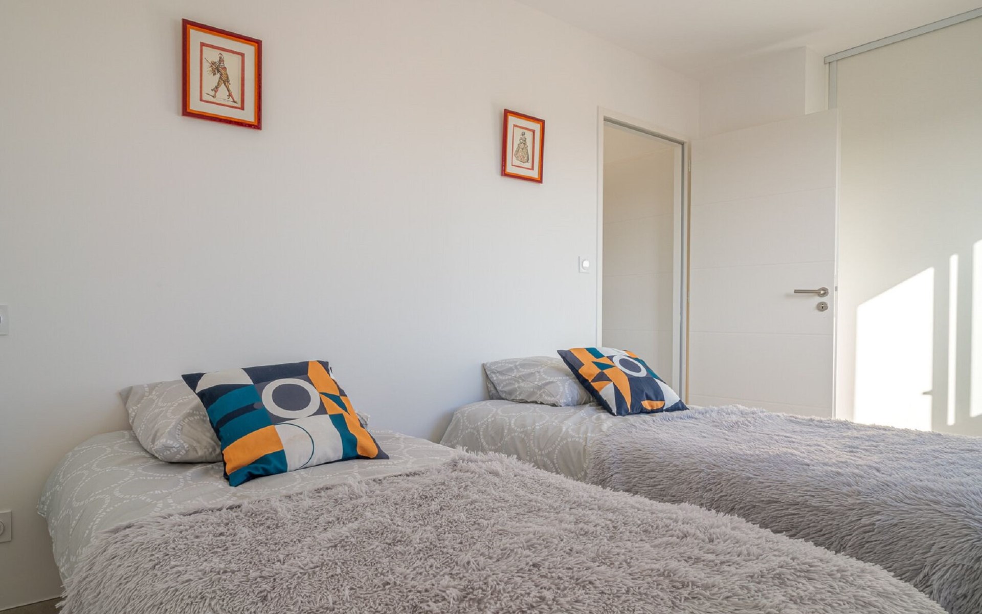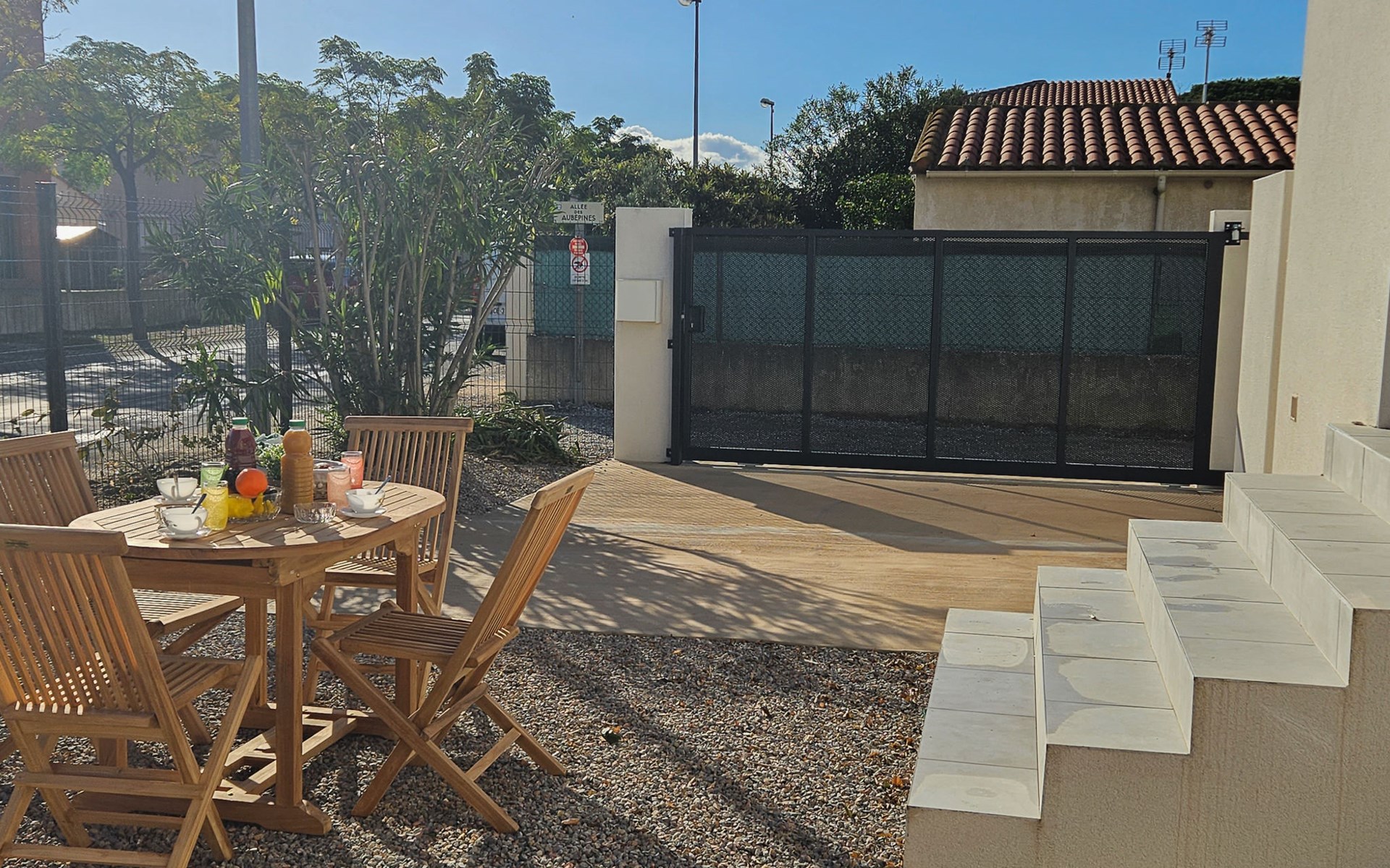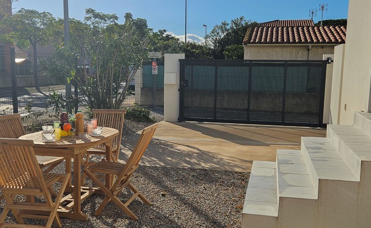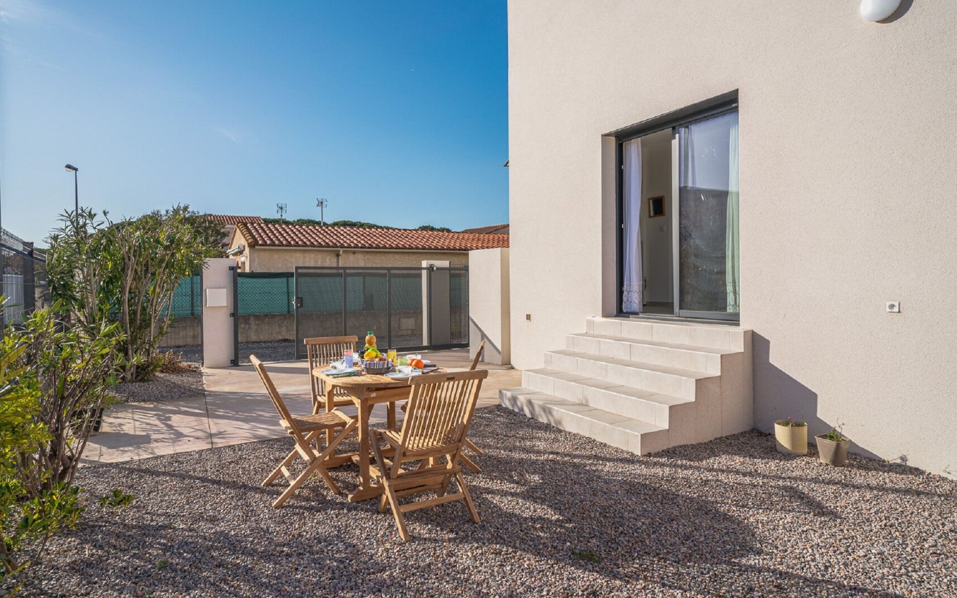 Sainte Marie La Mer: Einfamilienhaus "Aubépines", auf 2 Stockwerken, Baujahr 2023. Im Ortszentrum von Sainte Marie La Mer, in einem Wohnquartier, exzellente Lage: Absolut zentral und dennoch ruhig, 300 m vom Meer, 300 m vom Strand. Zur Alleinbenutzung: Terrasse (70 m2), Gartenmöbel. Wäschewechsel täglich. Handtuchwechsel täglich. Wohnungsreinigung täglich. Fussweg (4 Stufen) bis zum Haus. Parkplatz (für 2 Autos). Einkaufsgeschäft, Lebensmittelgeschäft, Restaurant, Bar, Bäckerei, Café 500 m, Bushaltestelle 150 m, Bahnstation "Perpignan" 15 km, Sandstrand 300 m, Tauchzentrum 20 km, Freibad 8 km, Hallenbad 8 km. Sporthafen 2 km, Golfplatz (18 Loch) 15 km, Reitstall 1 km. Nahe gelegene Sehenswürdigkeiten: Canet Plage 8 km, Perpignan 15 km, Collioure 30 km, Espagne 35 km, Barcelone 200 km, Andorre 180 km. Bekannte Seen in der Umgebung sind gut erreichbar: Villeneuve de la Raho 20 m, St Jean Pla de Corts 40 km, Gorges du Gouleyrous 42 km. Bitte beachten: Fahrzeug empfohlen. Die Schlüsselübergabe findet bei der Agentur INTERHOME in Canet statt, 8 km.