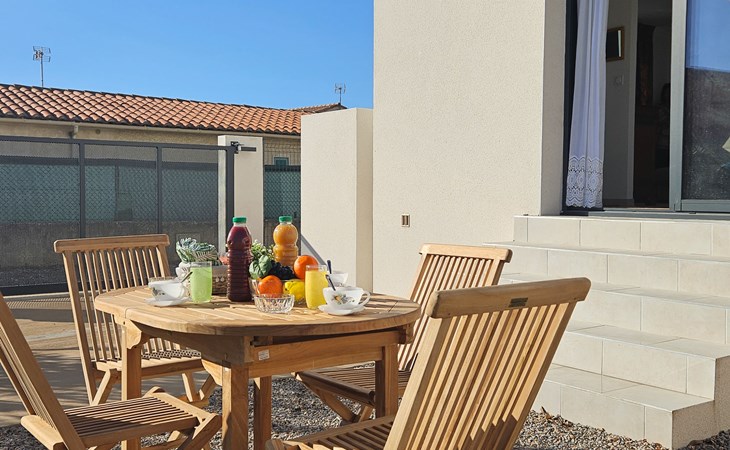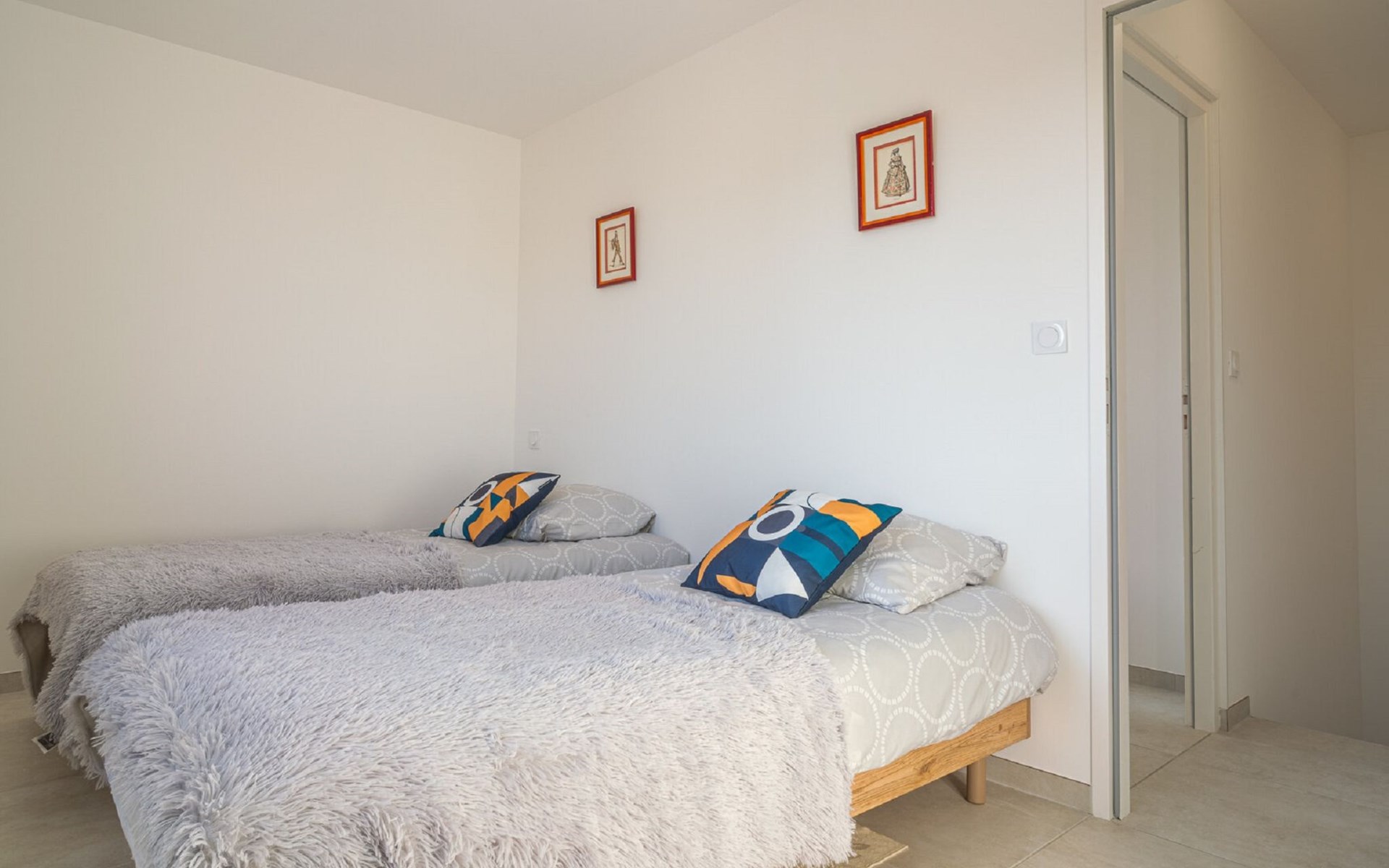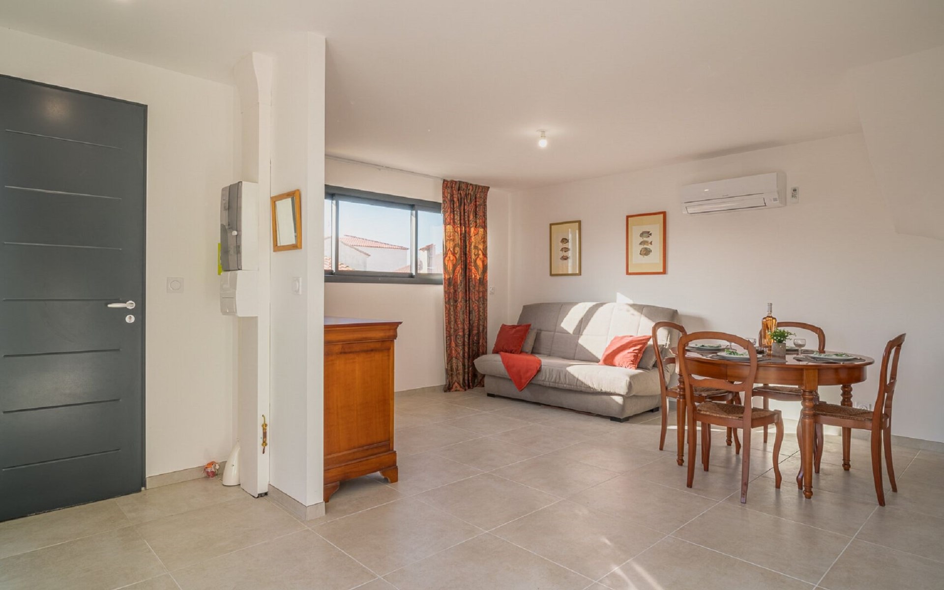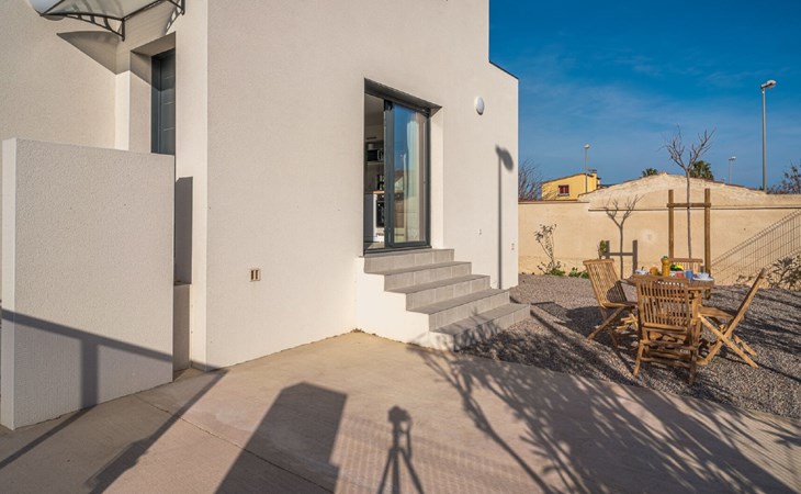 Sainte Marie La Mer: Einfamilienhaus "Aubépines", auf 2 Stockwerken, Baujahr 2023. Im Ortszentrum von Sainte Marie La Mer, in einem Wohnquartier, exzellente Lage: Absolut zentral und dennoch ruhig, 300 m vom Meer, 300 m vom Strand. Zur Alleinbenutzung: Terrasse (70 m2), Gartenmöbel. Wäschewechsel täglich. Handtuchwechsel täglich. Wohnungsreinigung täglich. Fussweg (4 Stufen) bis zum Haus. Parkplatz (für 2 Autos). Einkaufsgeschäft, Lebensmittelgeschäft, Restaurant, Bar, Bäckerei, Café 500 m, Bushaltestelle 150 m, Bahnstation "Perpignan" 15 km, Sandstrand 300 m, Tauchzentrum 20 km, Freibad 8 km, Hallenbad 8 km. Sporthafen 2 km, Golfplatz (18 Loch) 15 km, Reitstall 1 km. Nahe gelegene Sehenswürdigkeiten: Canet Plage 8 km, Perpignan 15 km, Collioure 30 km, Espagne 35 km, Barcelone 200 km, Andorre 180 km. Bekannte Seen in der Umgebung sind gut erreichbar: Villeneuve de la Raho 20 m, St Jean Pla de Corts 40 km, Gorges du Gouleyrous 42 km. Bitte beachten: Fahrzeug empfohlen. Die Schlüsselübergabe findet bei der Agentur INTERHOME in Canet statt, 8 km.