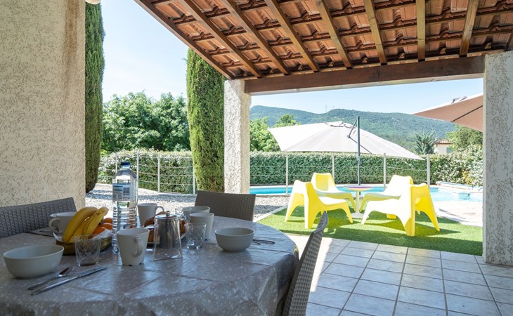 Freistehendes Einfamilienhaus "Bois d'Astros". 1.5 km vom Zentrum von Rocbaron, 38 km vom Meer. Zur Alleinbenutzung: naturbelassenes Grundstück 5'000 m2 (eingezäunt), Schwimmbad (10 x 5 m, 120 - 200 cm tief, saisonale Verfügbarkeit: 01.Mai. - 31.Okt.). Poolhaus mit Kühlschrank, Feuerstelle, Parkplatz (für 3 Autos) auf dem Grundstück. Lebensmittelgeschäft 1.4 km, Supermarkt 1.4 km, Restaurant 3 km, Bushaltestelle 1 km, Bahnstation "Puget Ville" 10 km, Sandstrand 38 km, See Lac de Carrés 31 km. Golfplatz (18 Loch) 20 km. Nahe gelegene Sehenswürdigkeiten: Brignoles 15 km, Forcalquieret 5 km, Gareoult 4 km, Circuit Paul Ricard. Bitte beachten: Fahrzeug empfohlen. Der Besitzer akzeptiert keine Jugendgruppen.