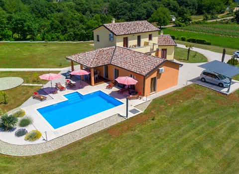 Schönes Einfamilienhaus "Villa Camellia", auf 3 Stockwerken. 1.1 km vom Zentrum von Trget, ausserhalb des Ortes, ruhige, sonnige, erhöhte Lage, 900 m vom Meer, 900 m vom Strand. Zur Alleinbenutzung: Grundstück 700 m2 (eingezäunt), Schwimmbad eckig (8 x 4 m, 150 cm tief, saisonale Verfügbarkeit: 05.Apr. - 12.Okt.) mit Innentreppe. Aussendusche, Terrasse (13 m2), Grill, Poolpflege durch den Besitzer/Gärtner. Im Hause: Internetzugang, Waschmaschine. Parkplatz beim Haus auf dem Grundstück. Einkaufsgeschäft 1.1 km, Supermarkt 10 km, Restaurant 600 m, Bushaltestelle 6.6 km, Kieselstrand 900 m. Der Besitzer akzeptiert keine Jugendgruppen. Bitte beachten: Flugplatz 55 km vom Haus.