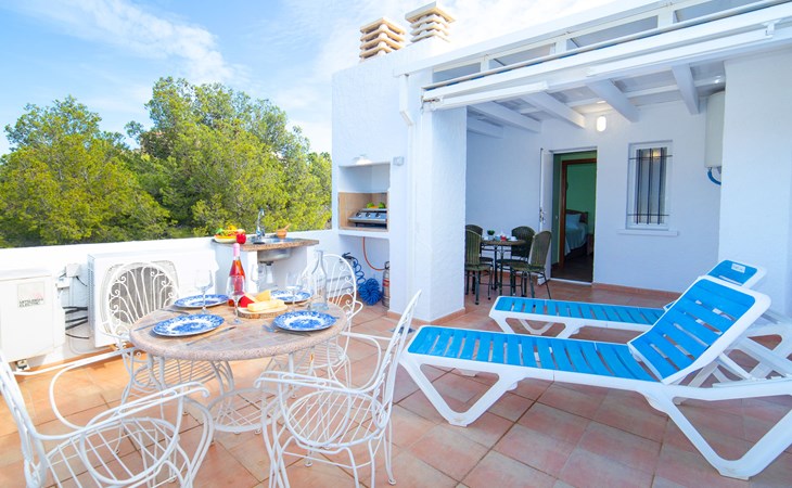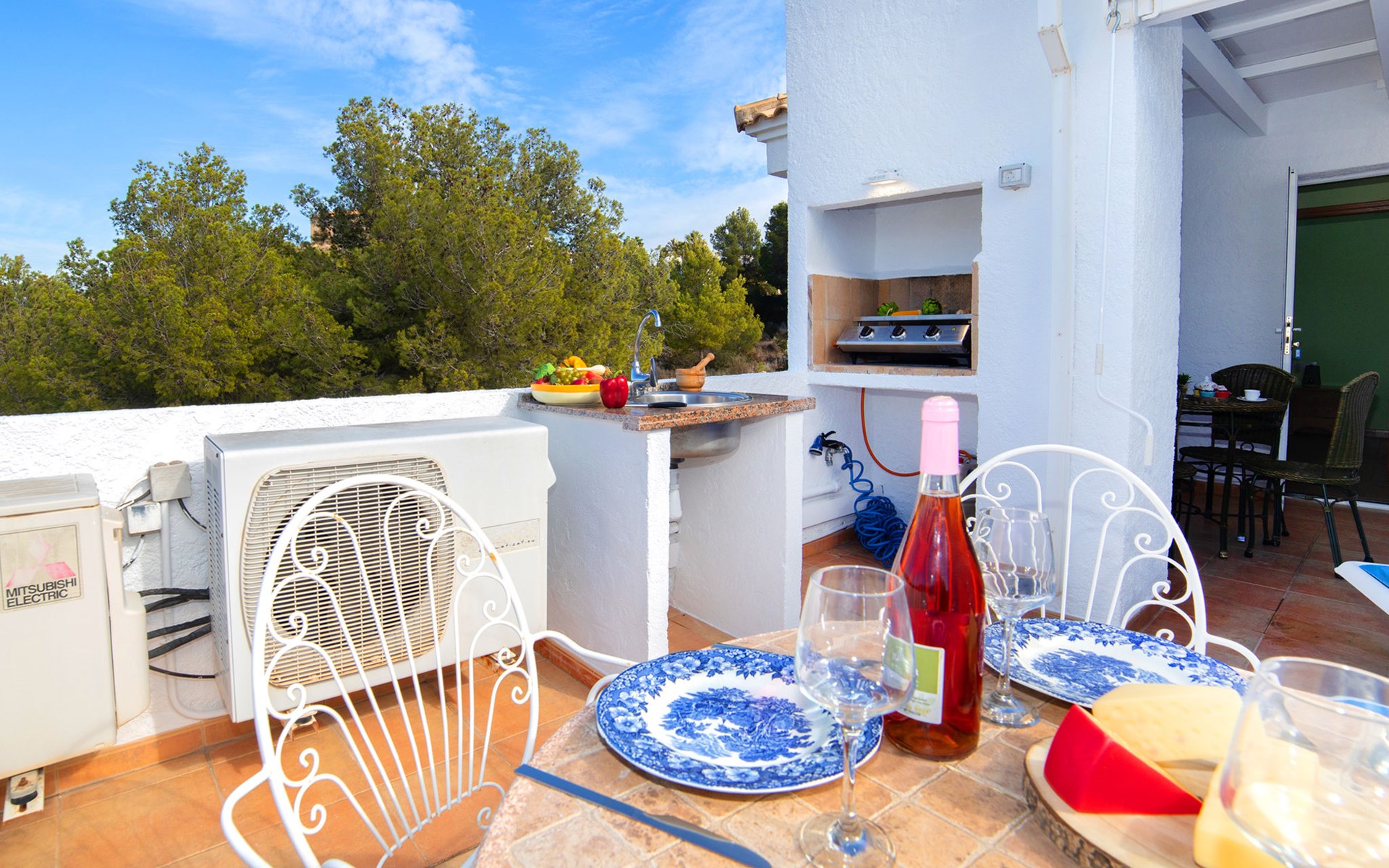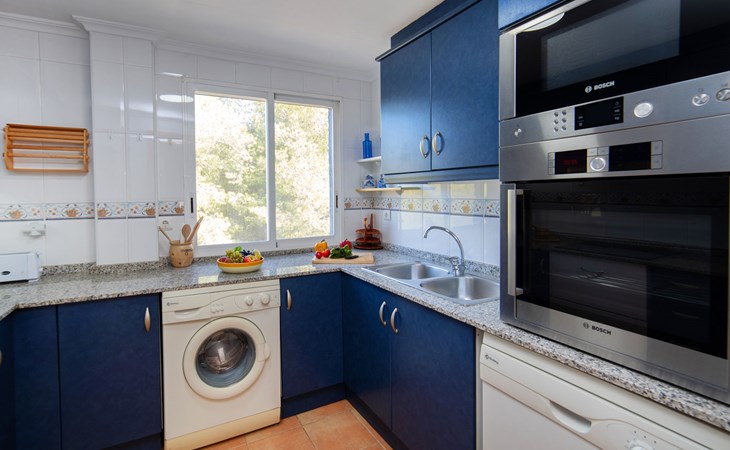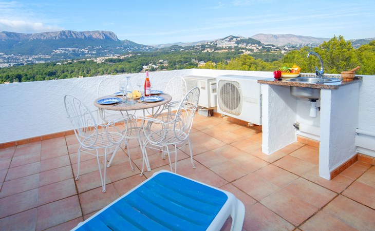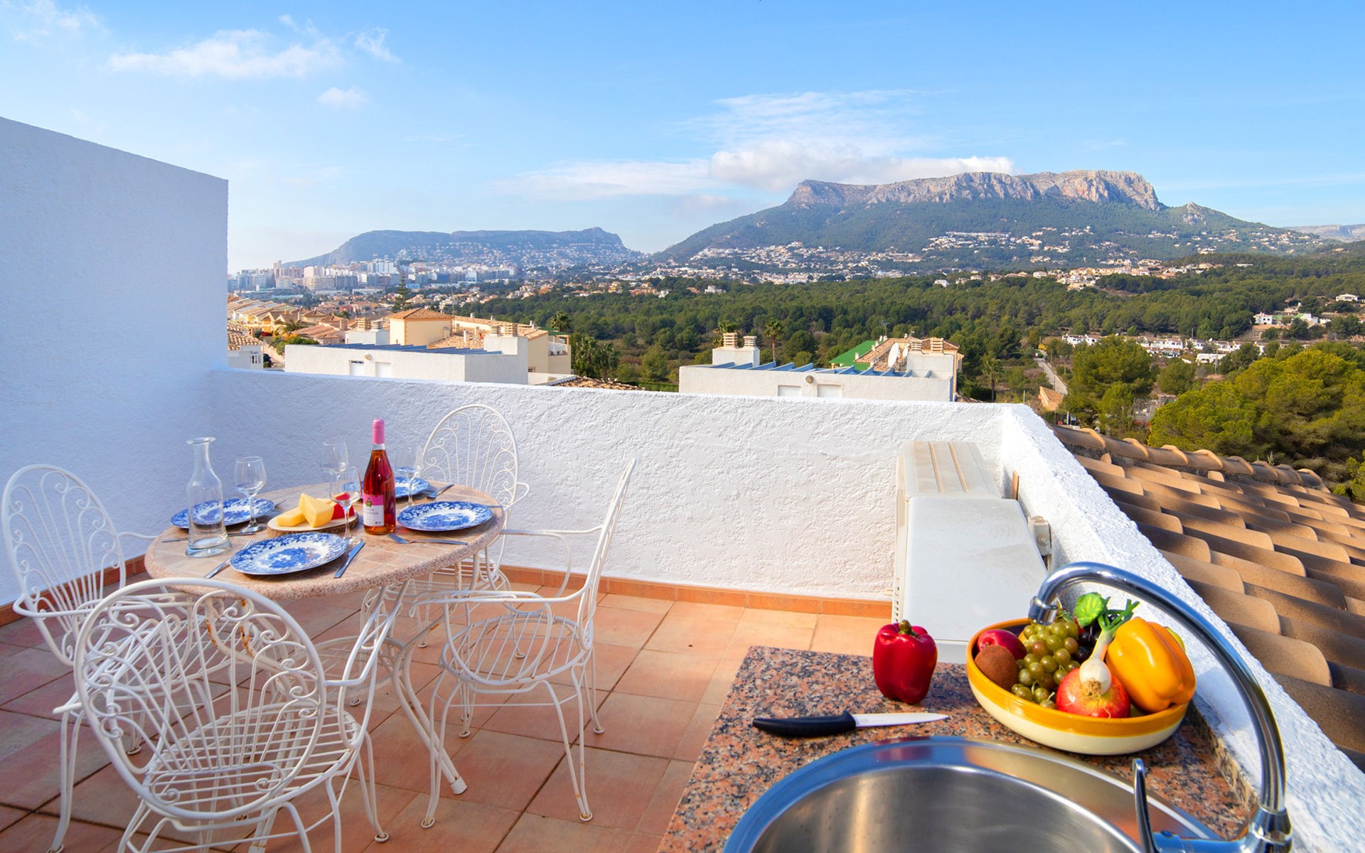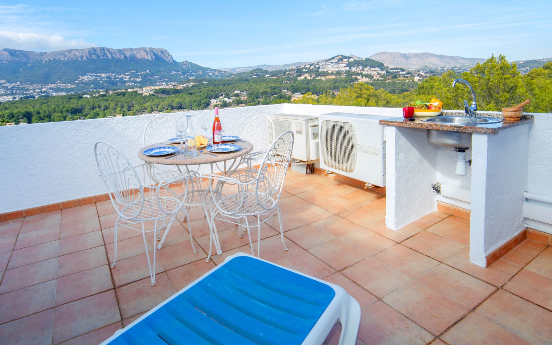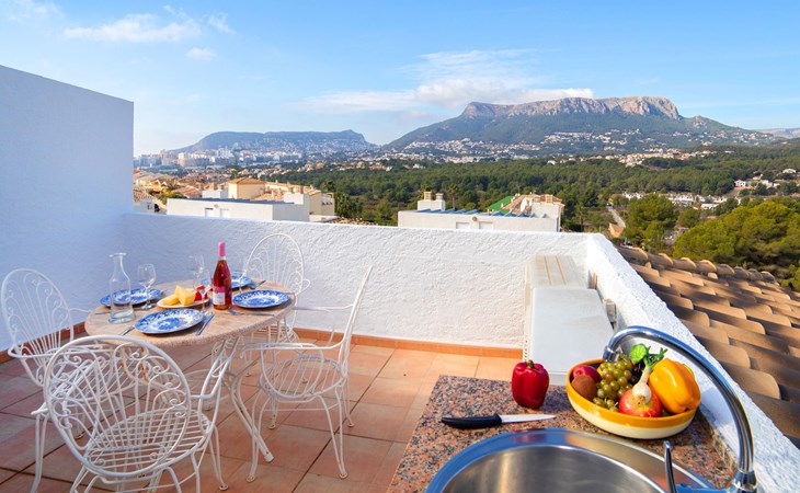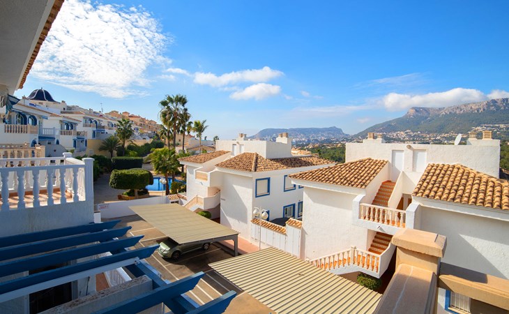 Casanova: Schöne Ferienanlage "Pueblo Casanova". 1.7 km vom Zentrum von Calpe, ruhige, sonnige Lage, 1.9 km vom Meer. Zur Mitbenutzung: Grundstück (eingezäunt), Garten, Schwimmbad (15 x 12 m, saisonale Verfügbarkeit: 01.Jan. - 31.Dez.) mit Salzelektrolyse-Reinigungssystem. Ungleichmässige Schwimmbadform, Kinderbecken, Terrasse. Heizung nur verfügbar von 01.Nov. - 30.Apr.. Supermarkt 1.2 km, Restaurant 1.4 km, Bushaltestelle 450 m, Sandstrand 1.9 km, Hallenbad 1.5 km. Tennis 1.4 km. Bitte beachten: Weitere Unterkünfte sind buchbar. Liegen und Dusche/WC im Poolbereich.