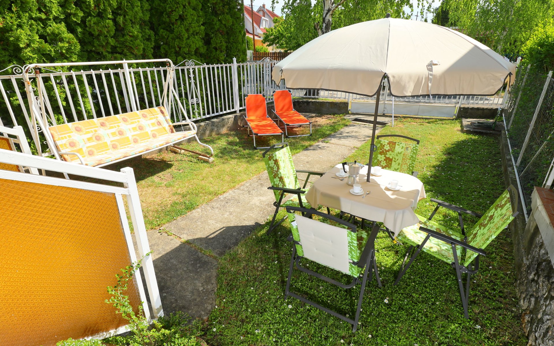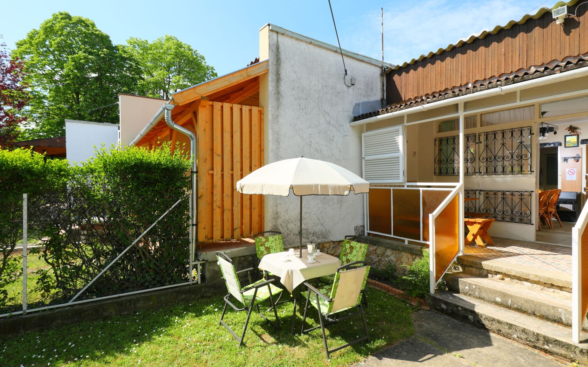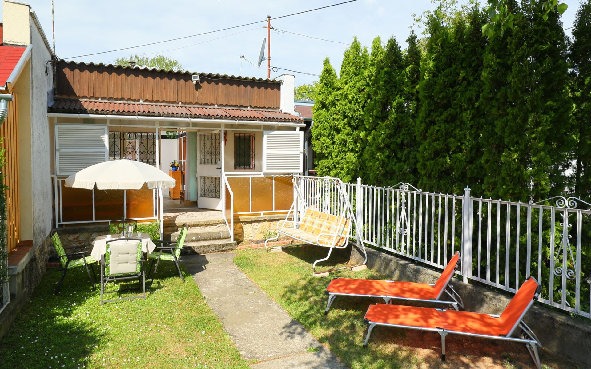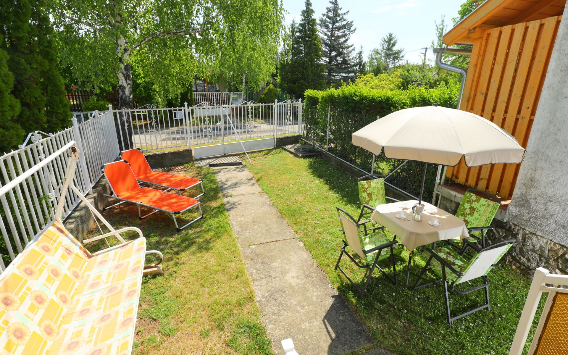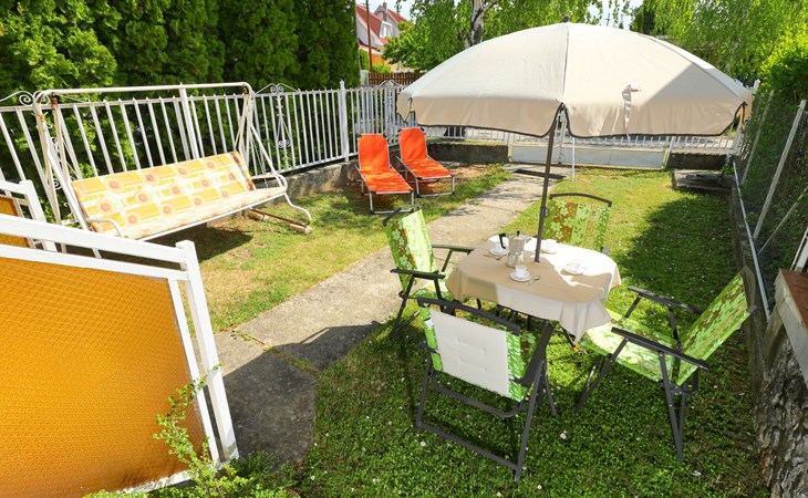 Balatonakali 15 km von Balatonfüred: Reihenhaus "Piccola". 500 m vom Zentrum, 300 m vom See, 1 km vom Strand. Zur Alleinbenutzung: Garten (eingezäunt) mit Liegewiese. Im Hause: Wireless LAN, Klimaanlage. Lebensmittelgeschäft 700 m, Restaurant 350 m, Bäckerei 850 m, Café 850 m, Fahrradverleih 1 km, Bahnstation 700 m, Grasstrand 1 km, Thermalbad "Hévíz" 52 km, FKK - Strand 300 m. Golfplatz (18 Loch) 6 km, Tennis 4 km, Radweg 200 m, Kinderspielplatz 800 m. Nahe gelegene Sehenswürdigkeiten: Tihany 12 km, Balatonfüred Annagora Aquapark 14 km, Veszprem Zoo 34 km, Festetics Castle 50 km, Balatonbob Theme Park 36 km. Wandergebiete: Badacsony 25 km. Objekt geeignet für 2 Erwachsene + 2 Kinder. Bitte beachten: Eisenbahnlinie 150 m vom Haus.