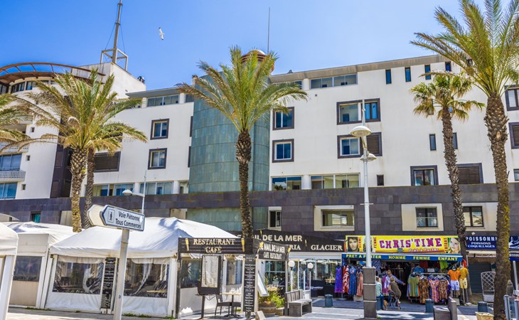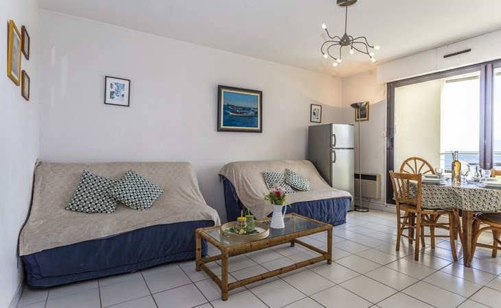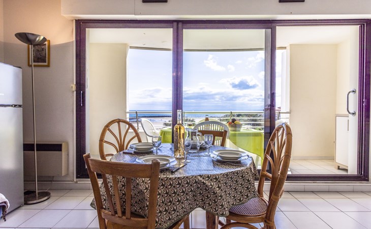 Residenz "Les Roches Marines", auf 6 Stockwerken. Im Ortsteil Rochelongue, 30 m vom Meer, 30 m vom Strand. Im Hause: Fahrstuhl. Öffentliche Parkplätze 150 m. Einkaufsgeschäft, Supermarkt, Restaurant, Bäckerei, Café 20 m, Fahrradverleih 80 m, Bushaltestelle "Mail de Rochelongue" 400 m, Sandstrand "Plage de Rochelongue" 30 m. Sporthafen 2.8 km, Golfplatz (27 Loch) 1.4 km, Tennis 4 km, Minigolf 2.6 km, Kinderspielplatz 200 m. Nahe gelegene Sehenswürdigkeiten: Aqualand 2.1 km, Ile des Loisirs 2.6 km, Aquapark 1.8 km.