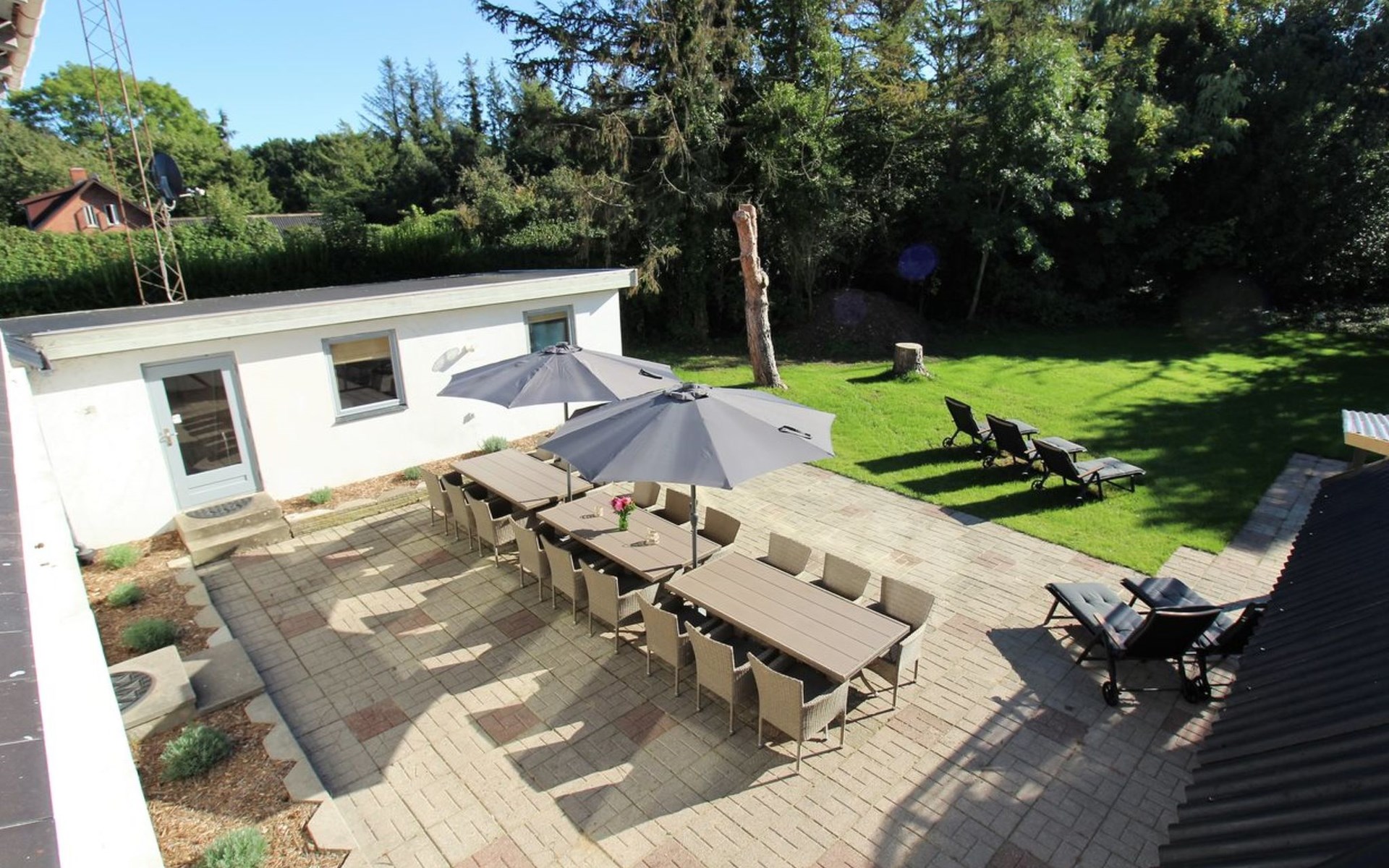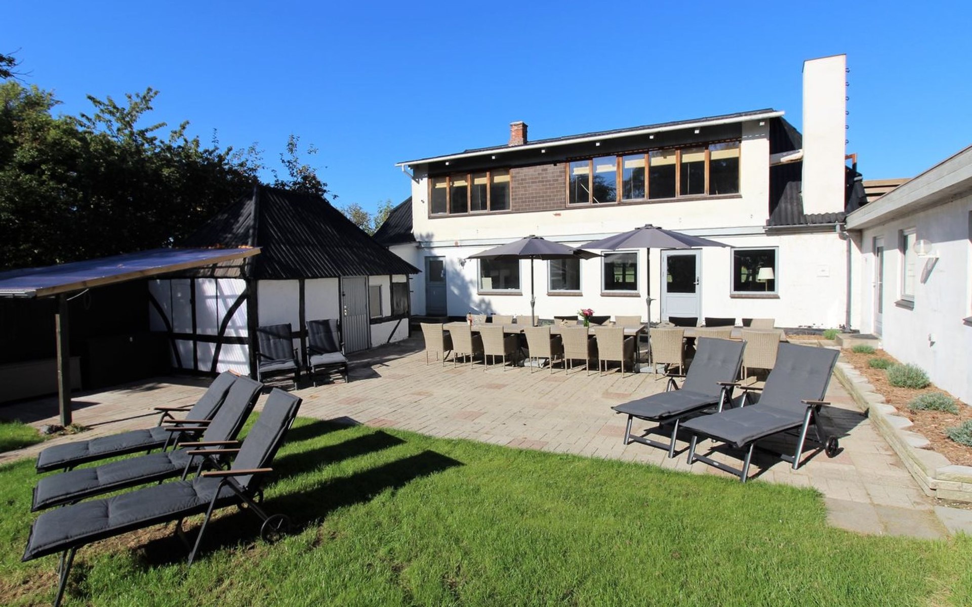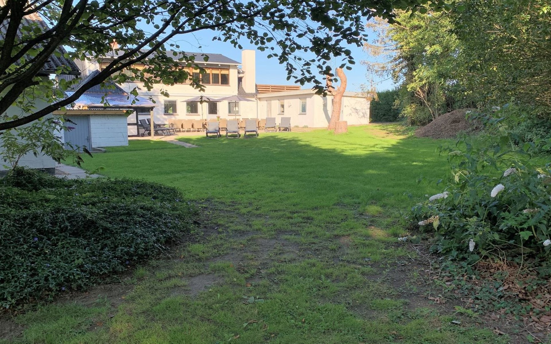 Einfamilienhaus, Baujahr 1885. 525 m vom Meer. Zur Alleinbenutzung: Grundstück 2'836 m2, gepflegter Garten, Hallenbad (5 x 10 m, 50 m2, 80 - 80 cm tief). Grill, Kinderspielplatz (Rutschbahn, Schaukel). Im Hause: Sauna, Tischfussball, Waschmaschine, Wäschetrockner. Parkplatz beim Haus. Lebensmittelgeschäft 1.5 km. Der Besitzer akzeptiert keine Jugendgruppen.
