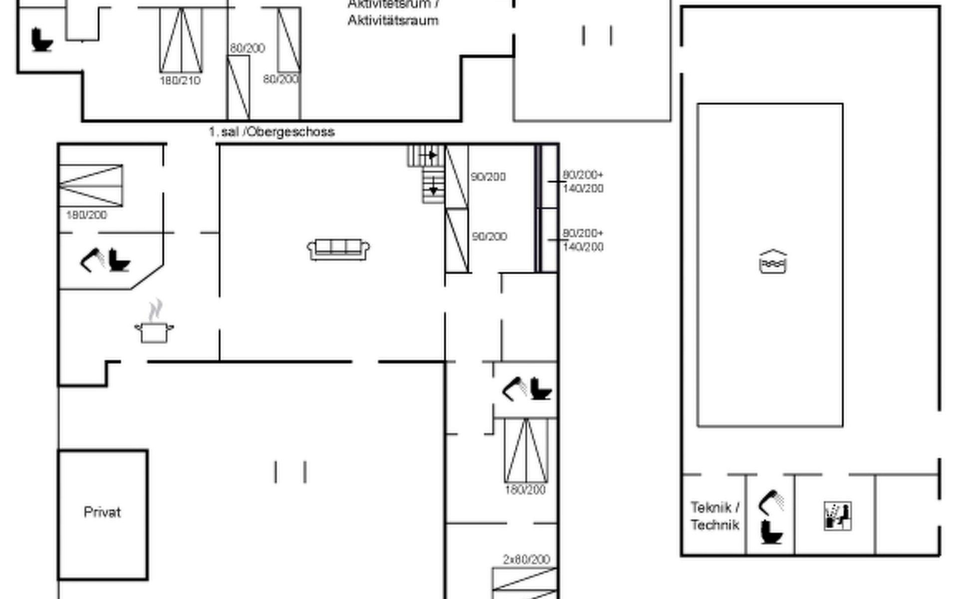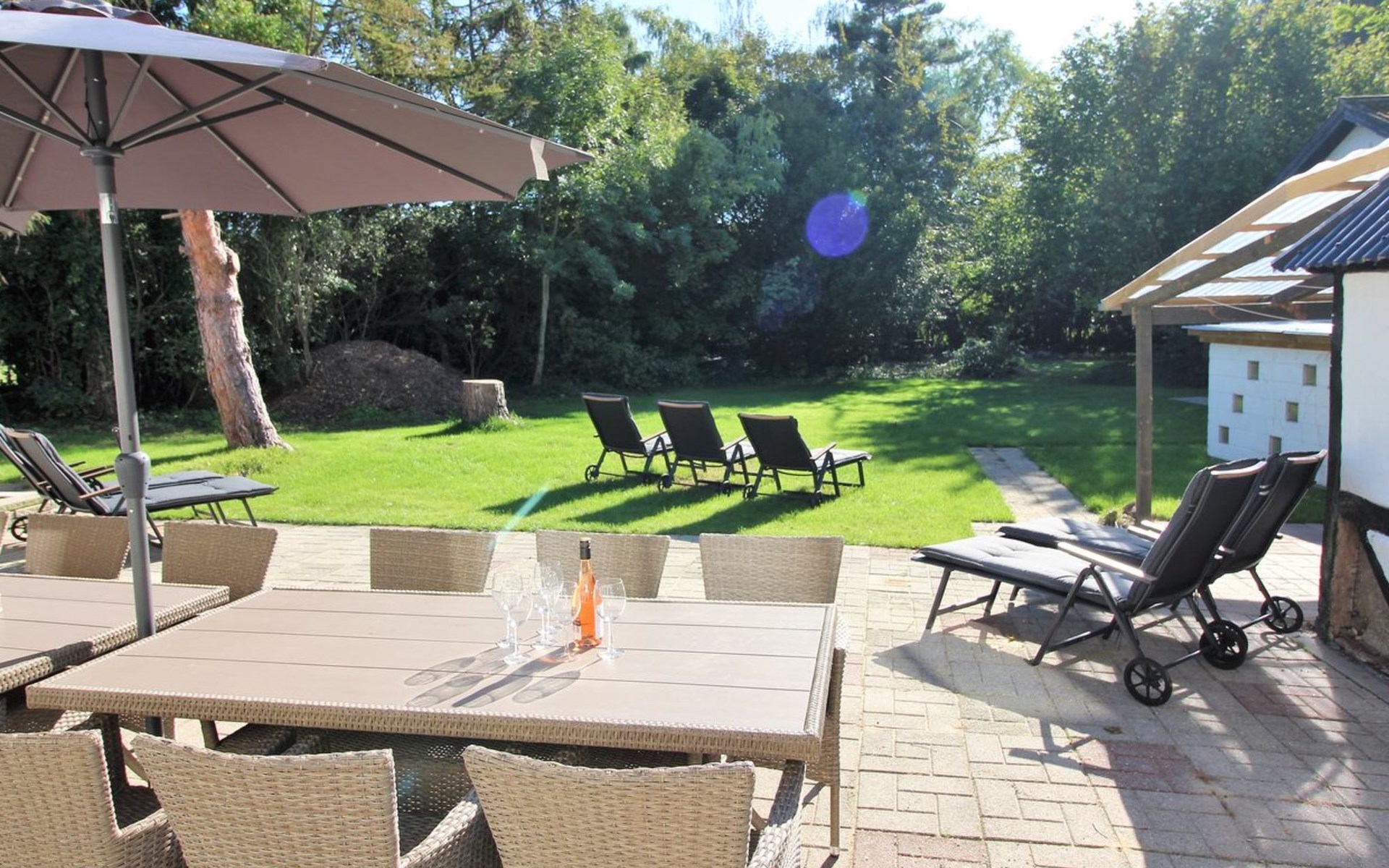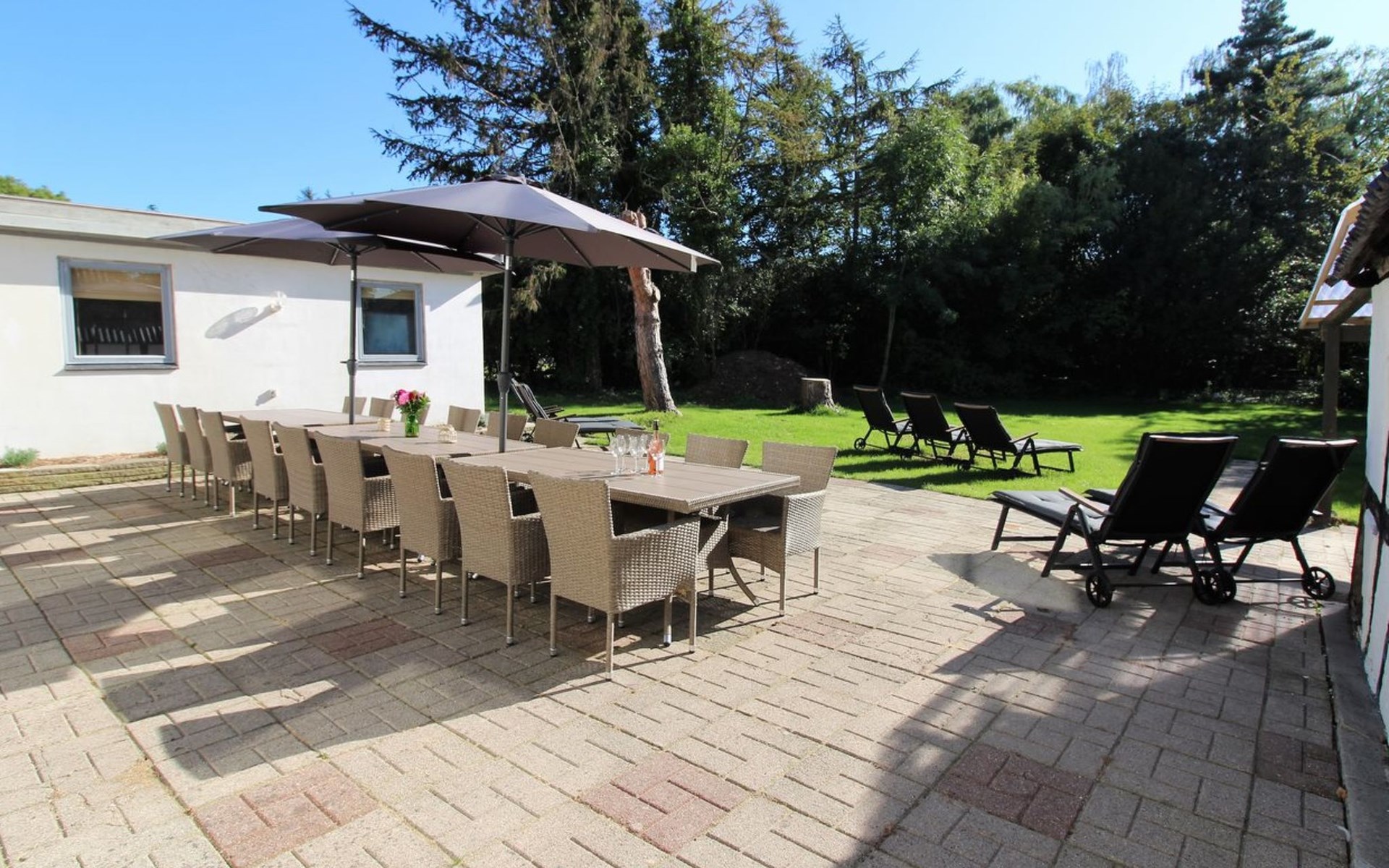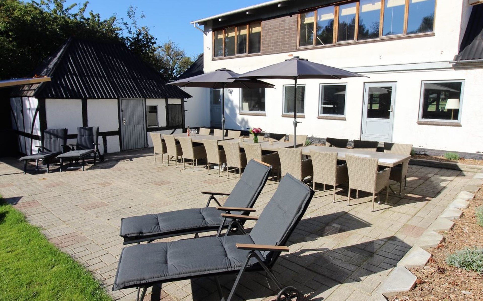 Einfamilienhaus, Baujahr 1885. 525 m vom Meer. Zur Alleinbenutzung: Grundstück 2'836 m2, gepflegter Garten, Hallenbad (5 x 10 m, 50 m2, 80 - 80 cm tief). Grill, Kinderspielplatz (Rutschbahn, Schaukel). Im Hause: Sauna, Tischfussball, Waschmaschine, Wäschetrockner. Parkplatz beim Haus. Lebensmittelgeschäft 1.5 km. Der Besitzer akzeptiert keine Jugendgruppen.