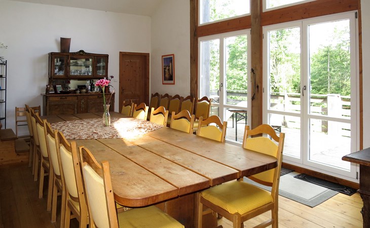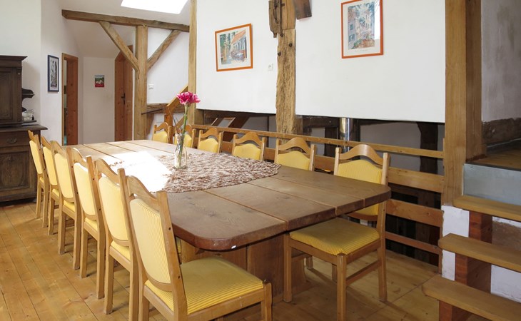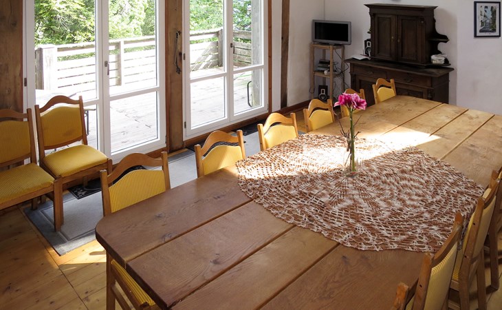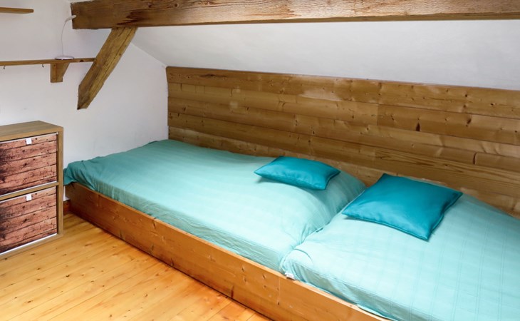 Freistehendes Haus "Escher". 3.8 km vom Zentrum von Thiéfosse, 42 km vom Zentrum von Épinal, 110 km vom Zentrum von Nancy, ruhige Lage am Hang, 6 km vom See, im Wald. Zur Alleinbenutzung: Grundstück 350 m2 mit Wiese. Sitzplatz, Gartenmöbel, Feuerstelle. Im Hause: Sauna. Abstellraum vorhanden. 200 m lange holprige, schmale Zufahrt bis zum Haus (Naturweg). Parkplatz (für 5 Autos) auf dem Grundstück. Supermarkt 6 km, Bushaltestelle "Thiefosse Centre" 4 km. Jugendgruppen nur auf Anfrage. Das Leitungswasser hat keine Trinkwasserqualität. Wichtiger Hinweis: Wasserversorgung über eigene Quelle. Bei extremer Trockenheit im Laufe der Saison kann u.U. keine ausreichende Wasserversorgung gewährleistet werden. In diesem Fall wird das Objekt von HHD kostenfrei storniert, bereits gezahlte Beträge werden zurück erstattet. Weitere Ansprüche stehen dem Kunden in diesem Zusammenhang nicht zu.