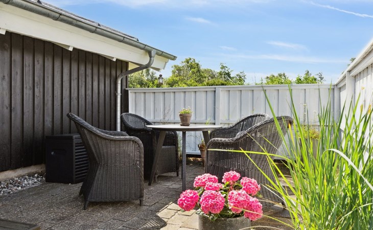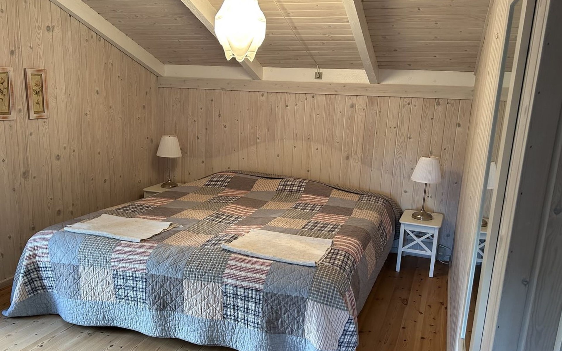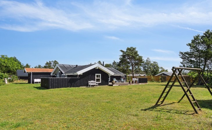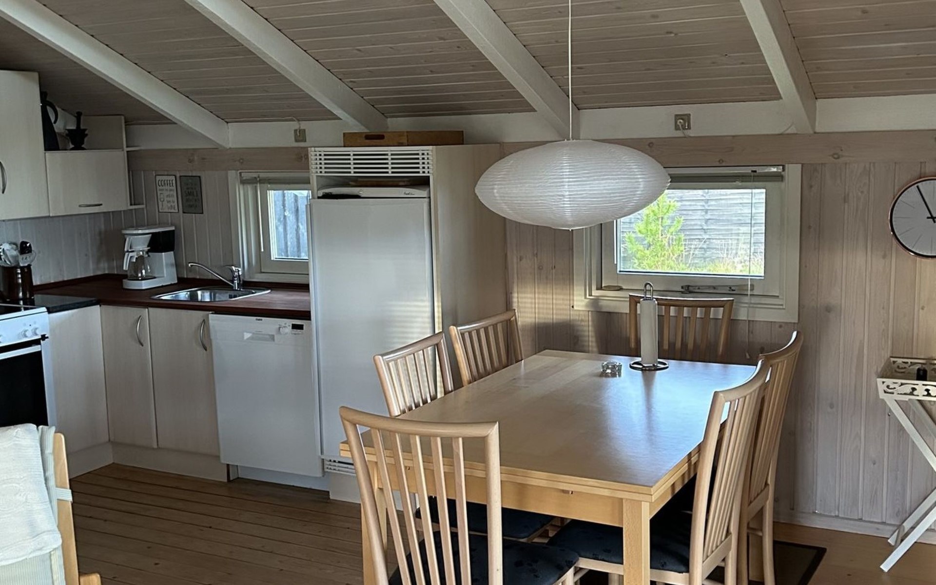 Einfamilienhaus, Baujahr 1989. 180 m vom Meer. Zur Alleinbenutzung: naturbelassenes Grundstück 1'200 m2. Grill (Schaukel). Im Hause: Waschmaschine. Parkplatz beim Haus. Carport. Lebensmittelgeschäft 1.2 km. Golfplatz 4.5 km. Der Besitzer akzeptiert keine Jugendgruppen.
