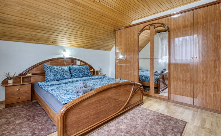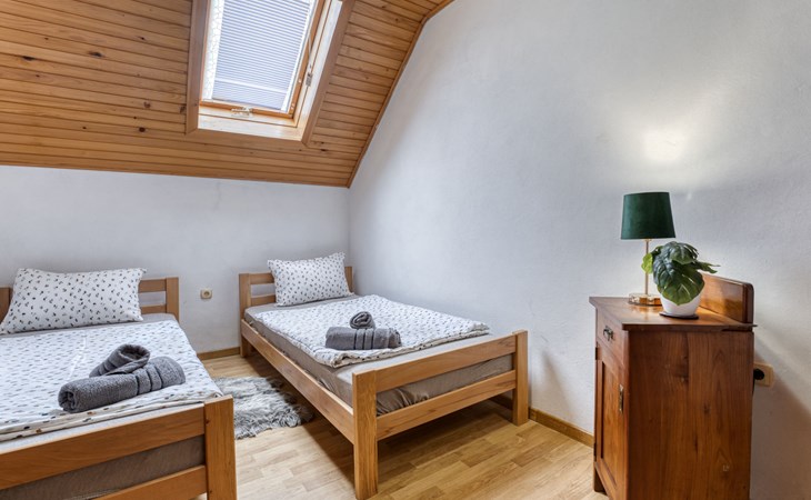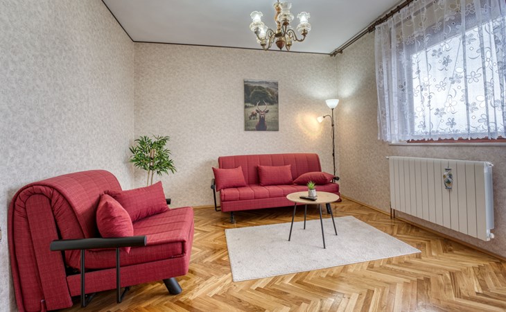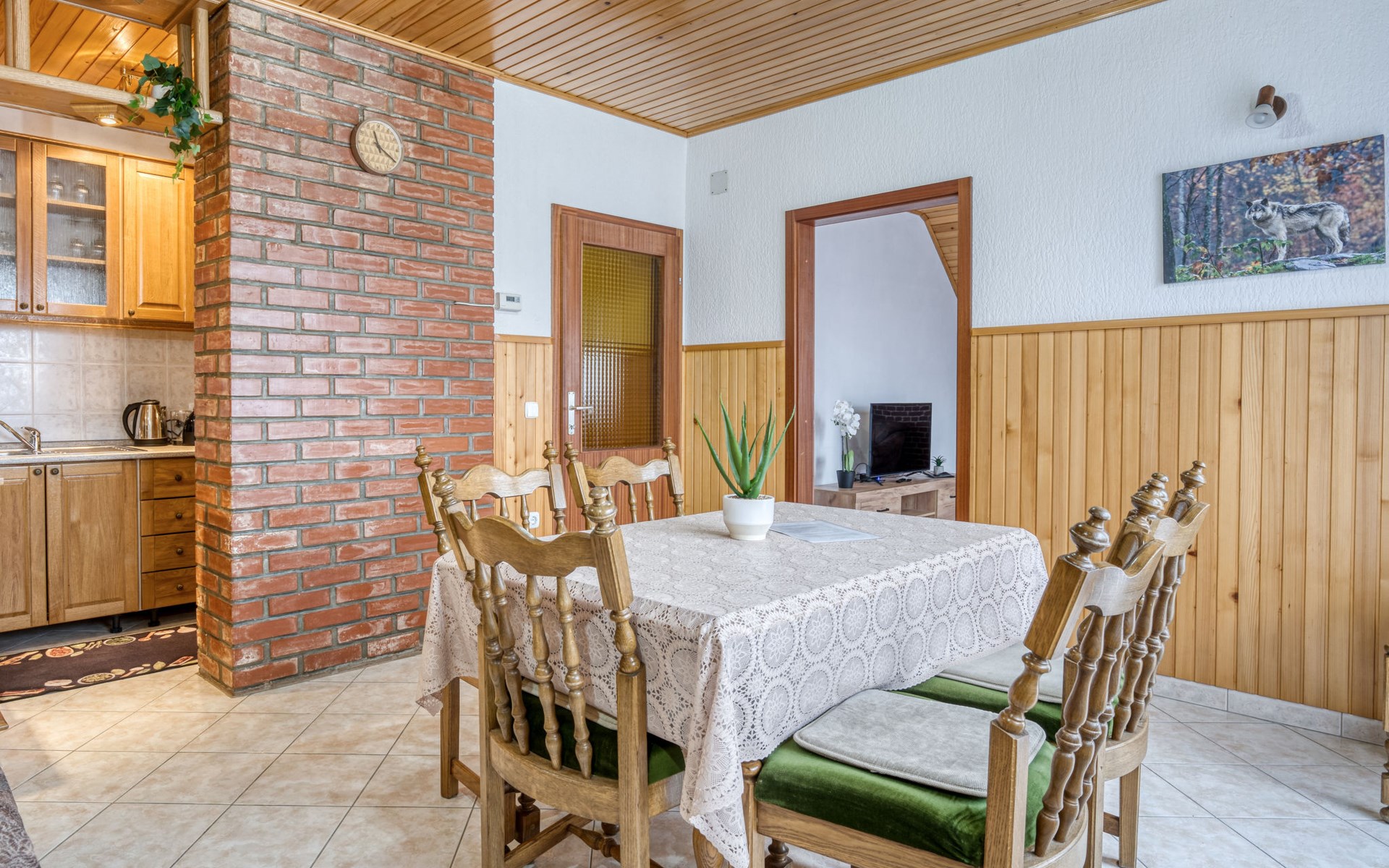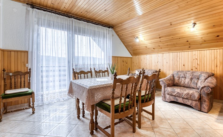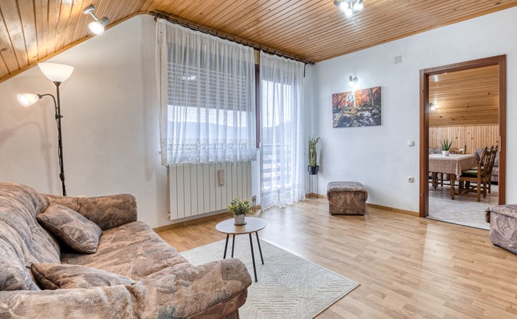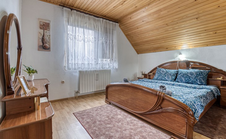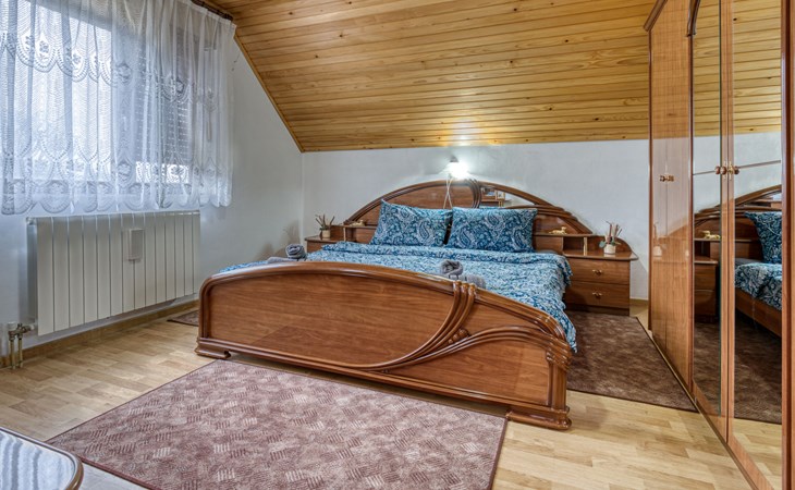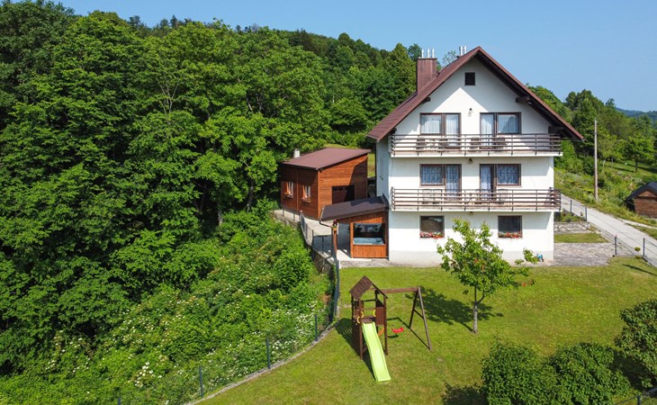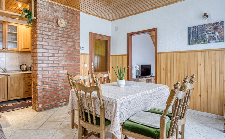 Zweifamilienhaus "Maklen", auf 2 Stockwerken. 1.5 km vom Zentrum von Brod Moravice, sonnige, erhöhte Lage, 70 km vom Meer, im Grünen. Zur Alleinbenutzung: Grundstück 1'100 m2 mit Rasen. Badminton, Grillhaus (Rutschbahn, Schaukel). Im Hause: Internetzugang, Sprudelbad (extra). Billard, Zentralheizung. Parkplatz (für 3 Autos) beim Haus auf dem Grundstück. Einkaufsgeschäft 1.6 km, Supermarkt 26 km, Restaurant 20 km, Bushaltestelle 3 km. Nahe gelegene Sehenswürdigkeiten: NP Risnjak 40 km, Zeleni vir 16 km, Kamačnik 20 km. Bitte beachten: geeignet für Familien. Der Besitzer akzeptiert keine Jugendgruppen. Ein Teil des Hauses ist geschlossen und nicht bewohnt.